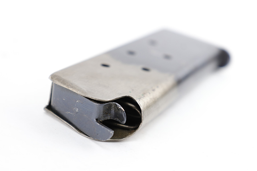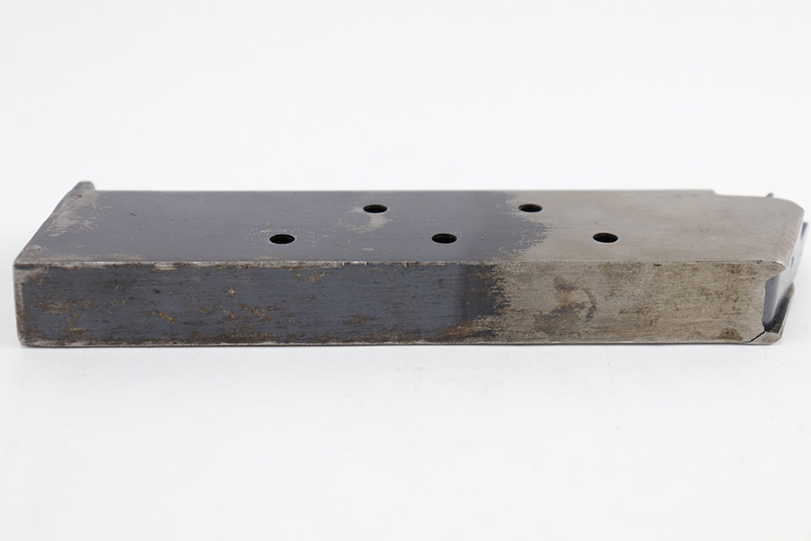 7/11/23 – This is an original WW1 production Colt M1911 magazine. The magazine is stamped on the lip of the base with the letter “B”, meaning this was made by one of the few subcontractors manufacturing magazines for the war effort. The magazine is in very good condition with some mild finish loss and surface patina throughout, but no major issues. Strong, functional spring.