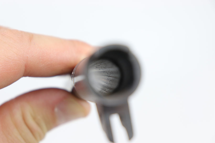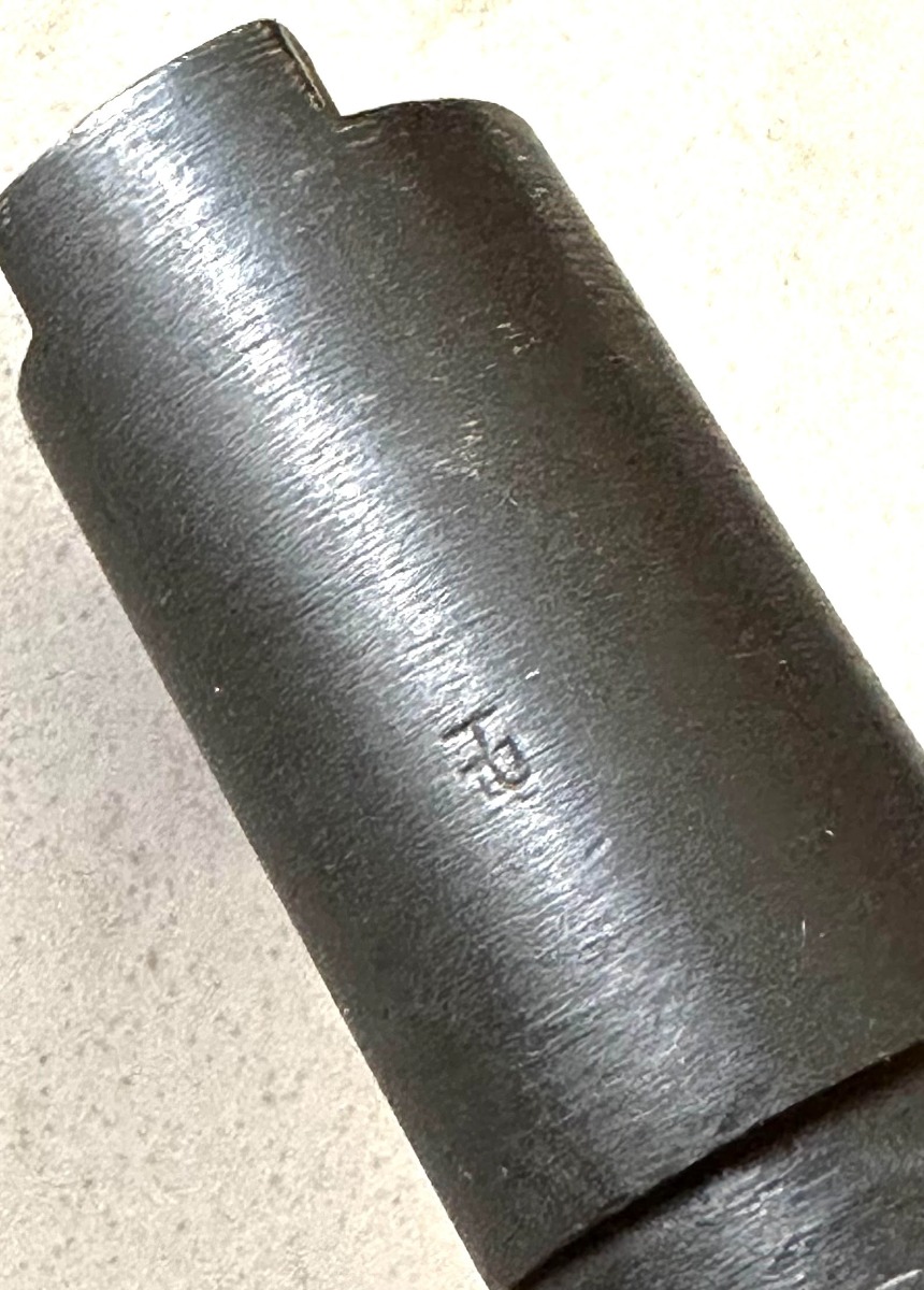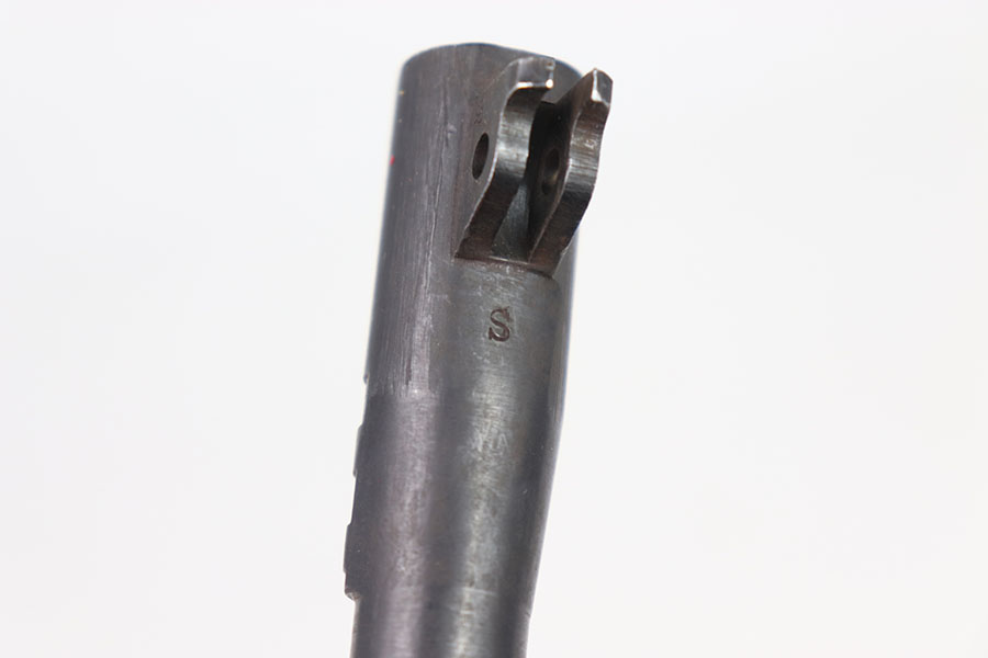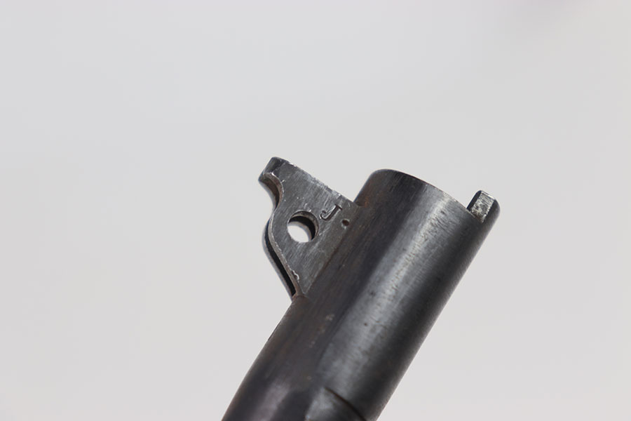 5/28/24 – This is a WW1 era Colt 1911 HP barrel. The outside of the barrel has little wear, with a few scratches on the underside on both sides of the link. The bottom of the barrel is marked with a “S” right side with a “J” left side with a “&” and top with a “HP.” The bore is a 6/10 given its age. It has some speckling/light pitting throughout but nice pronounced rifling, and clean surface.