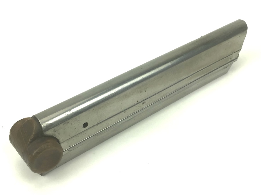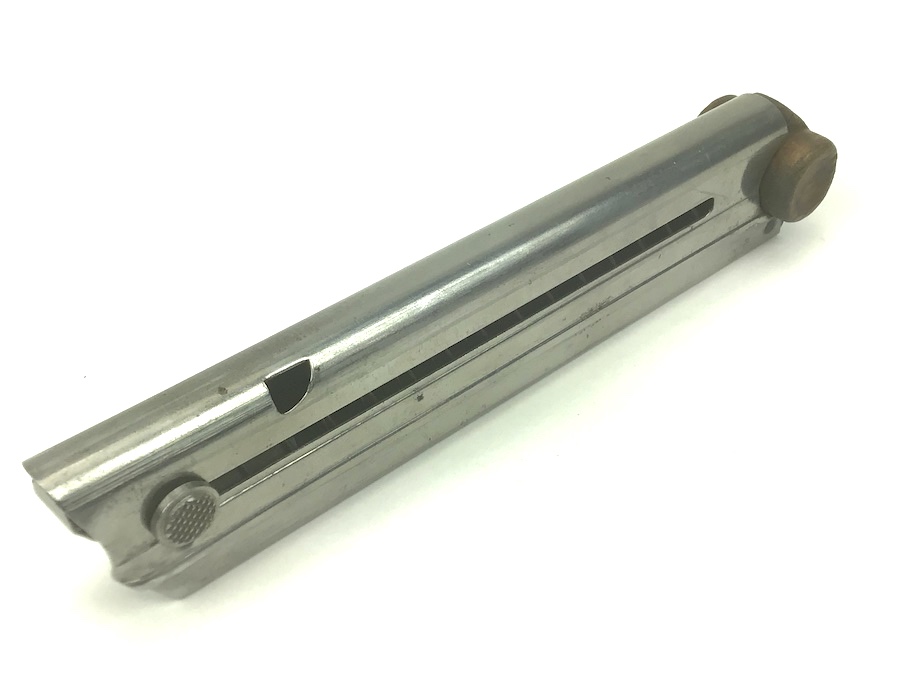 3/31/21 – This is an original WW1 era / pre WW1 commercial Luger magazine. Fairly scarce and desirable. The base is unmarked. Base has a very slight wiggle, but it is secure. Tube is in great condition with no rust or pitting. Strong, functional spring.