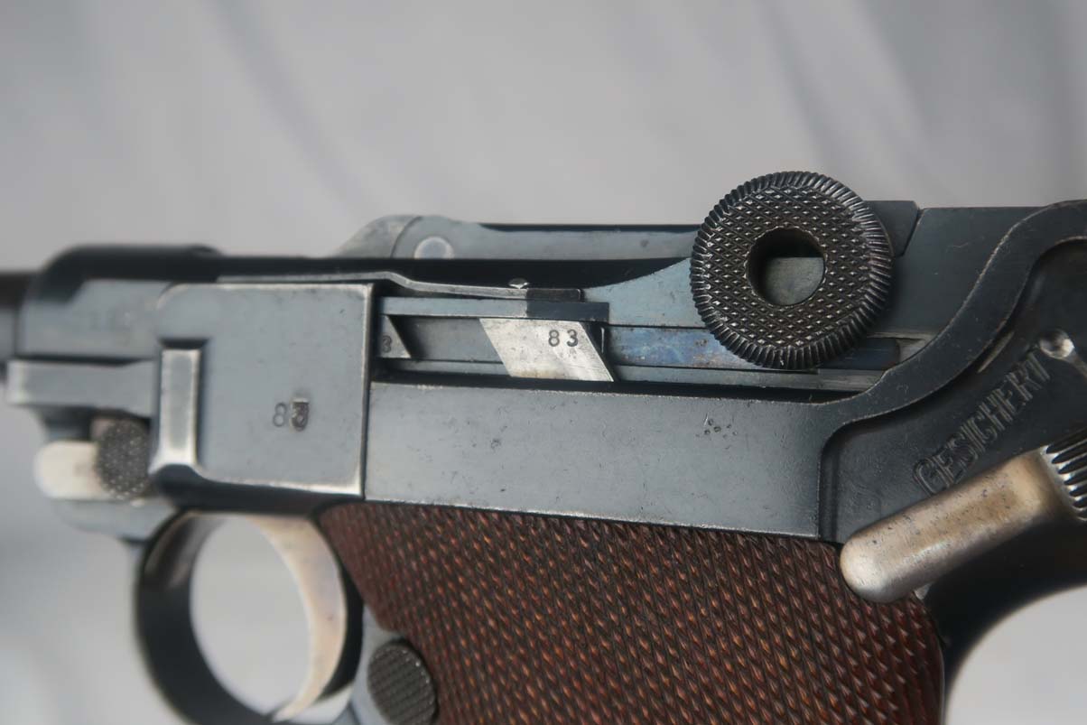 SOLD – WW1 Double Date DWM Luger – Matching Mag