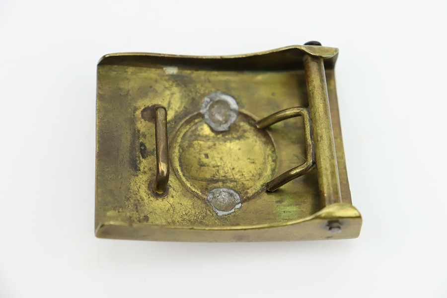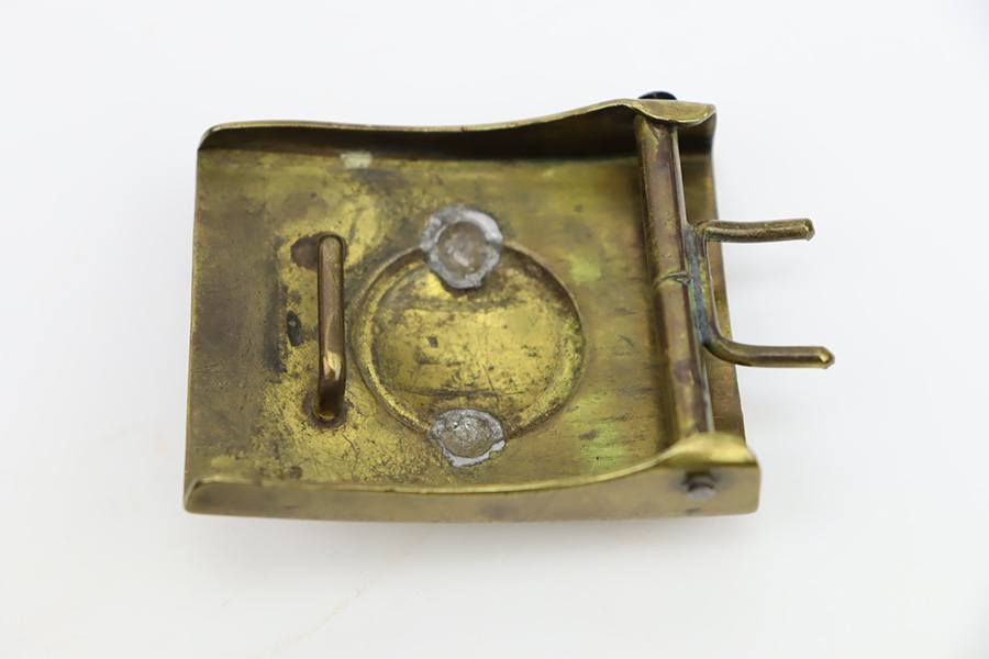11/15/23 – This is an original WW1 Imperial German belt buckle. Two piece construction with weld marks on the interior, as shown. No markings or stamps. Light surface patina throughout and a minor dent in the front of the buckle, on the crown logo.