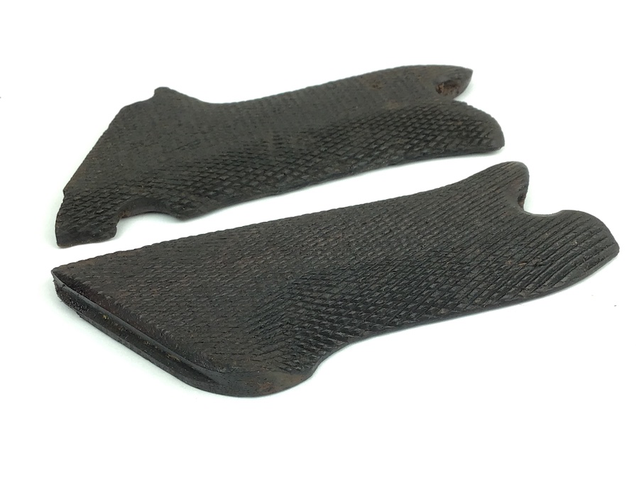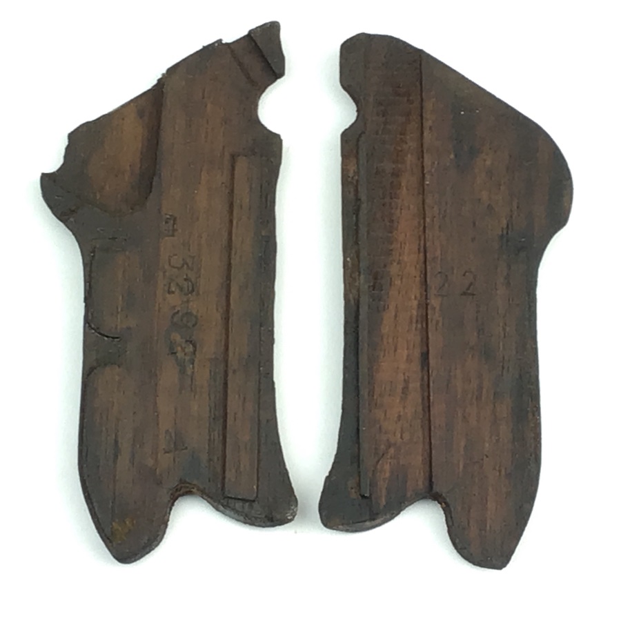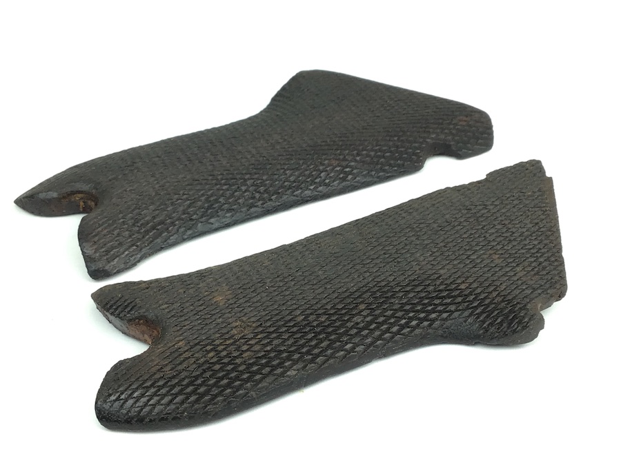 4/14/20 – Original WWI Imperial Luger grip panels. Unmatched panels. The left panel has an Imperial stamp along with the numerals “3292”. The right panel only has the numerals “22”. Both panels are intact and complete with no cracks or chips. Some typical wear on the checkering. Exterior color of the grips match well.