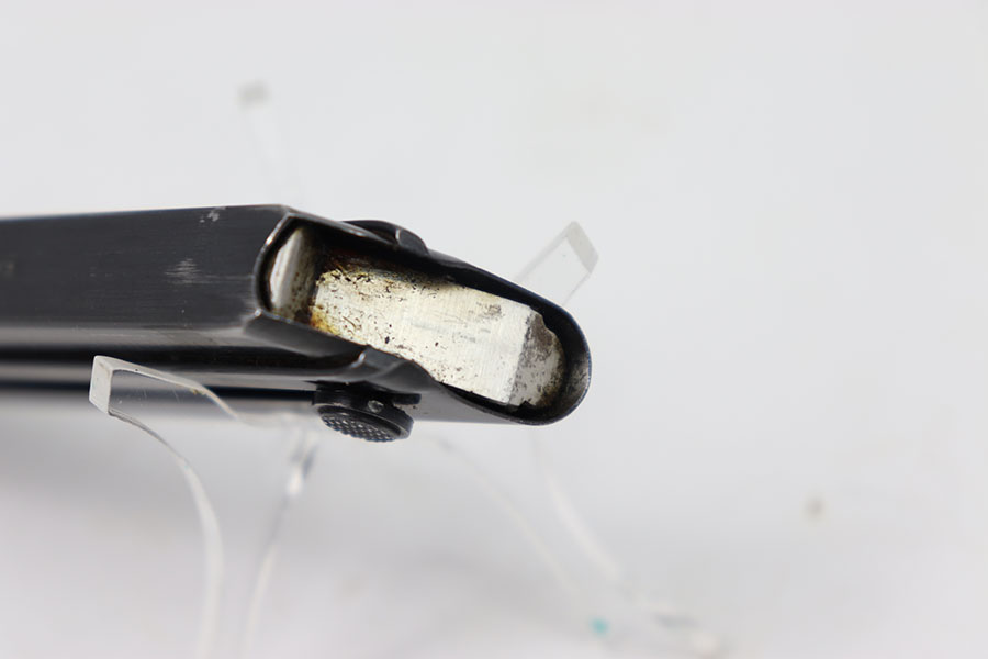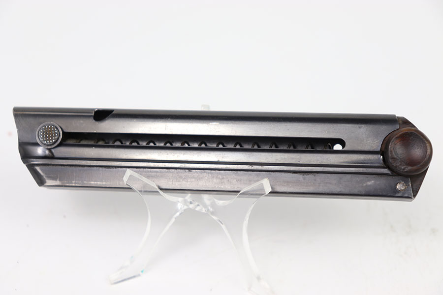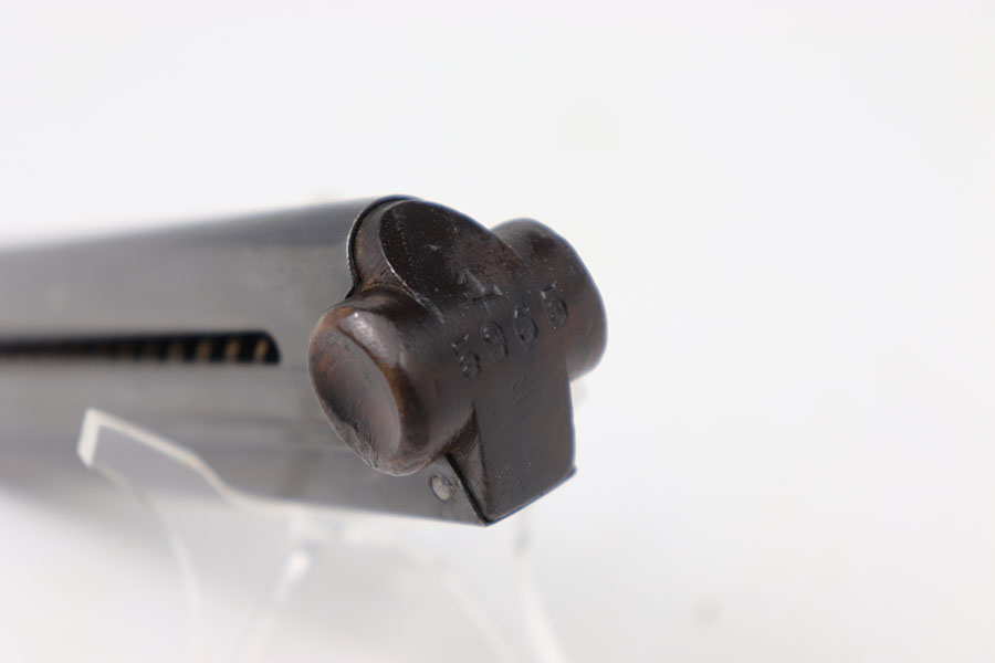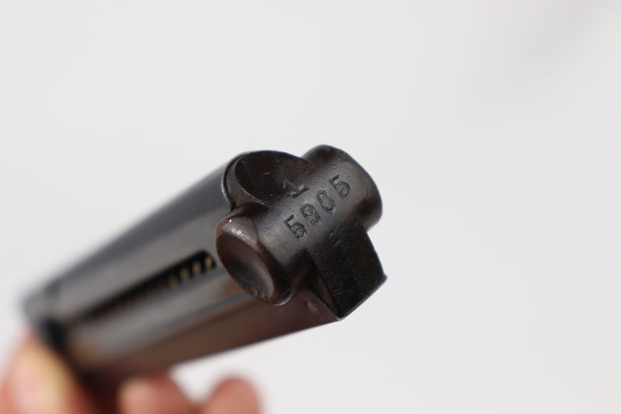7/23/24 – This is a WW1 era Police arsenal renumbered luger magazine featuring a re-blued tube. This magazines re-blued tube is in excellent shape with only minor signs of wear. As seen in the photos the base was police arsenal renumbered but overall in excellent shape.