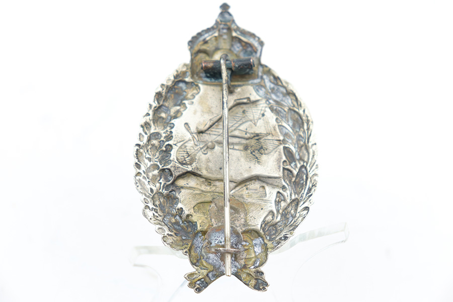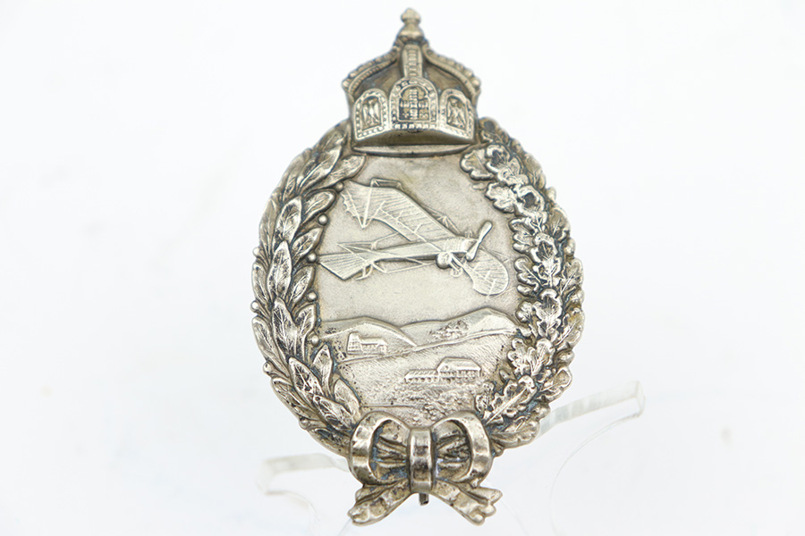 10/21/21 – This is a fairly scarce, WW1 Imperial Army Pilot’s Badge. The badge is lightweight, stamped silvered tombac. No maker marking or stamps. Some mild patina, but a fully functional and original hinge.