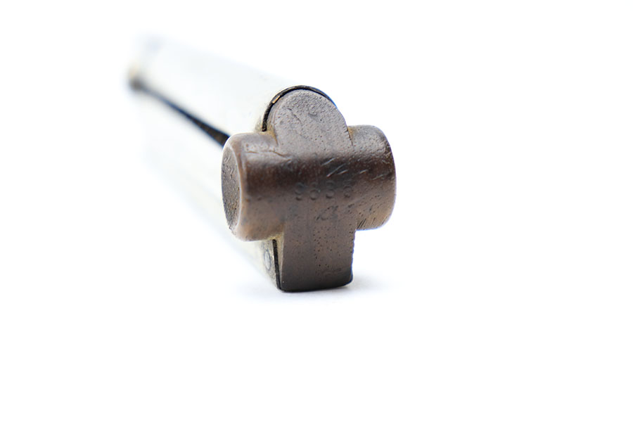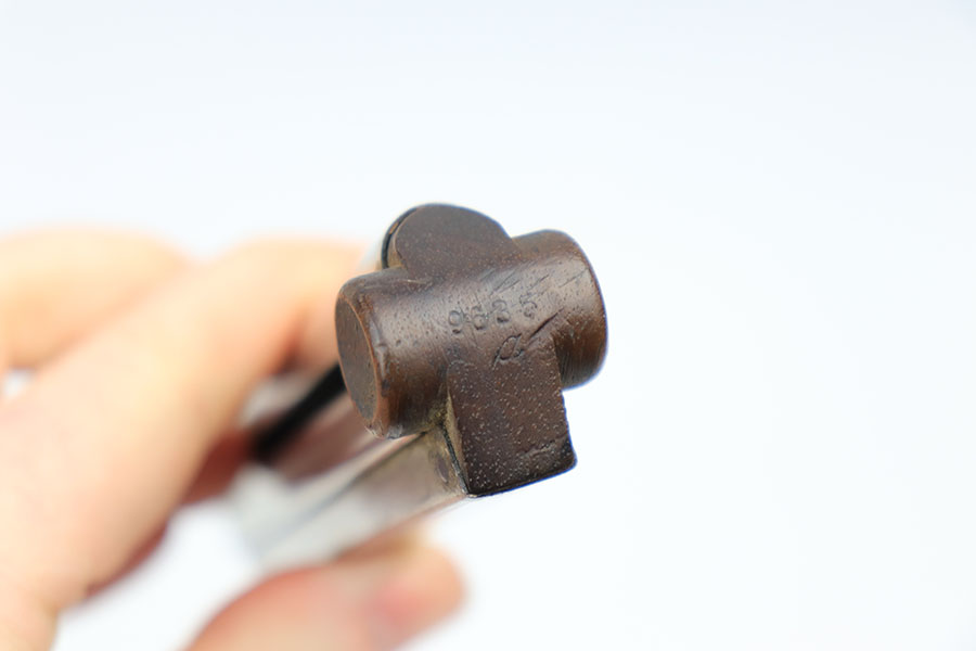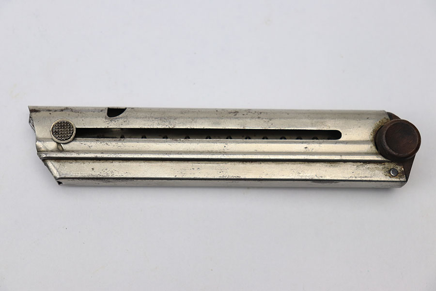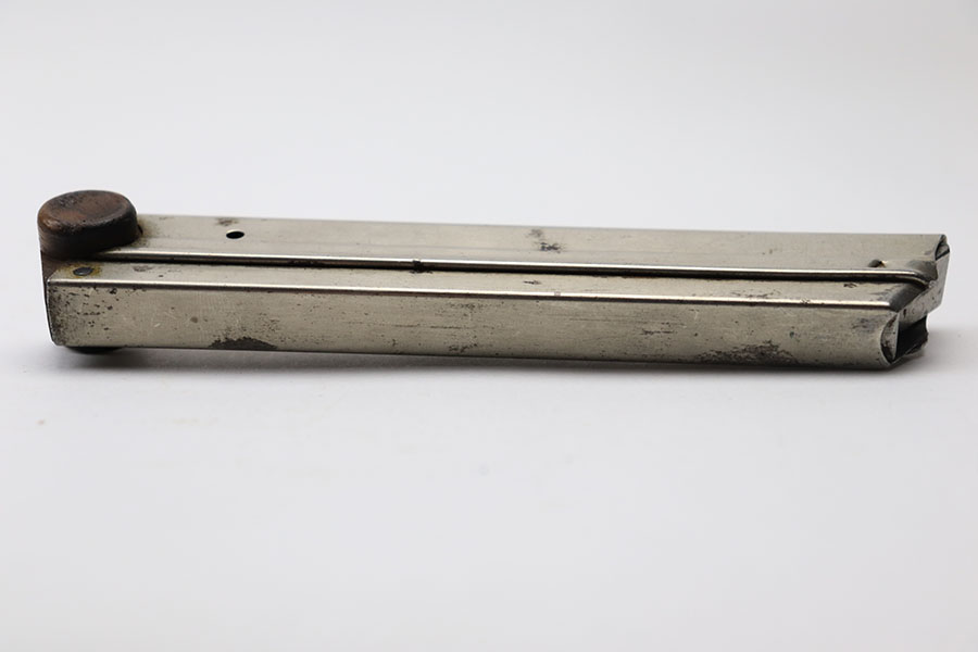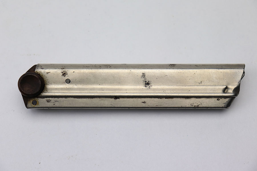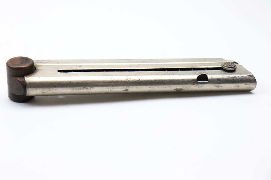 3/11/21 – This is an original WW1 era production luger magazine. The magazine is in great overall condition with some spots of mild surface discoloration on the tube and a fairly nice wood base. The base is dark wood and serial numbered as shown. The spring is strong and fully functional.