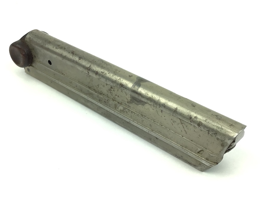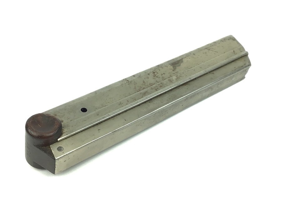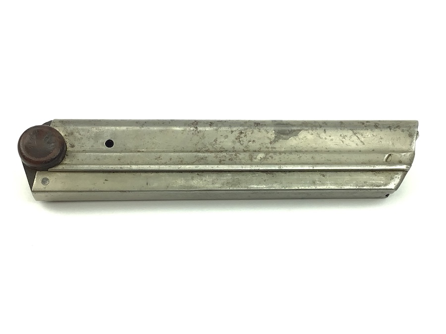 6/21/21 – This is an original WWI production Luger magazine. This magazine is in great overall condition. The base is solid with no cracks. Serial number “5545” stamped into the base. Very nice tube has minimal wear and mild patina. Strong, fully functional spring.