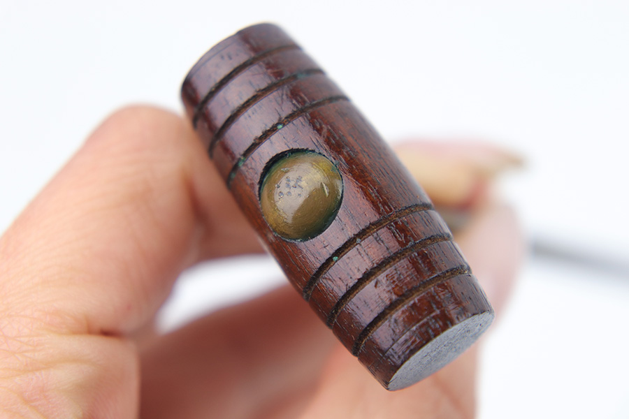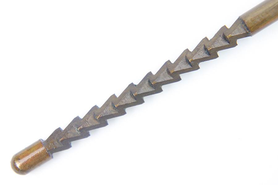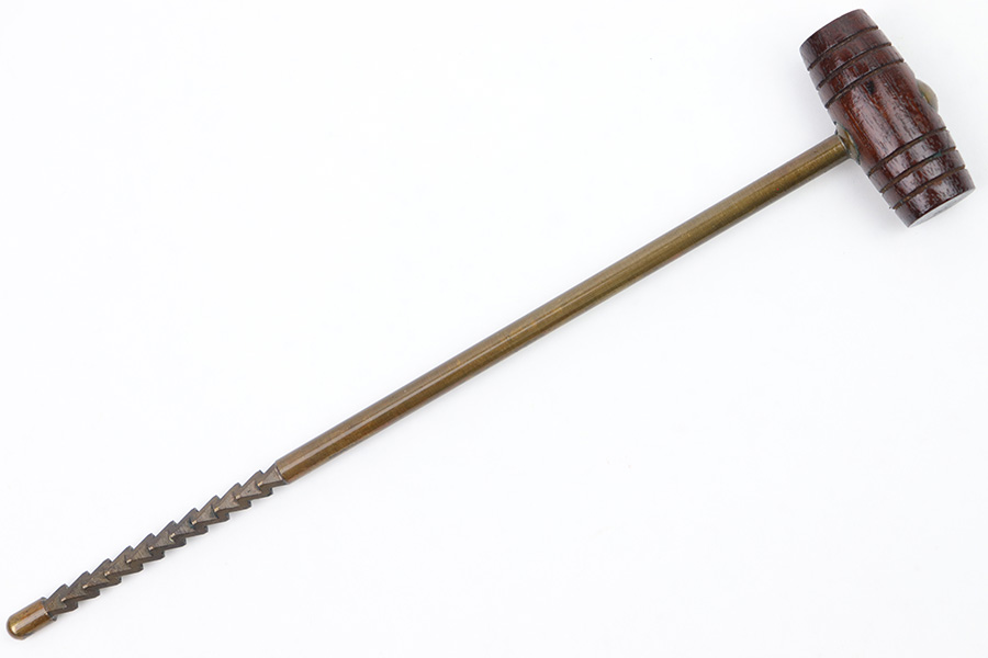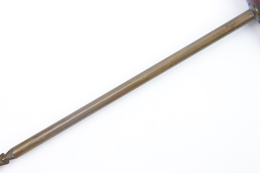 2/9/23 – This is an original, early WW1 Imperial Navy Luger cleaning rod. The rod features a Zig-Zag pattern at the tip, which is an early feature only found with navy issued cleaning rods. The rod measures approximately 8 inches long and is brass metal with a wood handle. The wood handle doesn’t spin or rotate and is in excellent condition. No markings or stamps. Mild surface patina and aging on the rod, but no major issues.