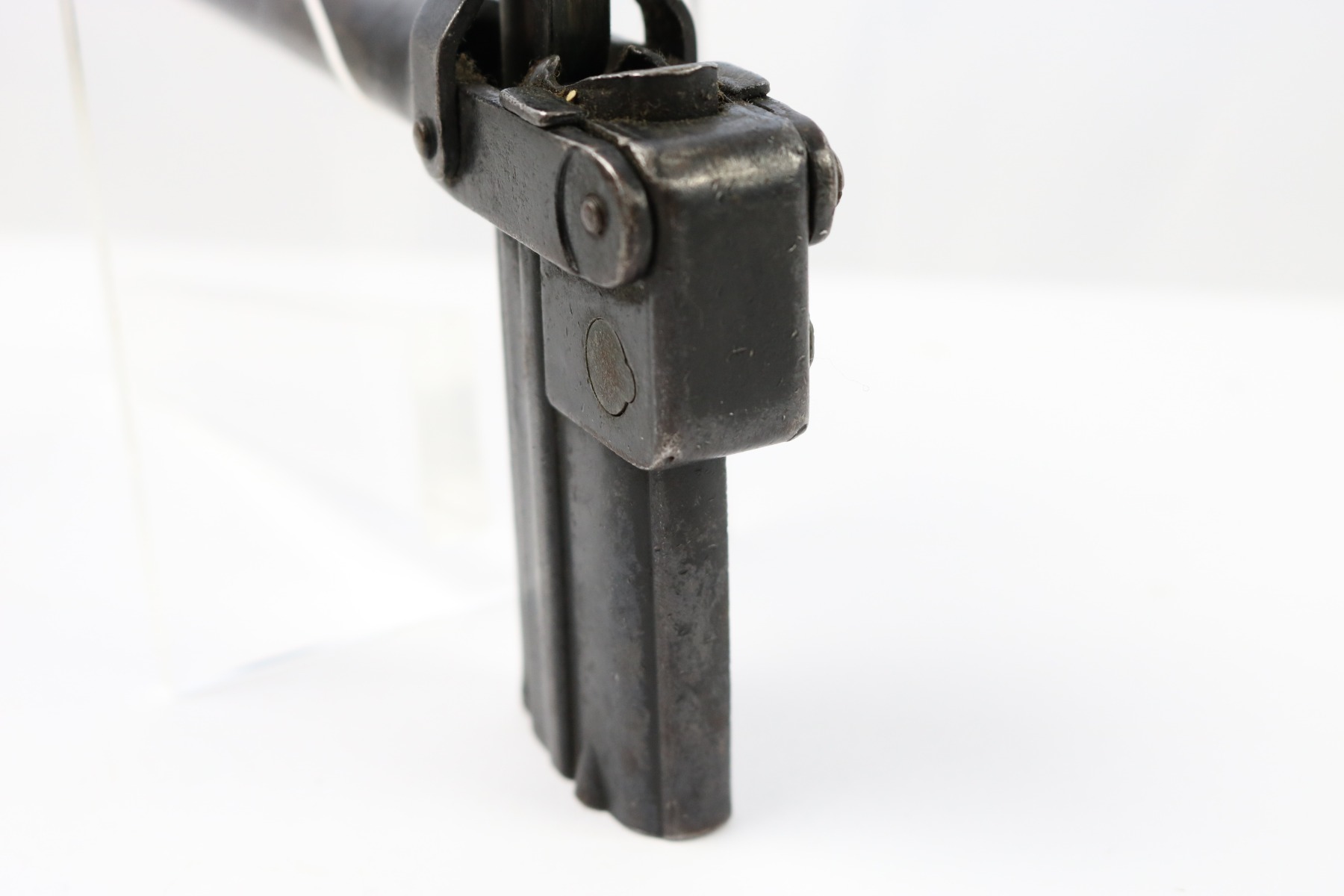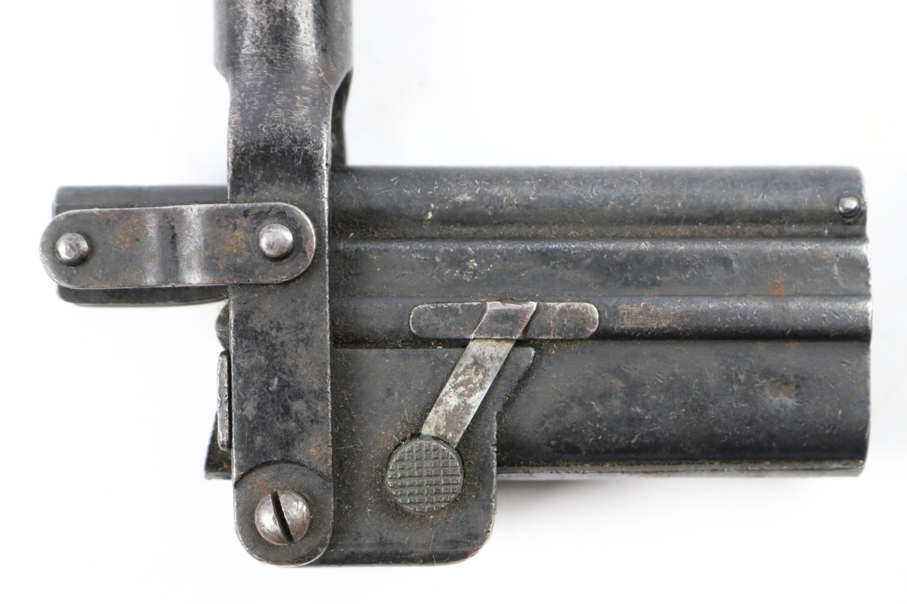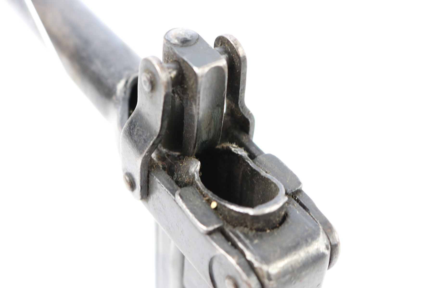 5/30/18 – This is an original WW1 production Imperial snail drum Luger magazine loading tool. The device was made to quickly load snail drum luger magazines in 9mm. This tool has no proofs or stamps besides one small imperial proof stamp. The tool is in all original configuration and is fully functional. The finish is worn and missing in a few places, but overall this is in great shape. Guaranteed original and authentic.