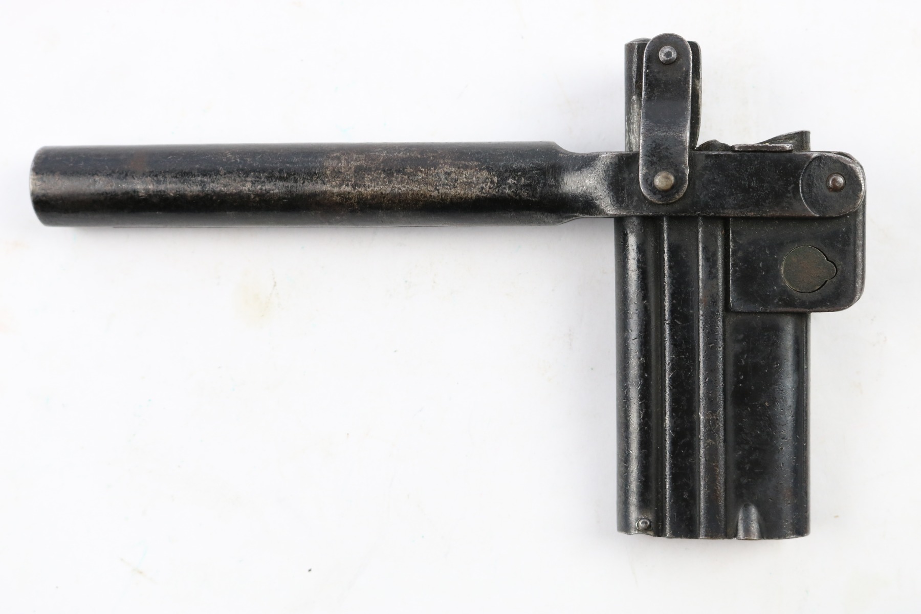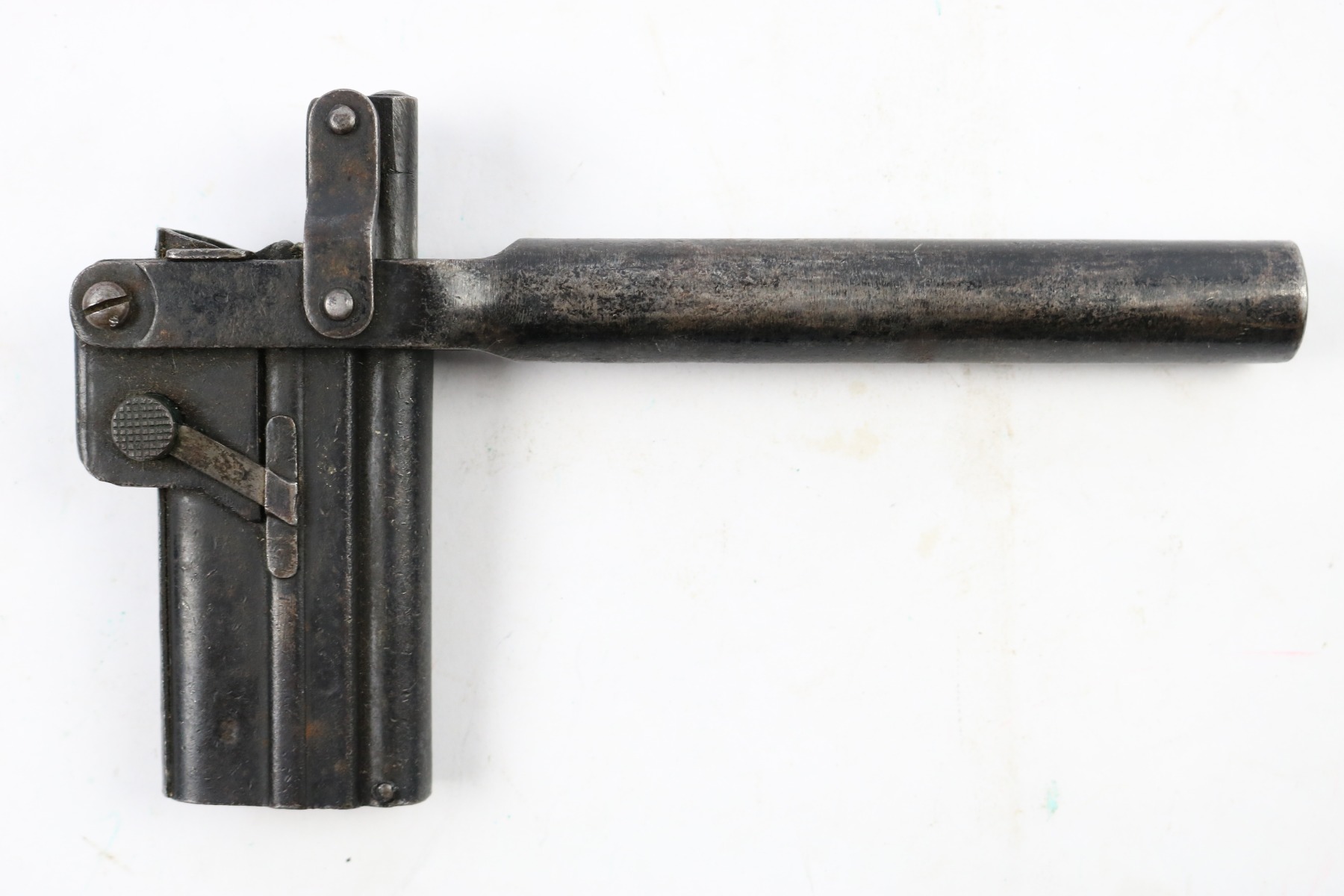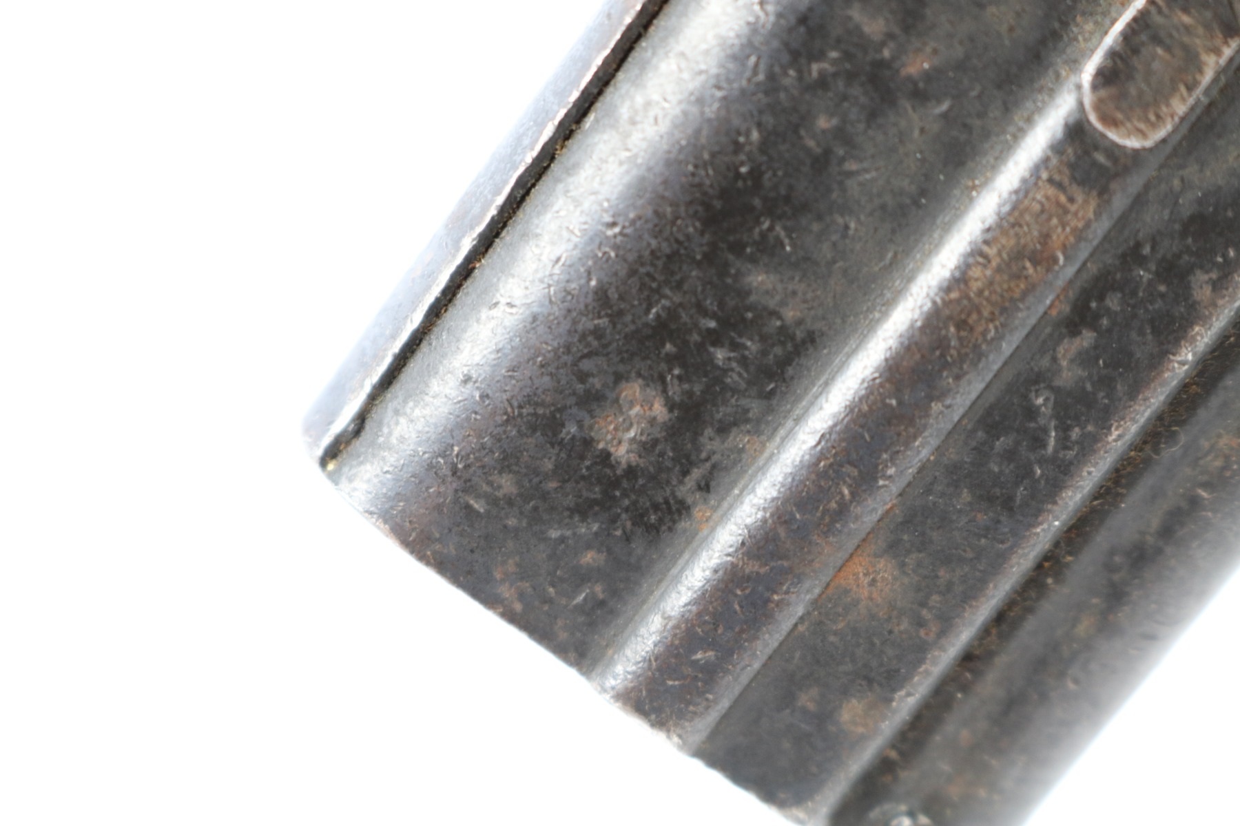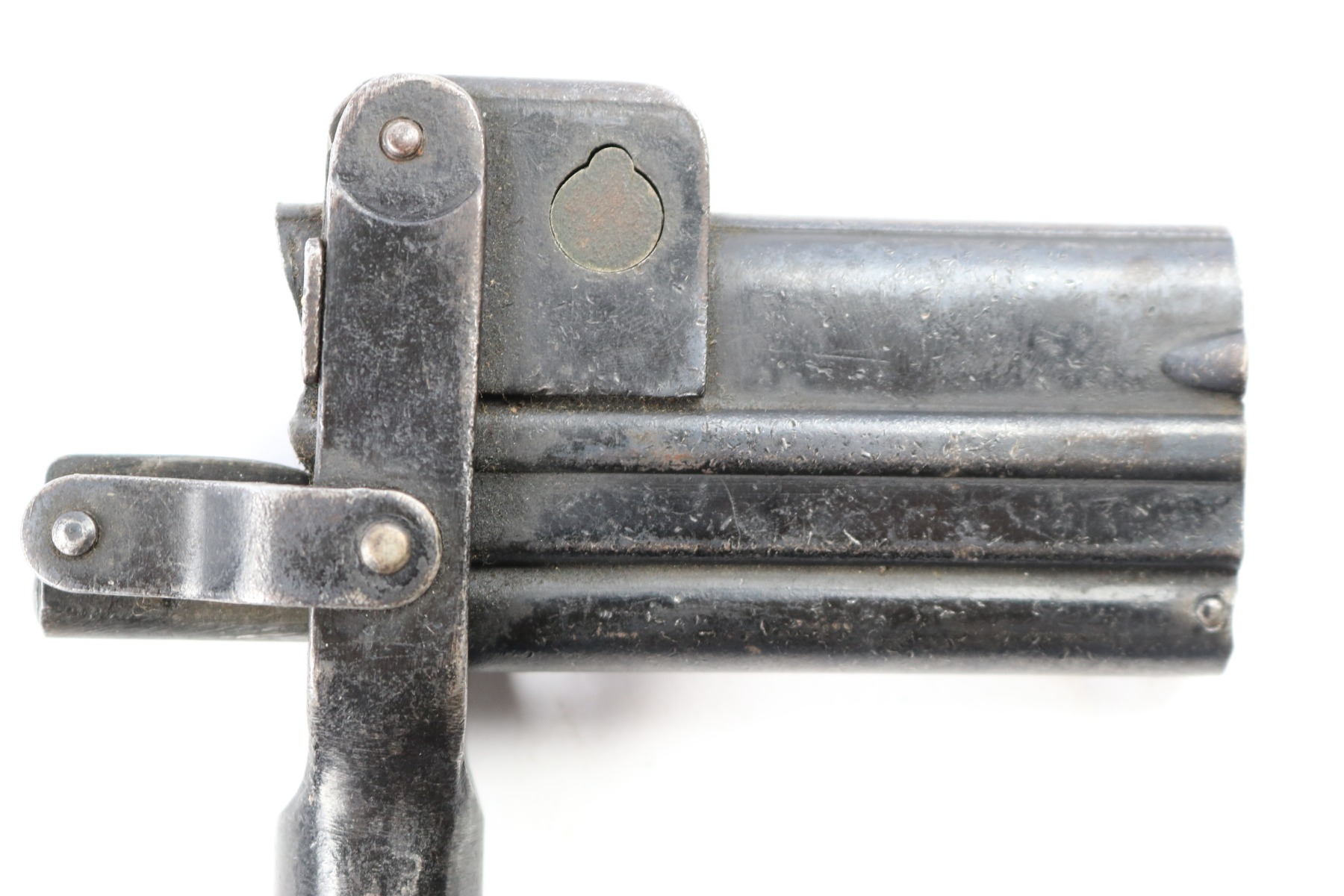 5/30/18 – This is an original WW1 production Imperial snail drum Luger magazine loading tool. The device was made to quickly load snail drum luger magazines in 9mm. This tool has no proofs or stamps besides one small imperial proof stamp. The tool is in all original configuration and is fully functional. The finish is worn and missing in a few places, but overall this is in great shape. Guaranteed original and authentic.