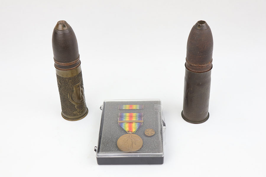 SOLD – WW1 Trench Art Shells & US AEF Medal