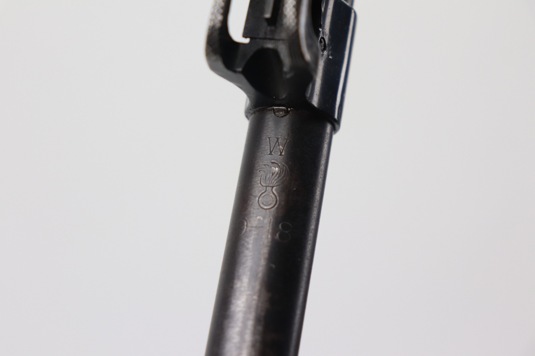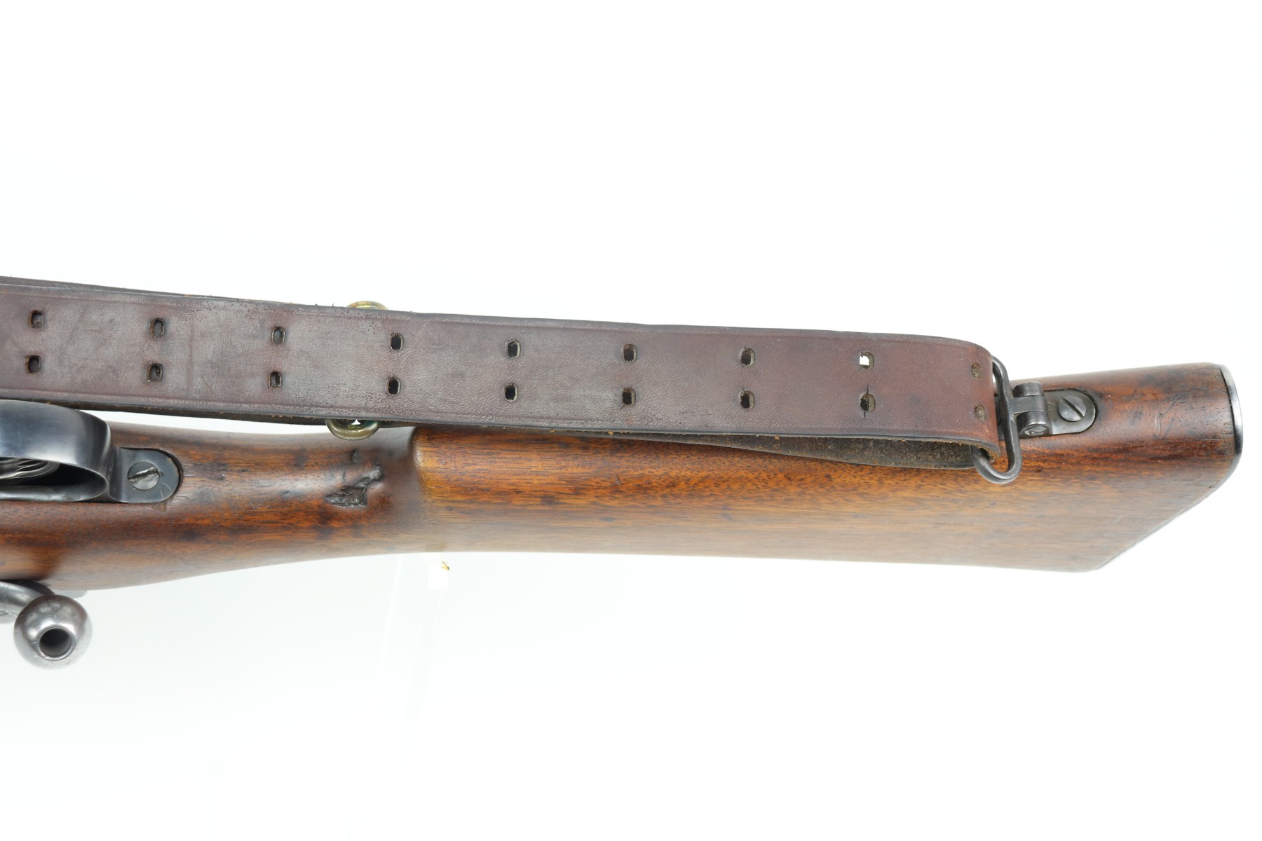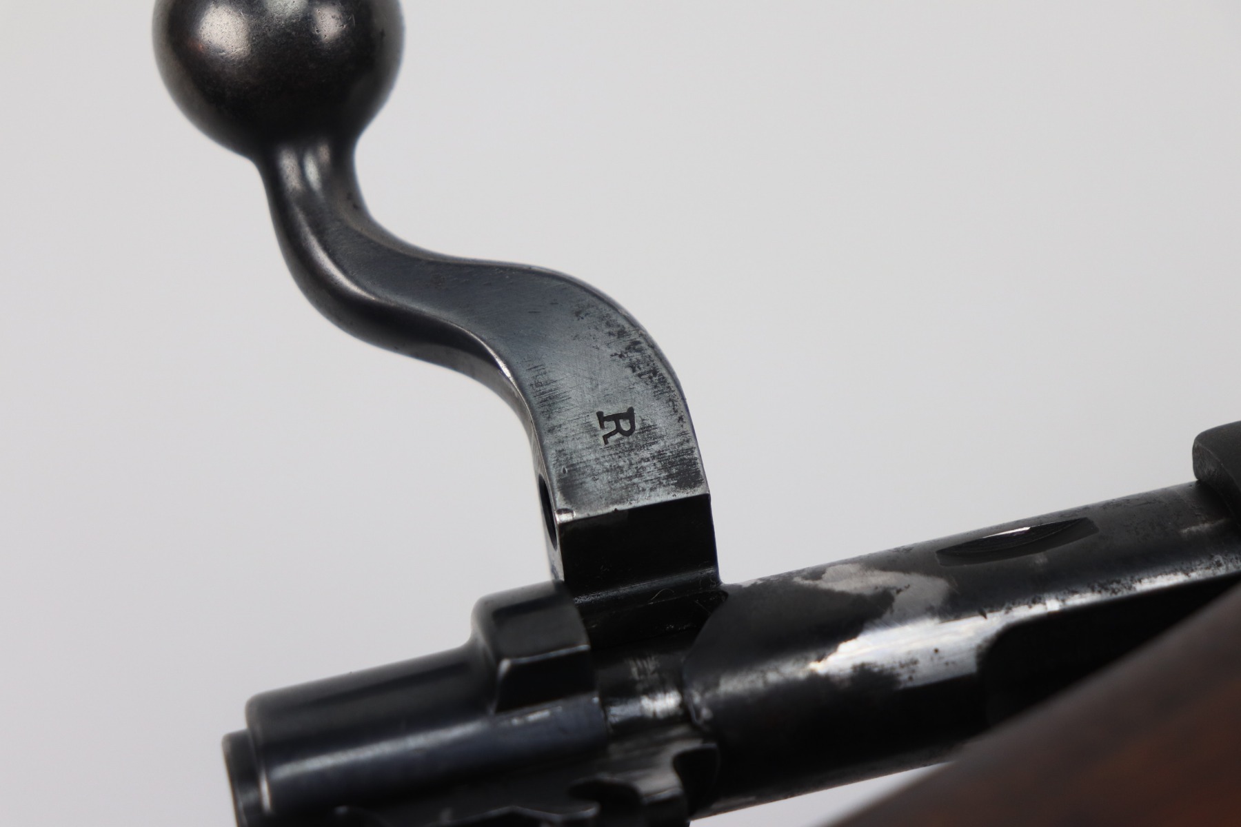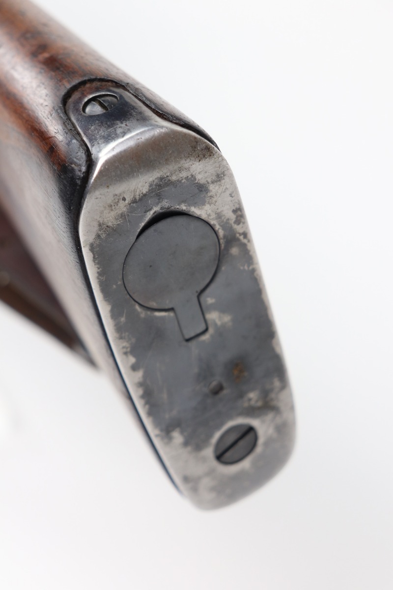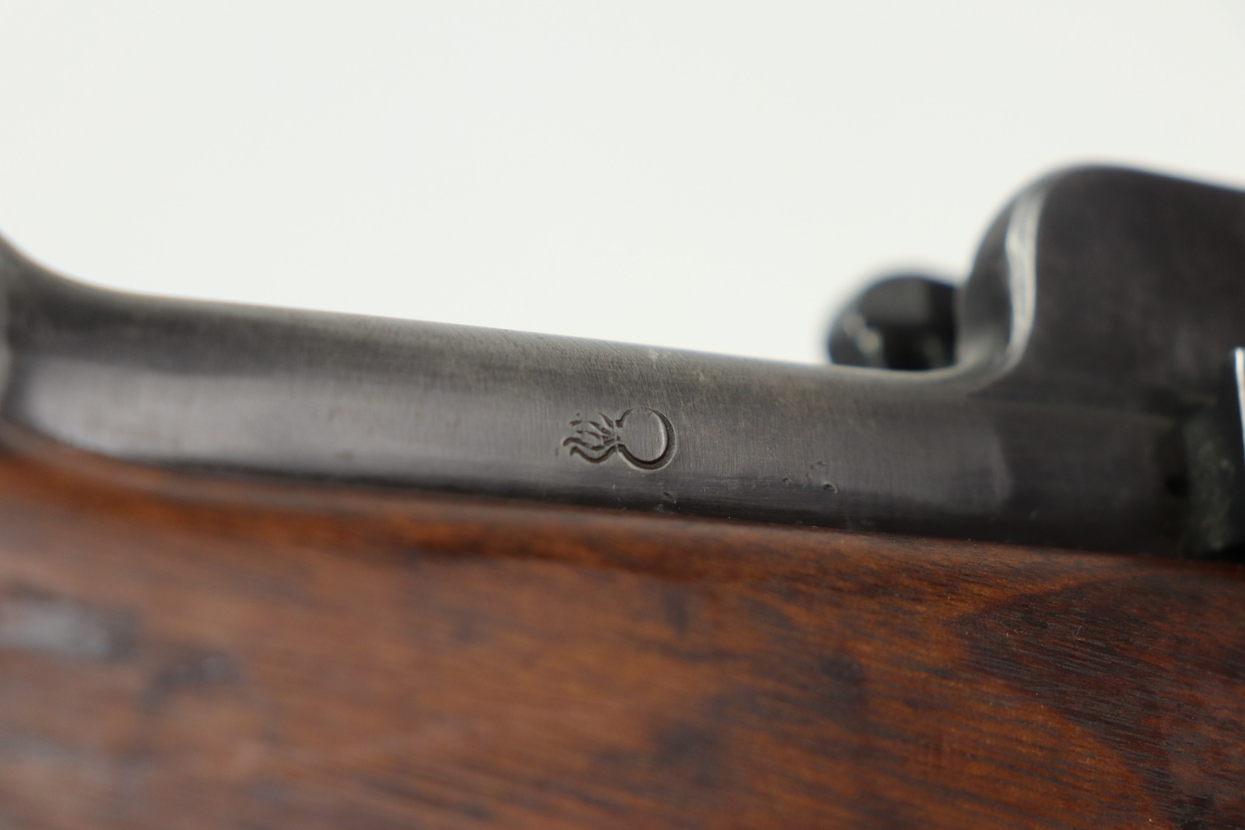 2/22/21 – This is an excellent example of a Winchester Model 1917 issued to the US military in September of 1918. The receiver and barrel have the proper flaming bomb military proofs. We were told the bolt was made by Eddystone. There is a name scratched into the right side of the receiver. Overall, the gun is in excellent condition, but there is minor thinning on the barrel and receiver and spotty discoloration on the barrel bands and floor plate. The stock is very nice but seems to have been lightly sanded at some point. The gun comes with an original sling. The bore is near-mint.