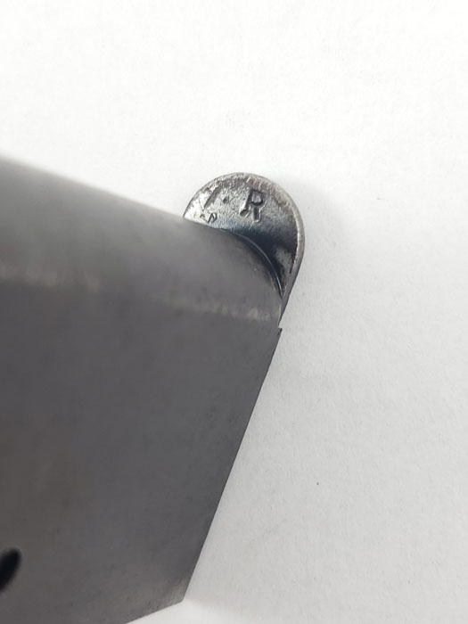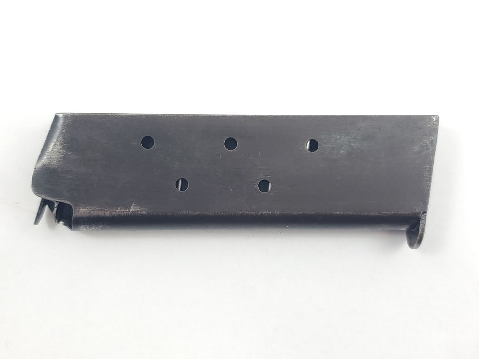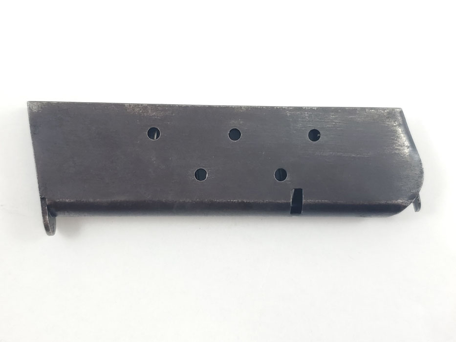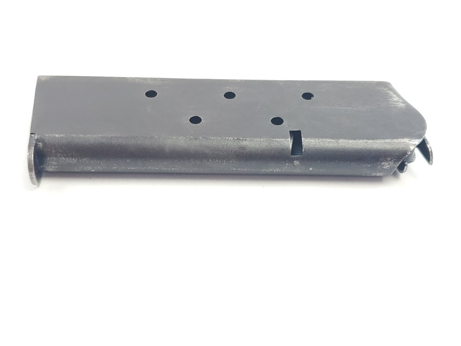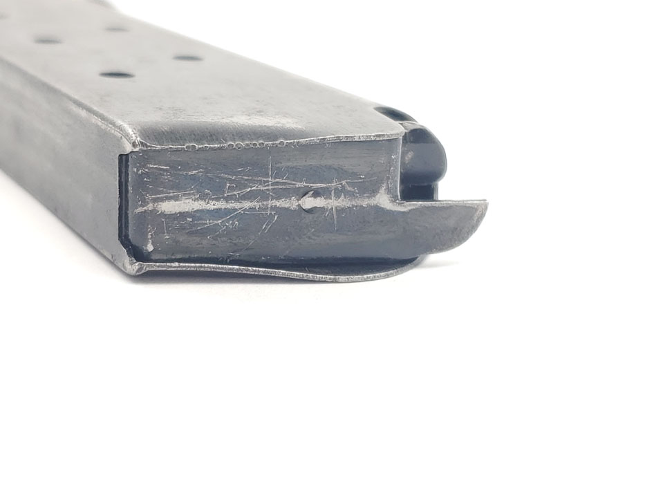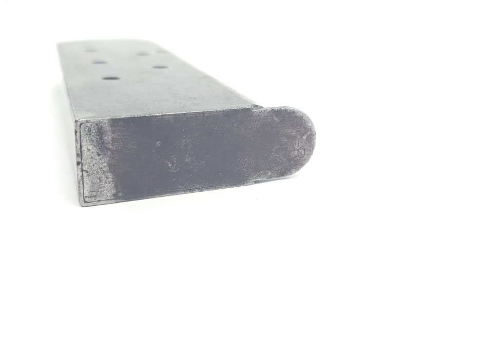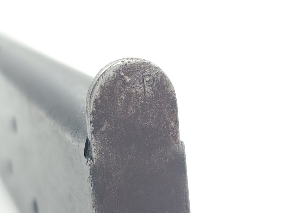 4/14/20 – This is an original WW2 magazine for a model 1911A1. The magazine is stamped on top of the lip “R” and “C-R” on the bottom of the base for Risdon. There is dark patina mixed throughout the original blued finish, making this touch to grade condition-wise. However the spring is strong and fully functional, making this a nice collector’s mag.