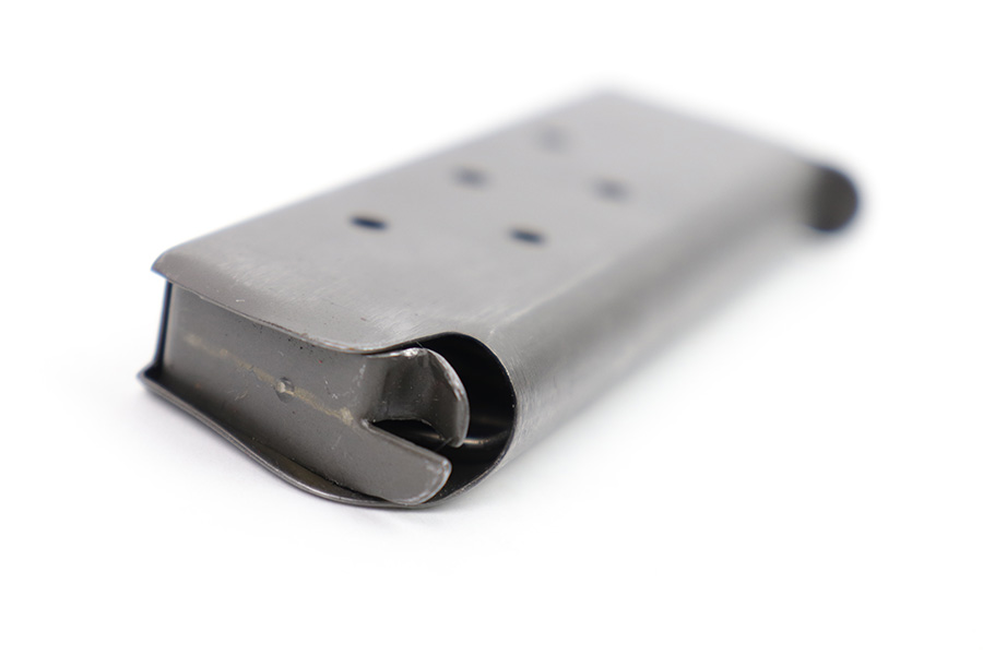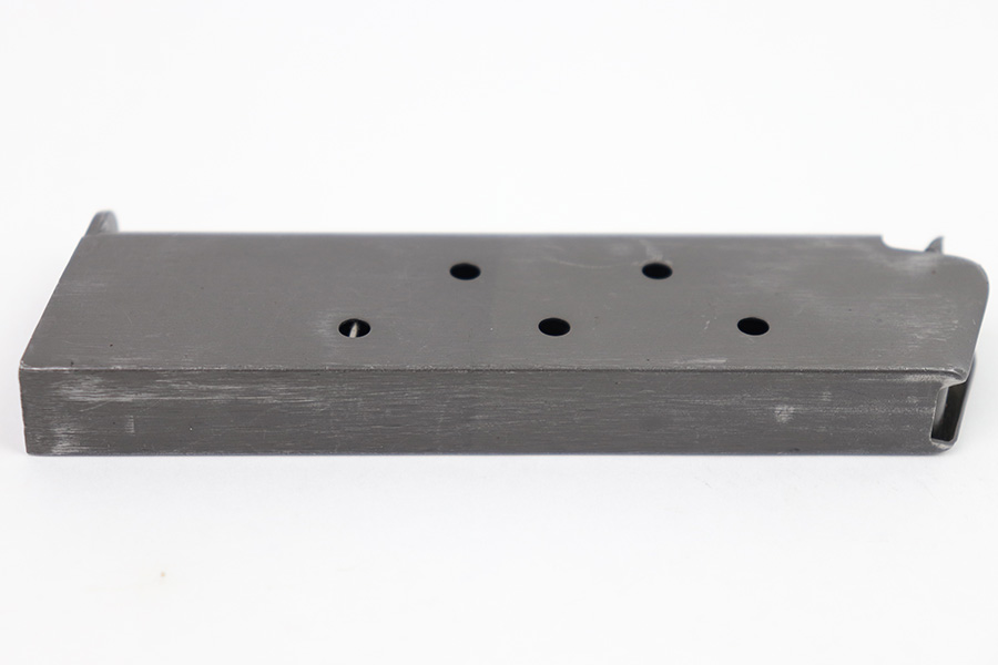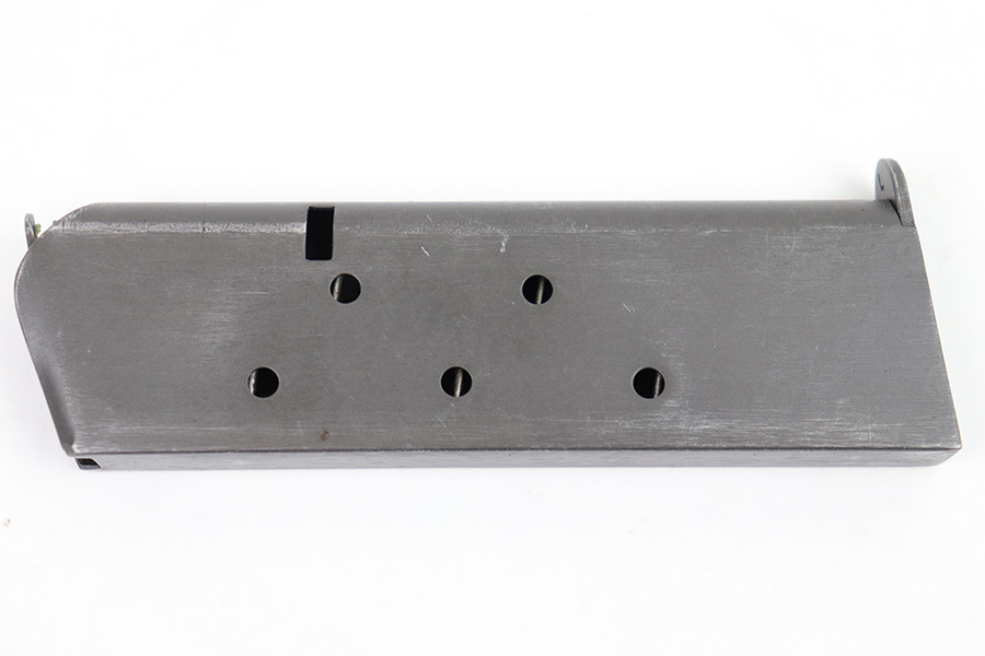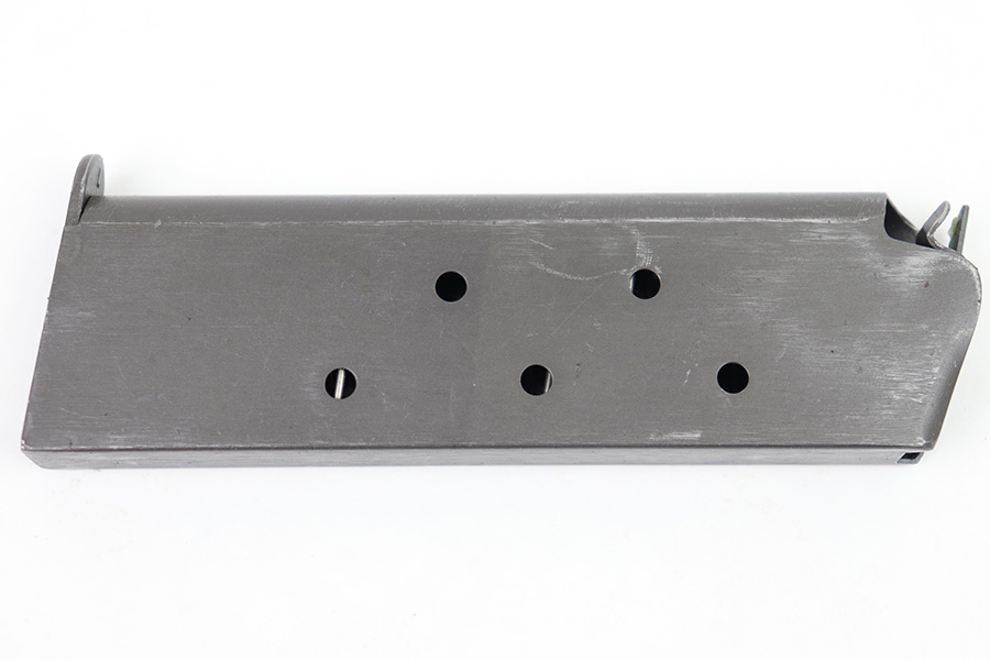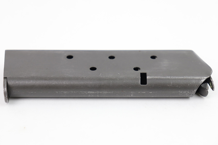 1/23/23 – This is an original WW2 M1911A1 magazine. The magazine has a parkerized finish that’s in excellent overall condition. There’s some mild surface wear but no rust or pitting. The spring is fully functional. Stamped “L” on the lip by Little.
