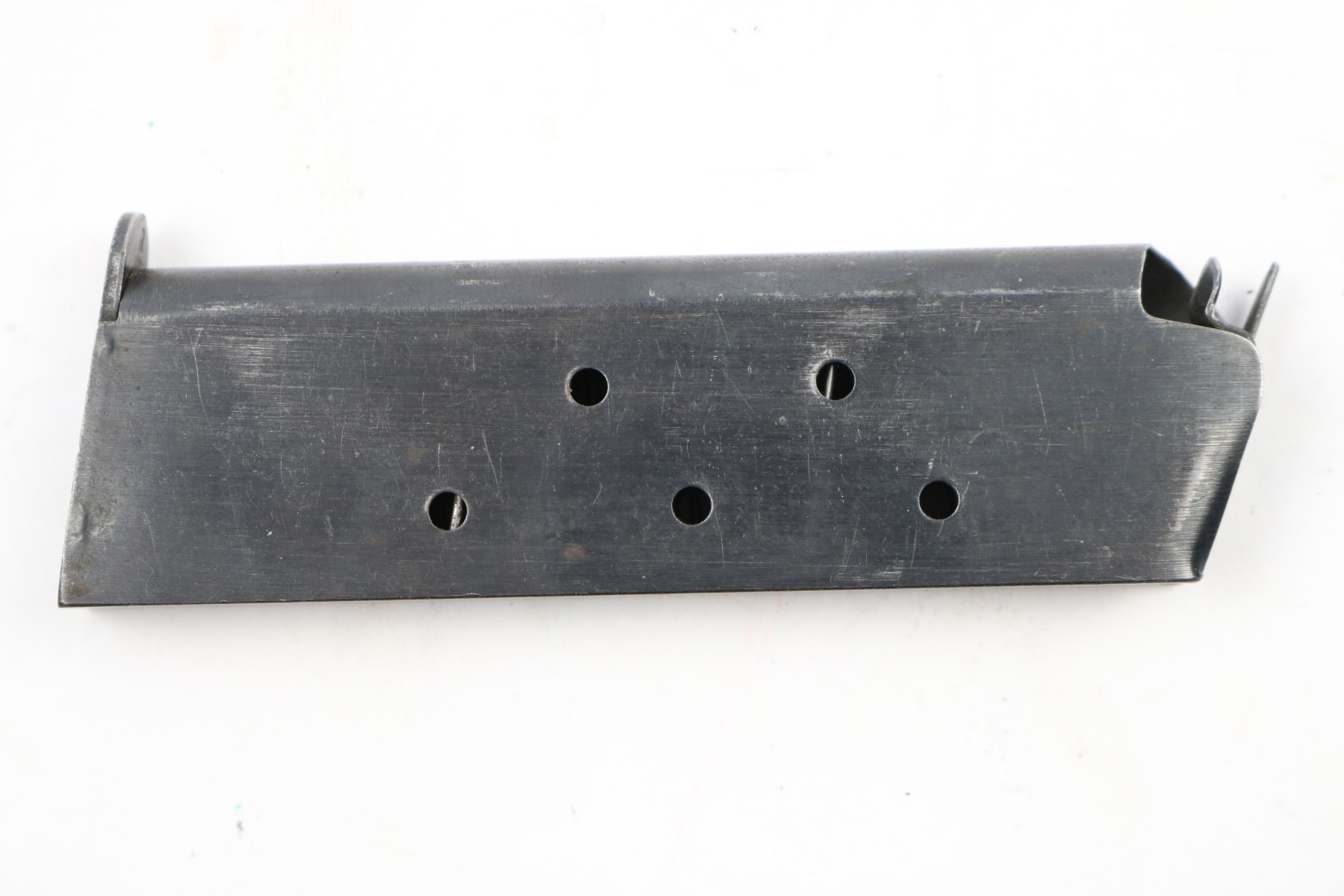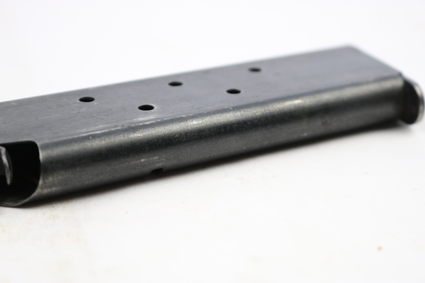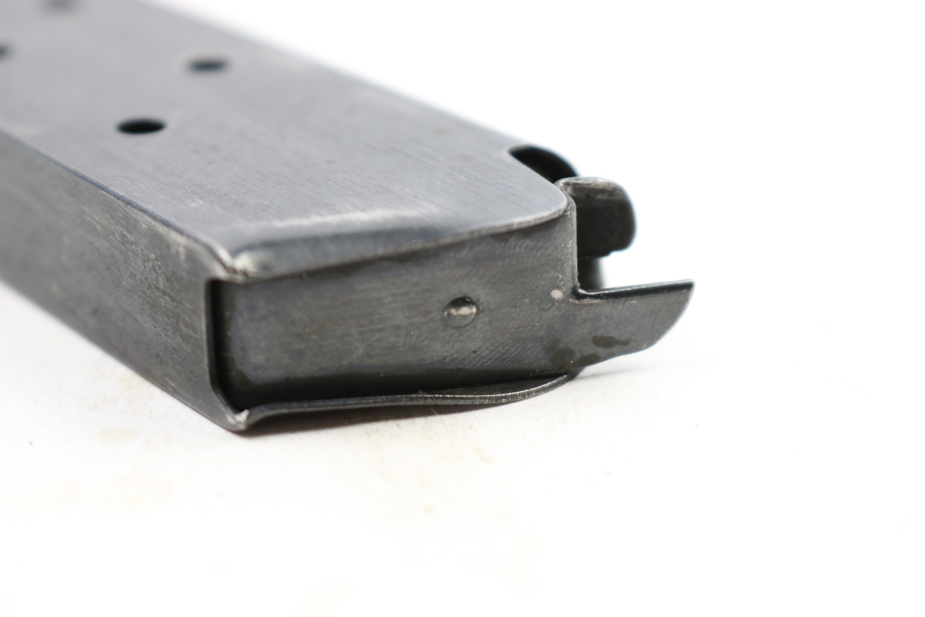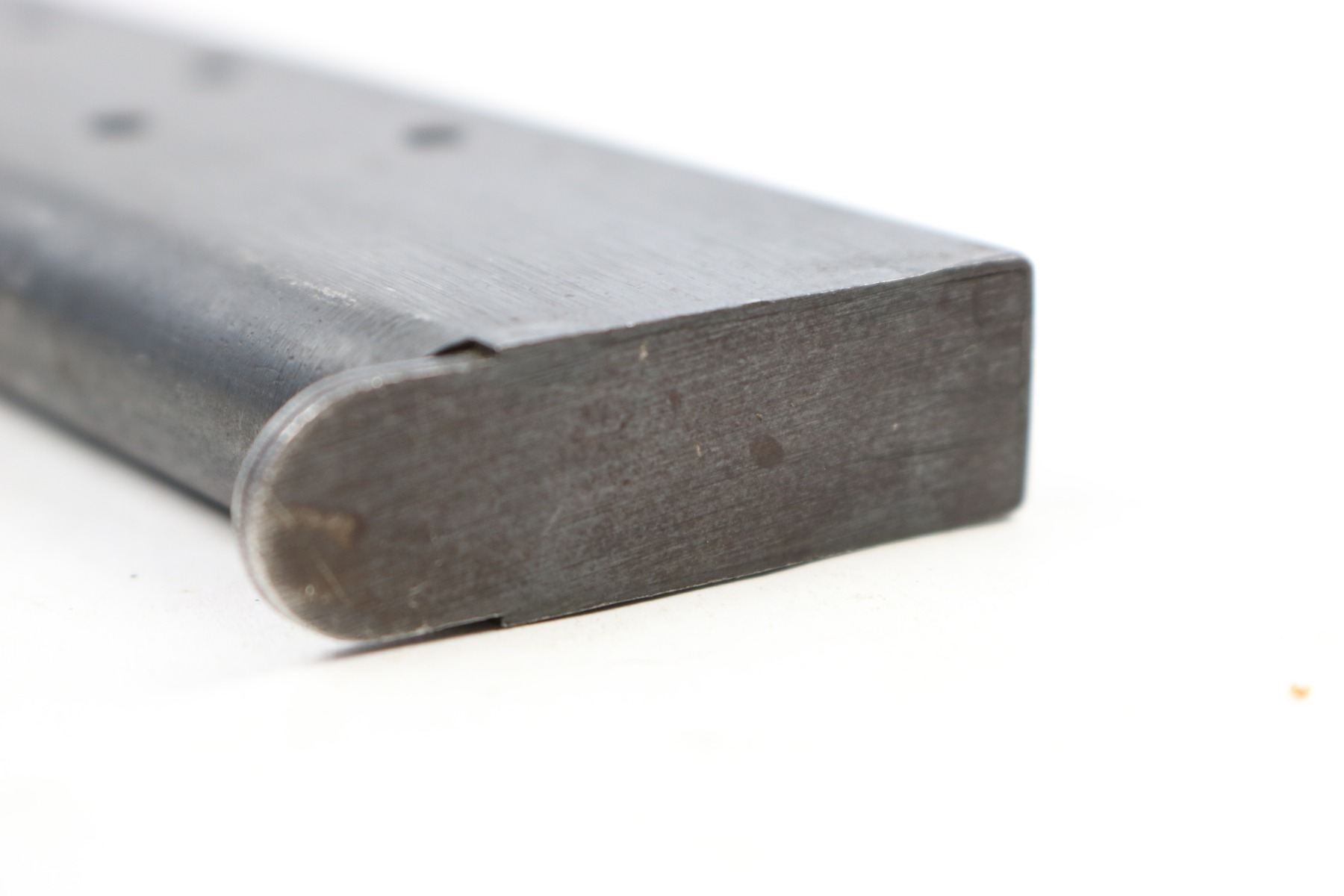 6/14/18 – This is an original WW2 production 1911A1 magazine. Stamped “R” on the lip of the floorplate. No other markings. The original bluing is in excellent condition with only some minor bluing loss. Fully functional.
