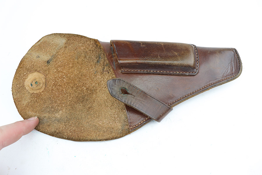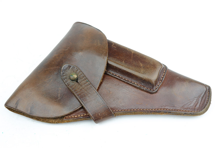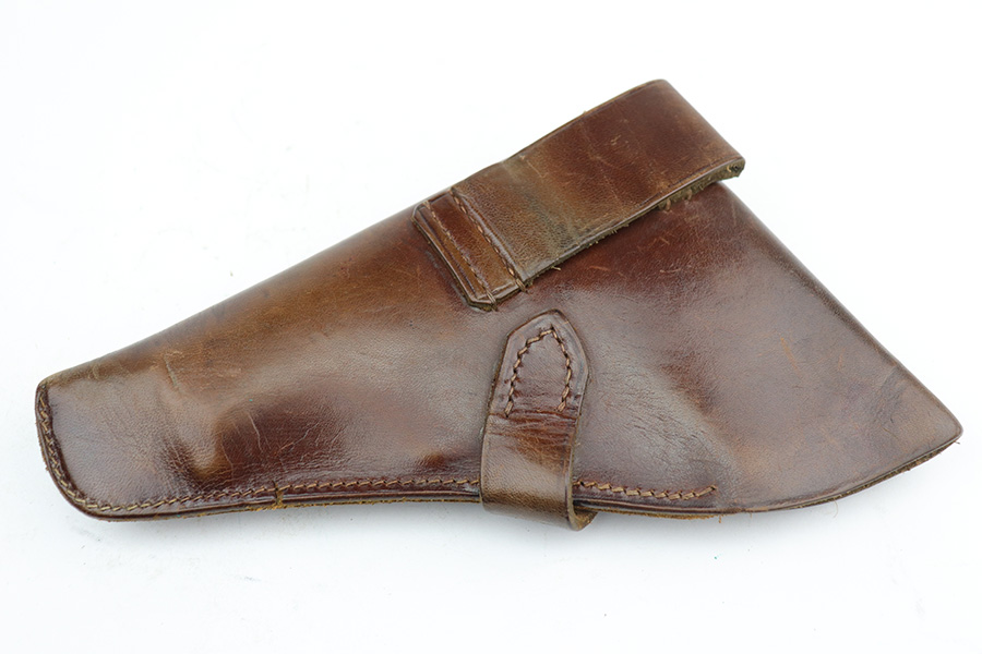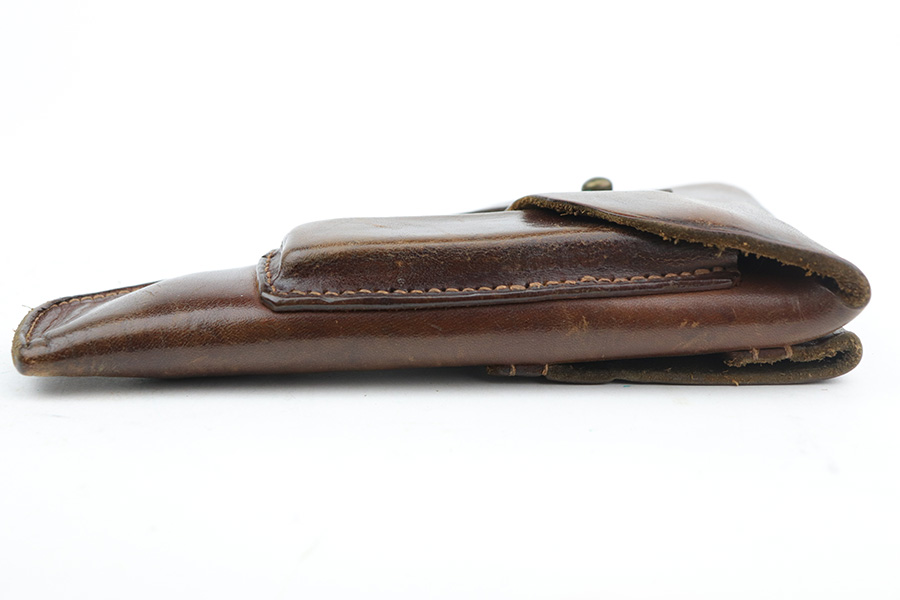 10/2/21 – This holster, manufactured during WW2, was most likely intended for a Mauser 1934, but will accommodate most Axis pistol chambered in 7.65mm. The leather of the holster is in great condition as is the stitching. The brass closure nut indicates earlier production and the holster has a closure strap anchored on the back of the holster.