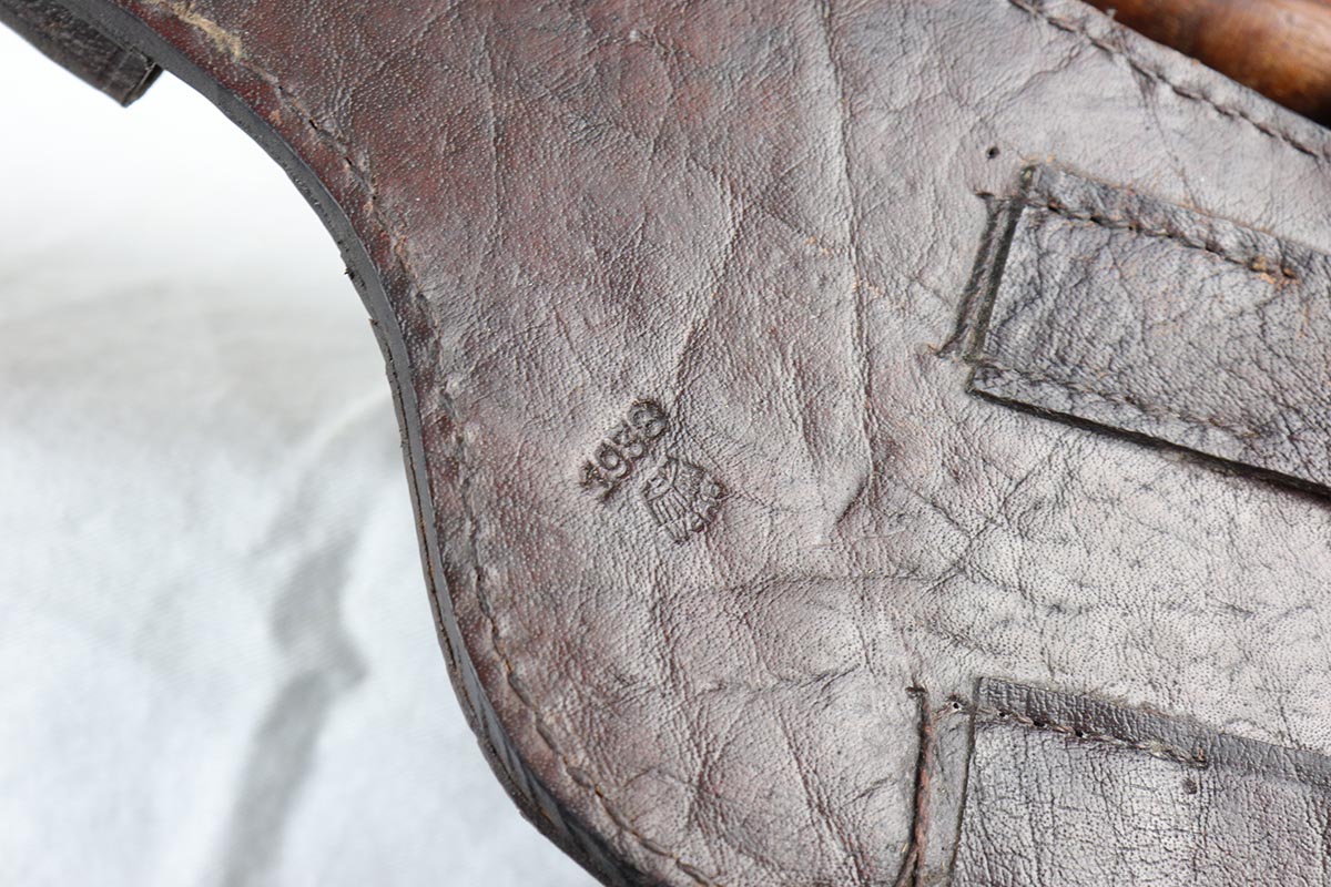 3/27/18 – This a very nice and original example of a Mauser C96 holster from World War II.  It is waffen marked (WaA8) with a 1938 date proof.  It has some very minor crack but is otherwise excellent with no notable flaws.  Comes with original cleaning rod and an original spare magazine spring that is stored in the front pouch.