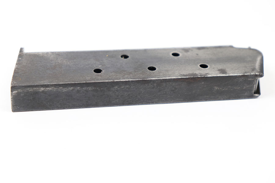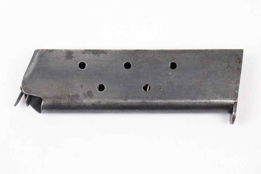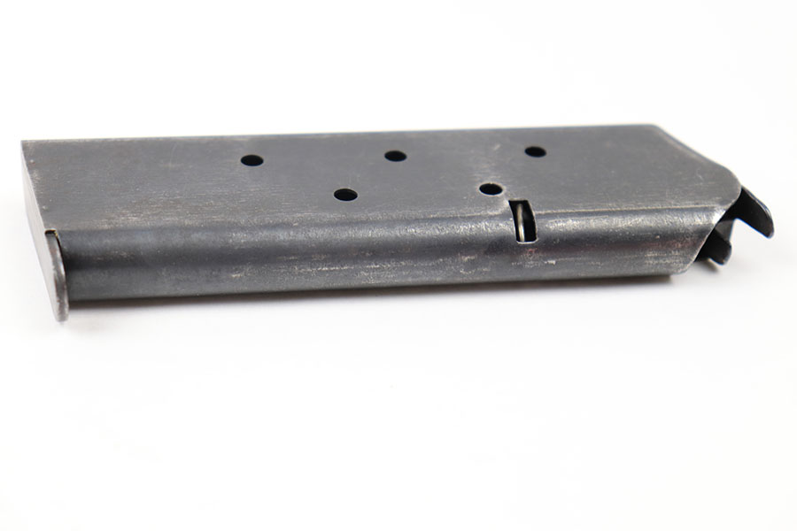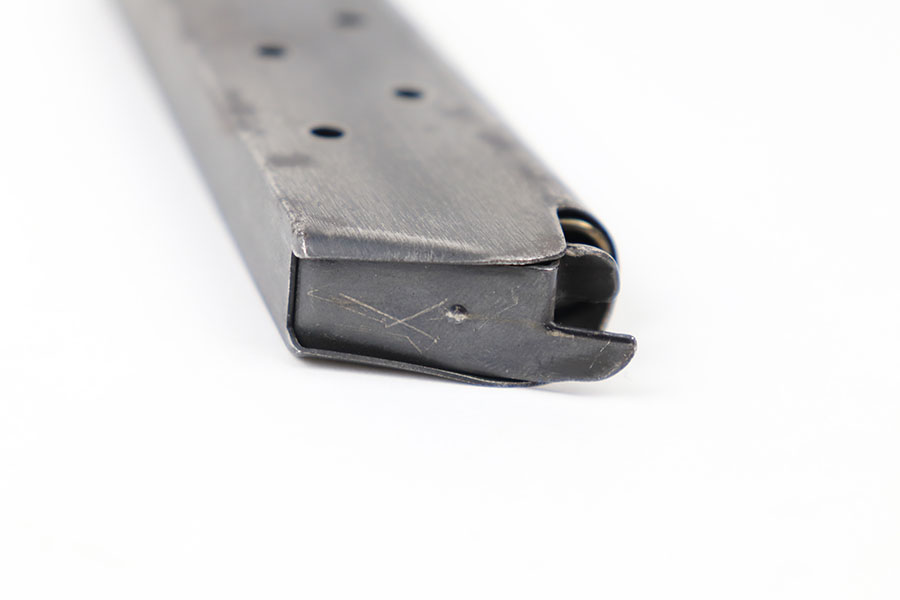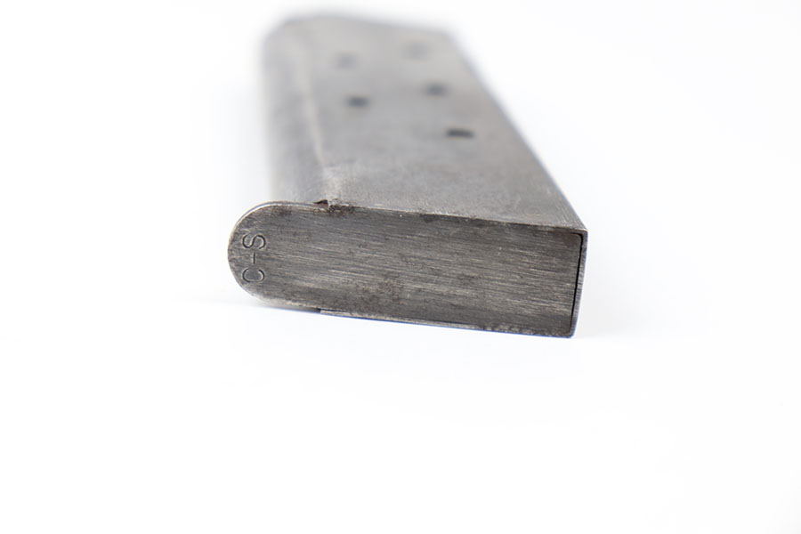 7/9/21 – This is an original Colt 1911A1 magazine from WW2. The magazine is in great condition. The magazine base is stamped “C-S” and there are no other markings. There’s some light surface patina on the base and tube, as well as thinning of the finish on the tube. The spring is strong and fully functional.