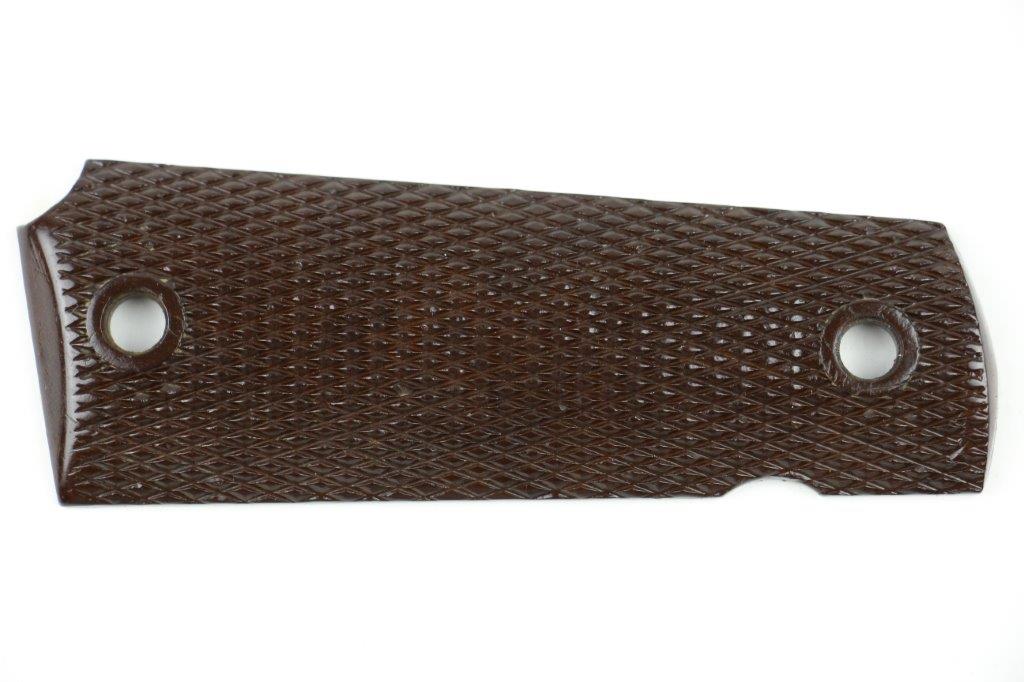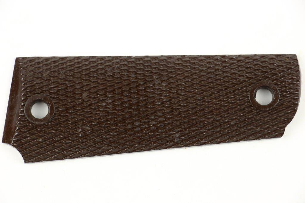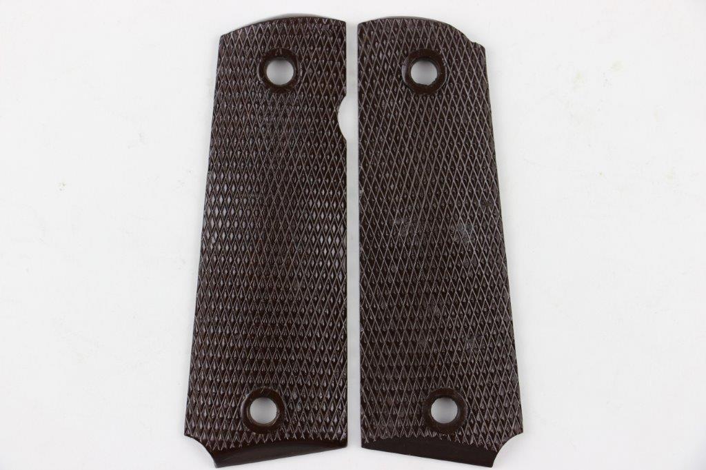 8/31/24 – This is an original WW2 pair of Colt M1911A1 grips. Each grip panel has a sharp exterior diamond pattern with minimal surface wear. Near-excellent overall condition. The interior of each panel is marked; the left panel is marked “I”, while the right panel is “I O”. No cracks or chips and no screws included.