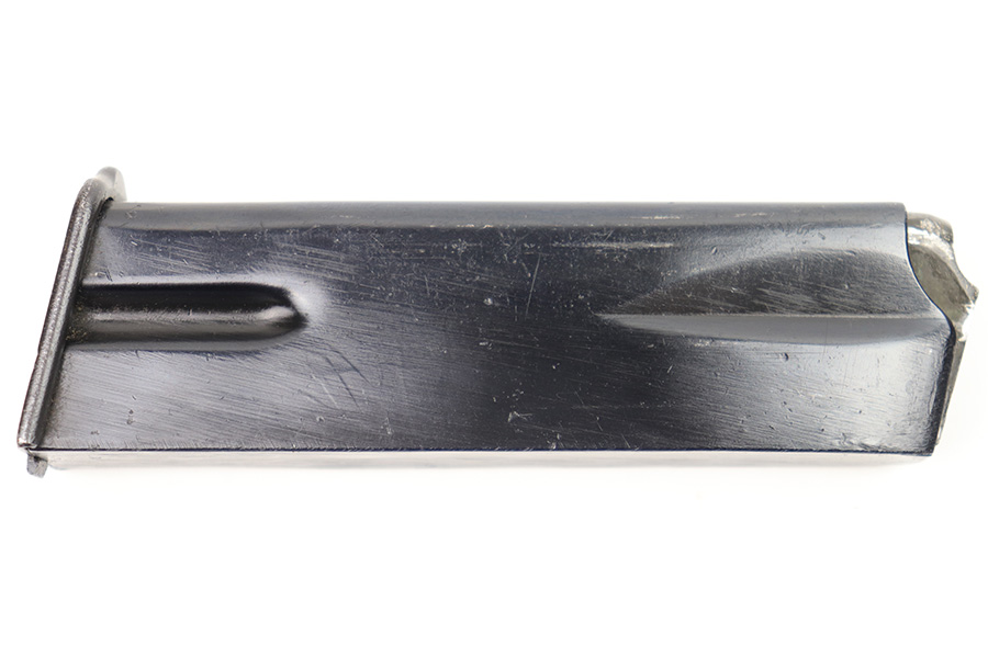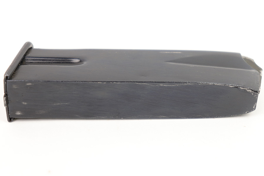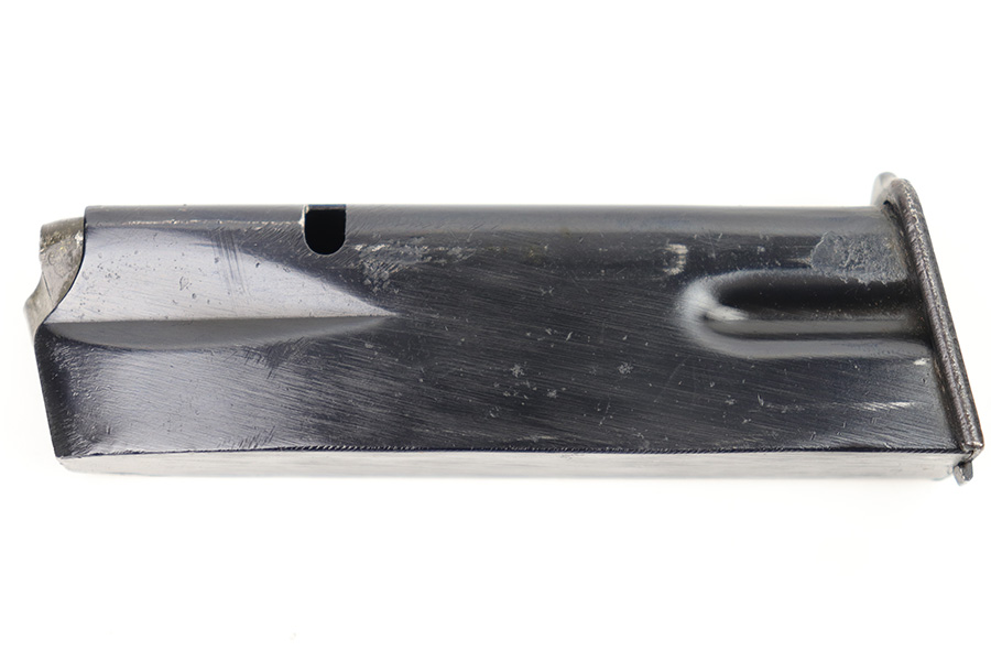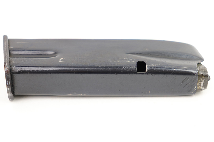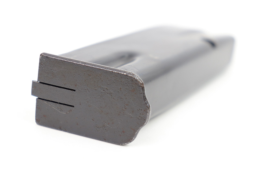1/23/23 – This is a WW2 era production Commercial Hi Power magazine. The magazine has been refinished, as indicated by the shiny, dark finish on the tube, and evidence of blued-over pitting on the base. The magazine is fully functional with a strong spring. No markings or stamps, but is typical WW2 commercial variation.