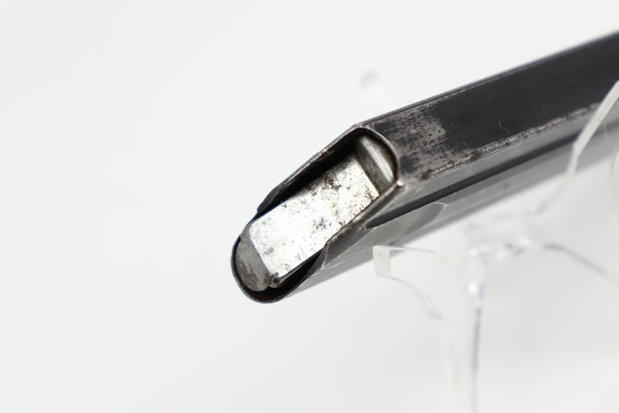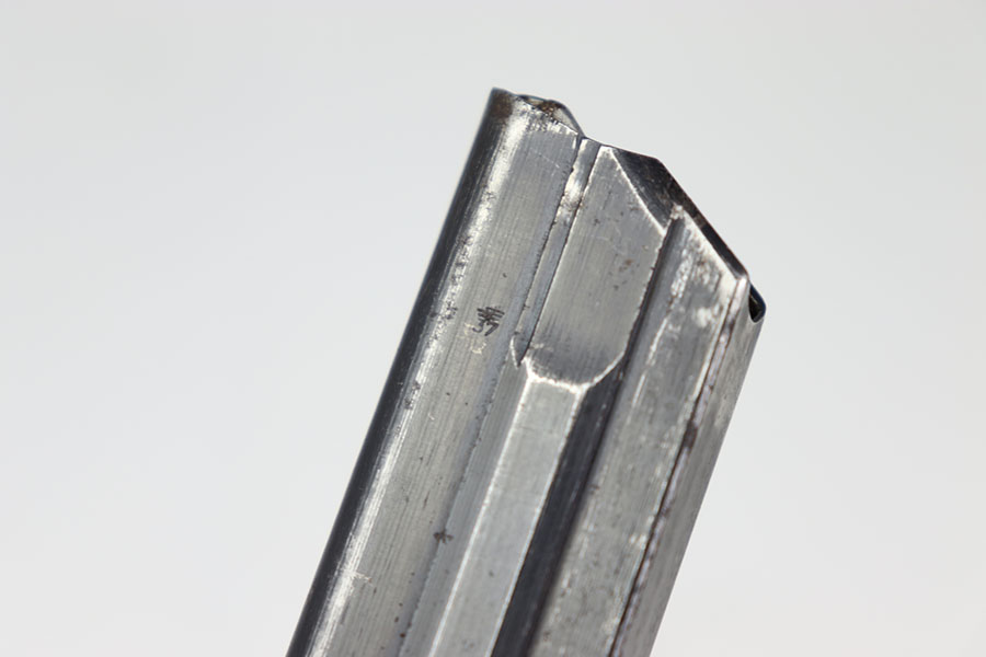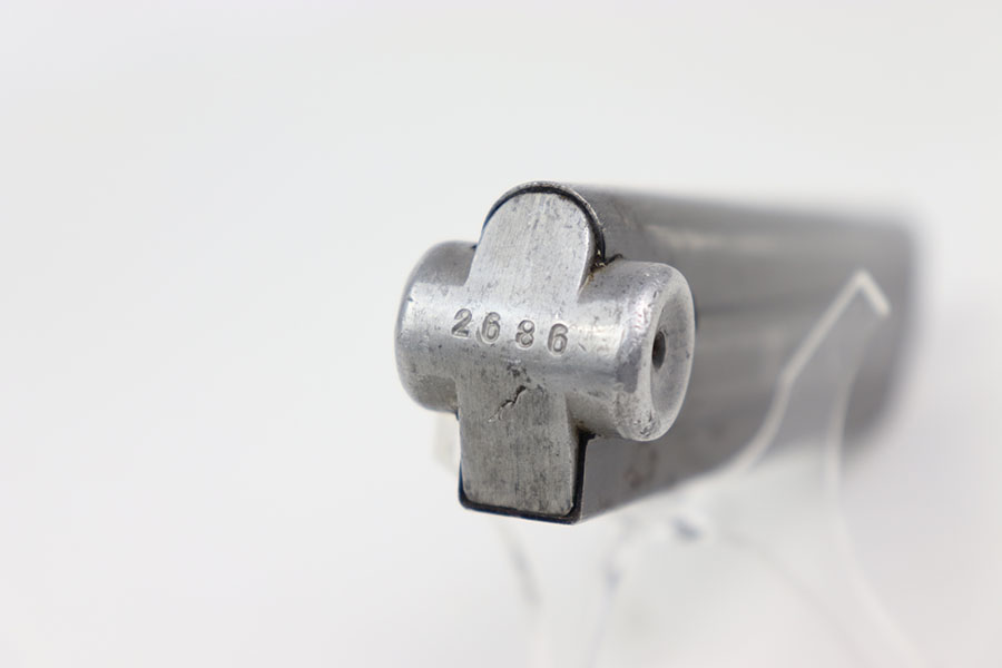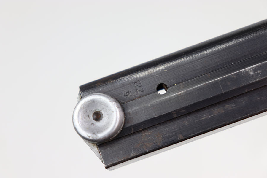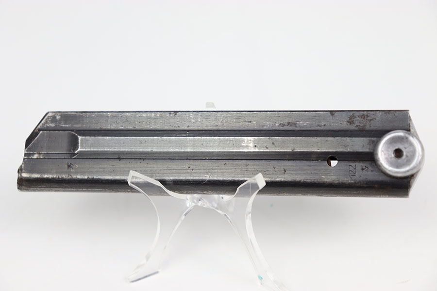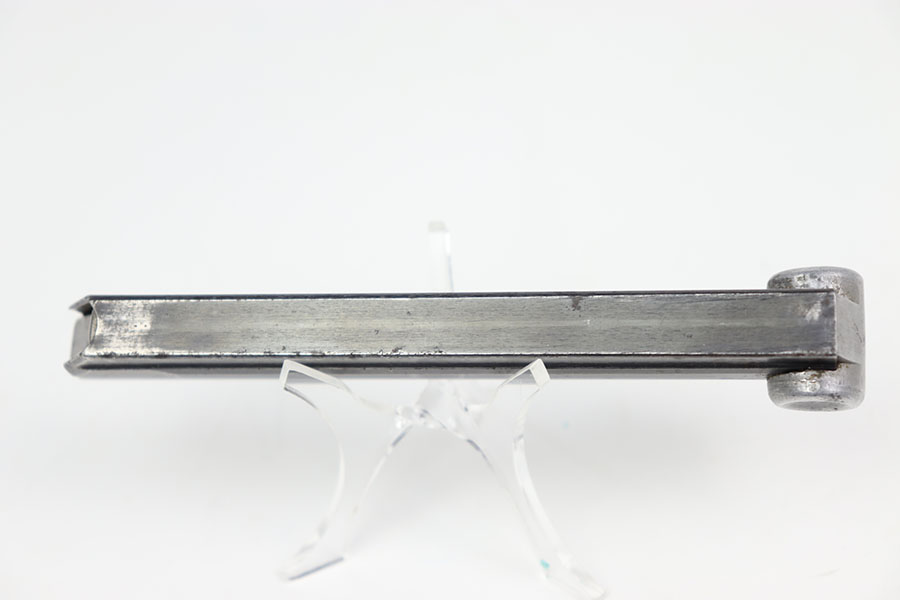 9/7/24 – This is an original “122” code late war variation (1939-41) Luger magazine from WW2. The magazine has a blued tube and aluminum base. The base is marked with the serial number “2686” with a suffix that appears to be a “d”. The left side of the tube is “122” code stamped by Haenel with two “Eagle 37” proof stamps. The magazine is in great overall condition, with the majority of its wear on the front edge and the spine with some spots of patina throughout. Has a strong and fully functional spring.