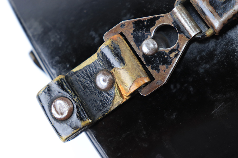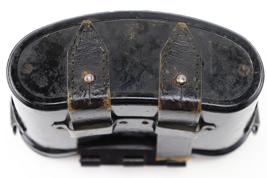 8/15/23 – This is a pair of WW2 German 6×30 Dienstglas Binoculars. These binoculars are all original with the original leather shoulder strap, and comes with an original bakelite case. The case is in great condition and stamped on the interior, as shown. Each of the back belt loops are broken, but they are still attached, as shown. The loops are ersatz material and indicative of late-WW2 production. The binoculars have crisp optics and a distance reticle in the right eye lens. There’s some mild speckling through the optics, but no cloudiness and overall very clear and clean. The exterior of the binoculars have typical high edge wear and handling use wear, but no major issues. The adjustment knobs are fully functional and easy to operate.