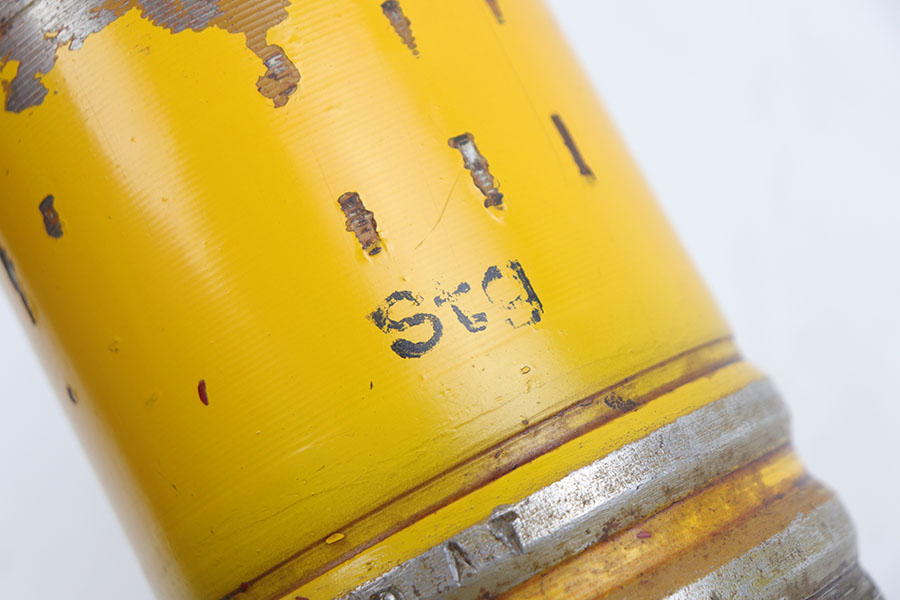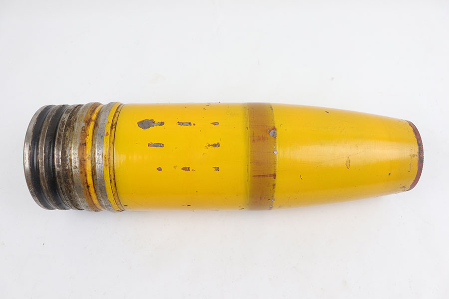 8/7/20 – This is an exceptionally rare WWII German 88mm flak round. Now you would not think that with millions and millions of these round manufactured during WWII you would see a lot of these around however that is not the case as 99.9% were demilitarized or just used by the other European countries after WWII. This particular item is a flak gun round that has had the primer replaced with the tank round primer. The yellow HE round has been repainted. This listing also includes two fuses. One appears to be a proximity fuse, and the other a timed fuse. Several waffenamts can be seen on the shell. Appears to be 1942 dated. The items are very heavy, which is the caused for the higher shipping cost.