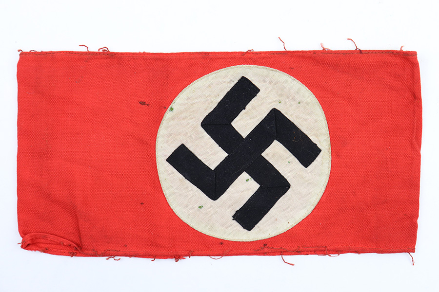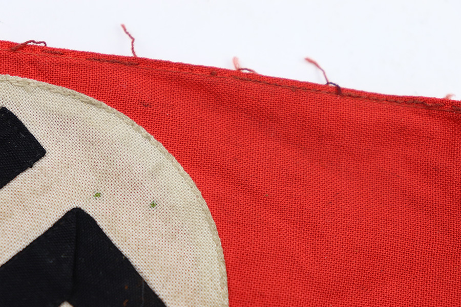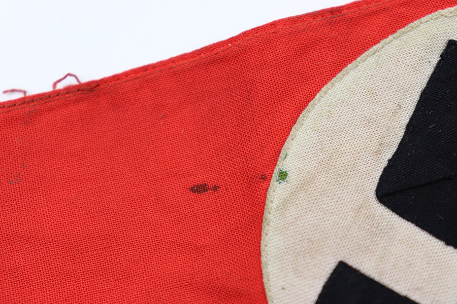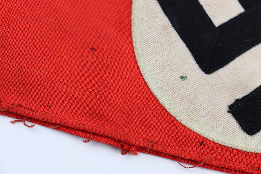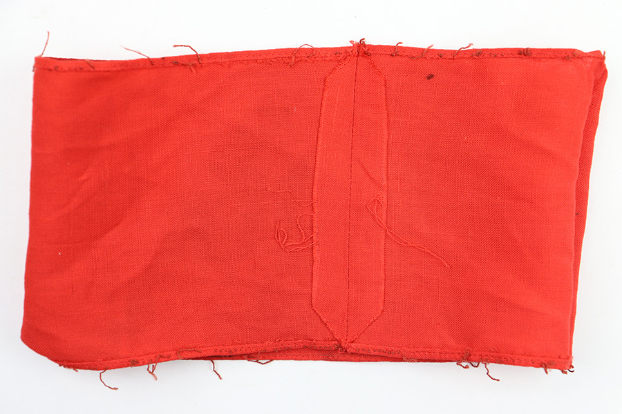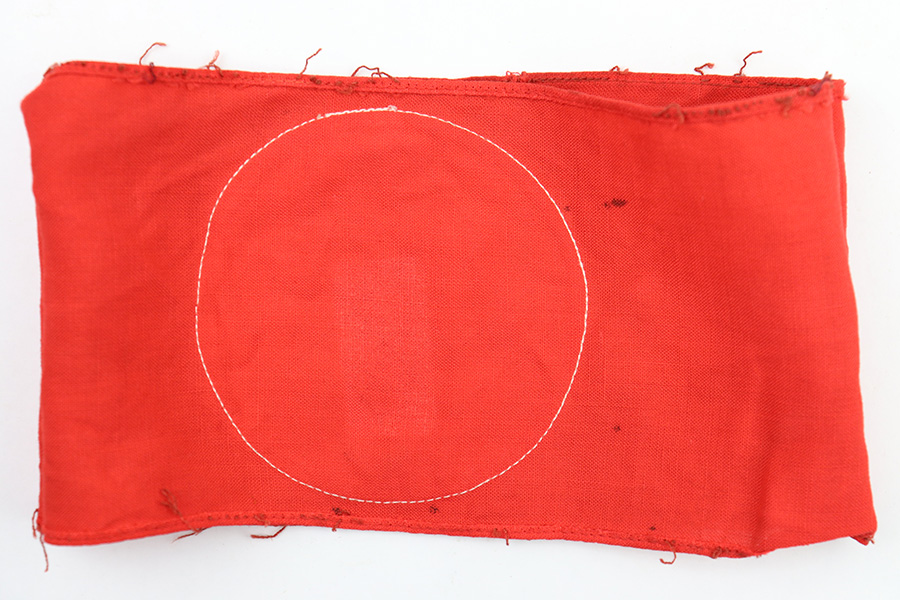 7/27/22 – This is an original WW2 German uniform armband. The armband has a sewn-on swastika within a sewn-on center white circle. No other markings or interior tags. there’s some mild aging and a few spots of small stains, but no holes or rips. The stitching is a little loose and fraying in a few areas, but this is minor. Overall in good condition.