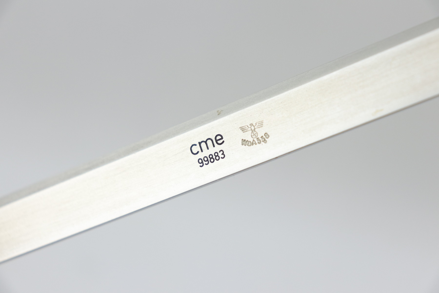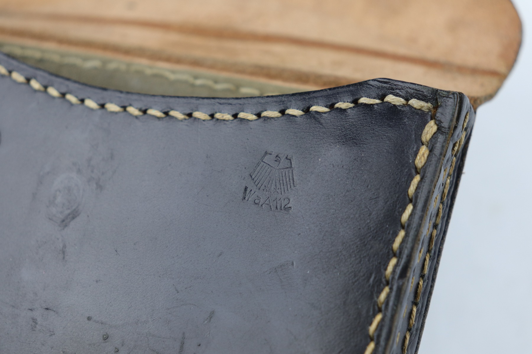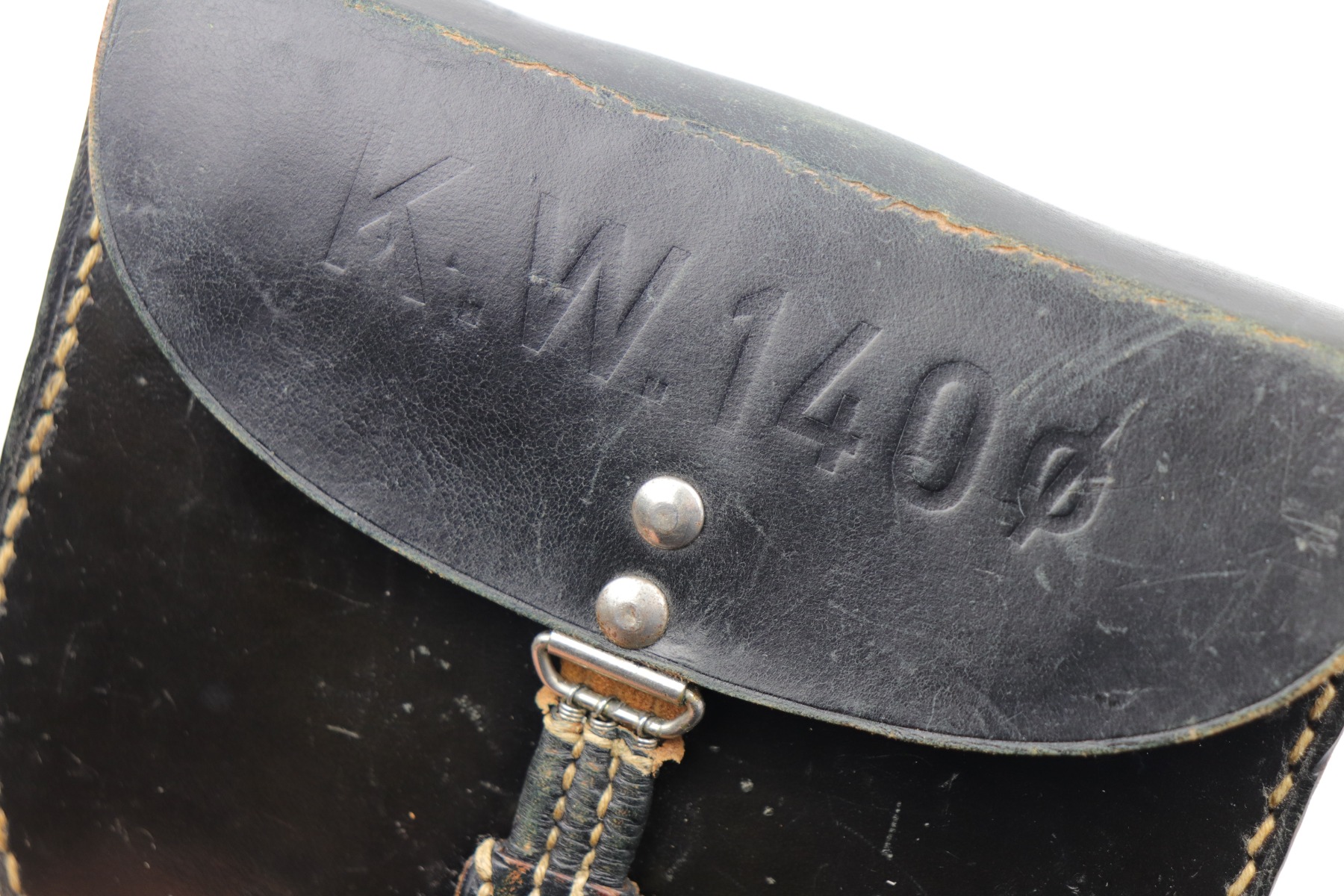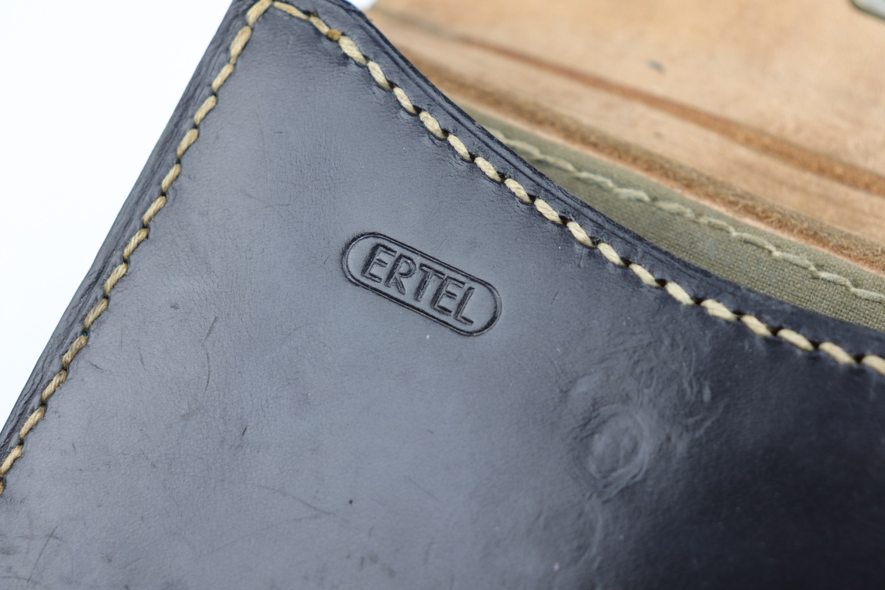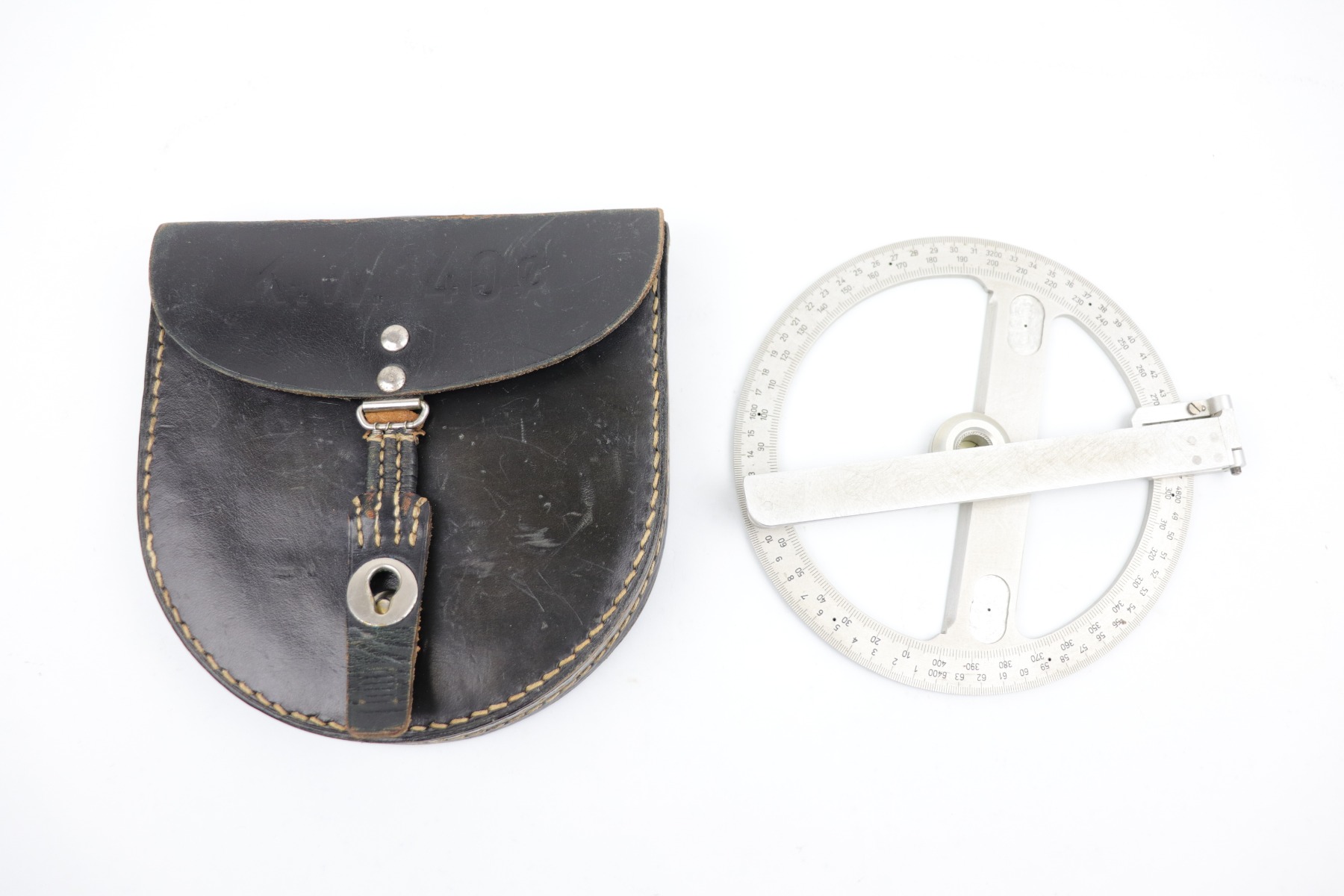 5/12/20 – This is an authentic, exceptionally well-made, near perfectly preserved WW2 German Army Artillery Calculator. The calculator itself is “Eagle 538” waffenamt and has a “cme” makers mark. The top flap of the black leather case is marked “K.W. 140”. The inside of the case is marked “Ertel” and has an “Eagle 112” waffenamt. The case is minty except for very light surface scuffs throughout and very minor cracking on the top flap where it creases. This was also featured in a recent Youtube video. Link below!