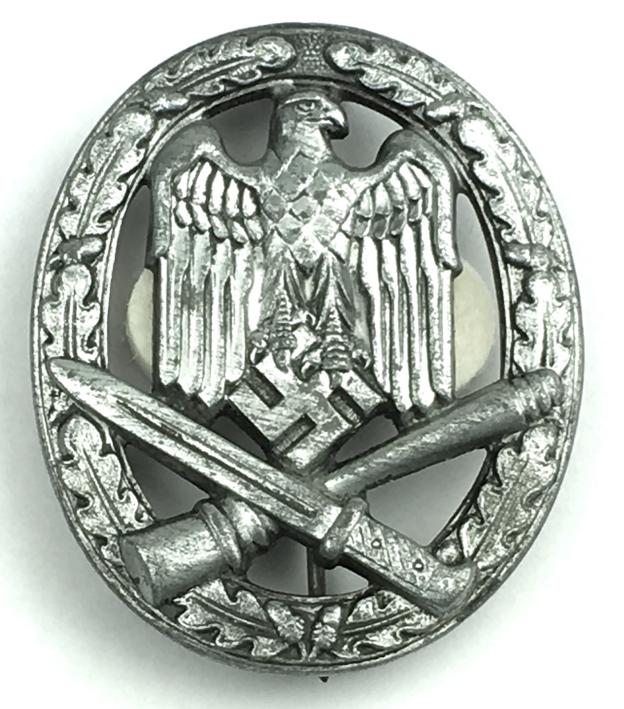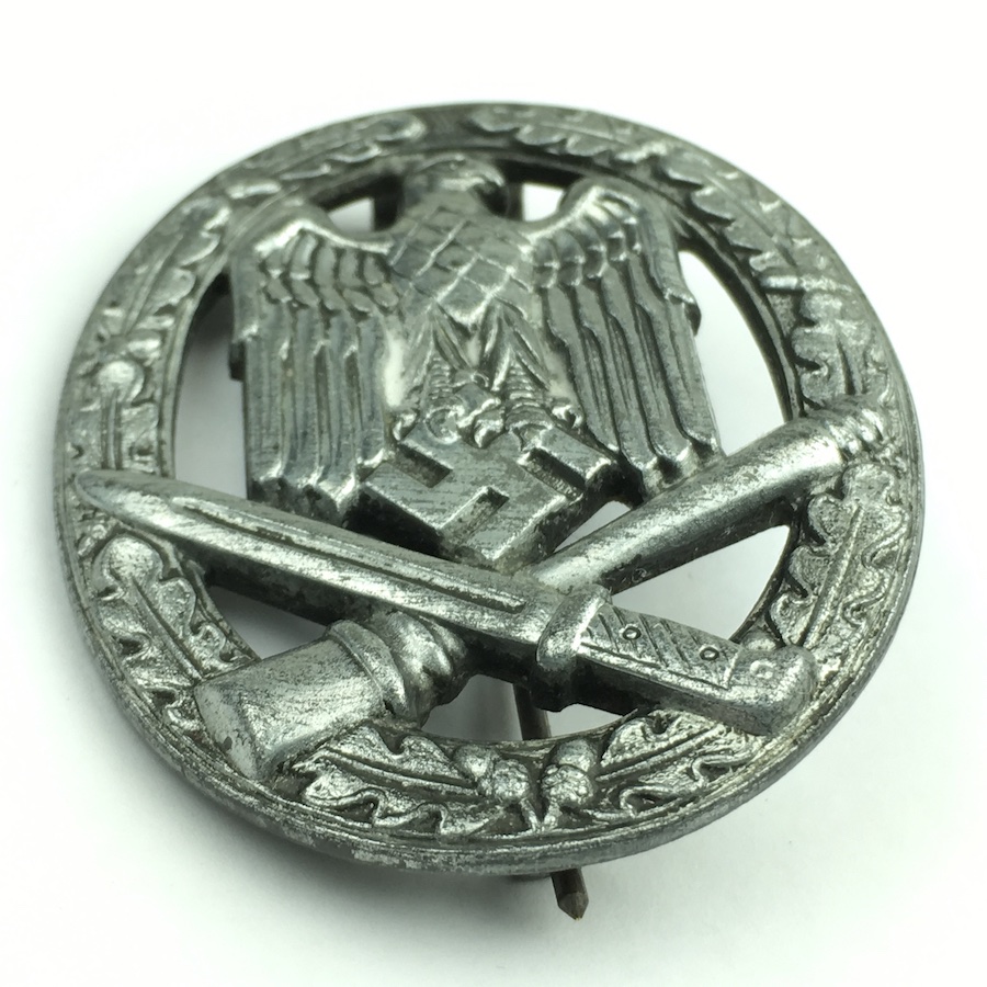 9/24/19 – This is an original WW2 issued general assault badge. The badge is unmarked, which is the more common variation. The badge has some normal patina, but no major issues or spots of wear. Overall in great shape and guaranteed original.
