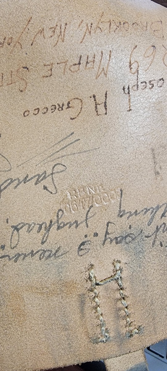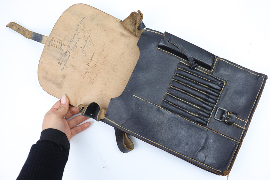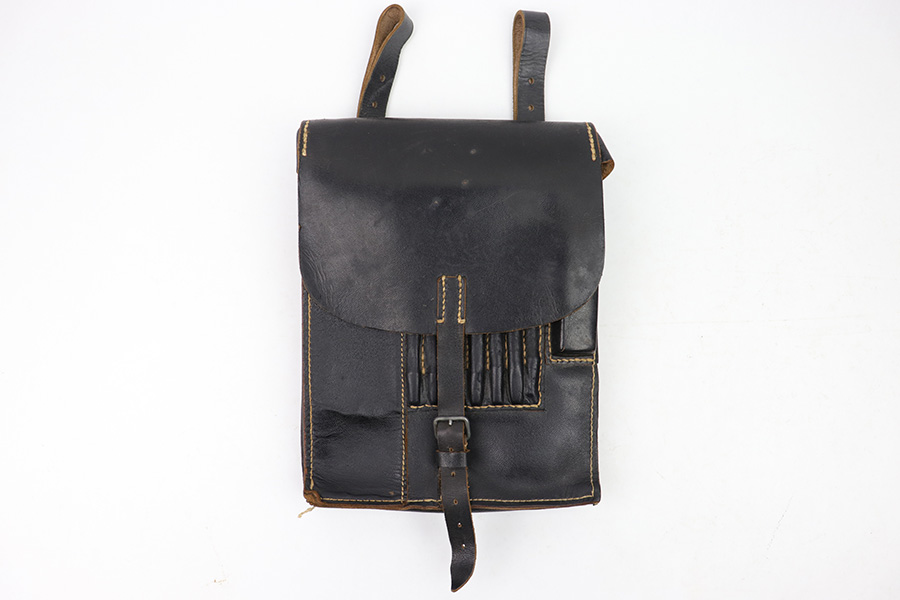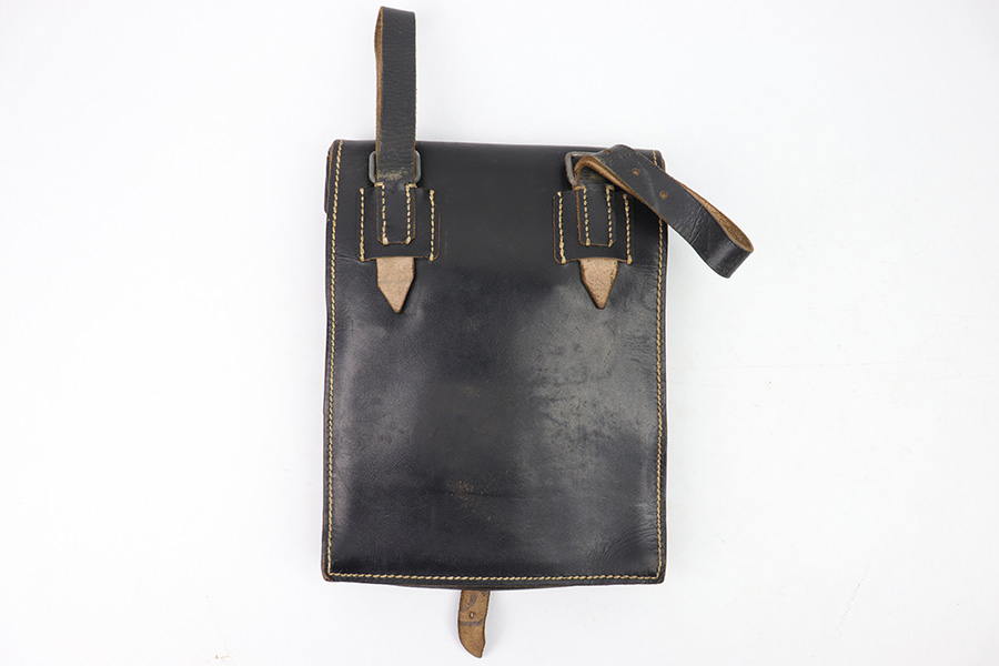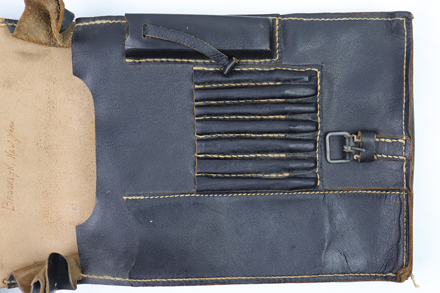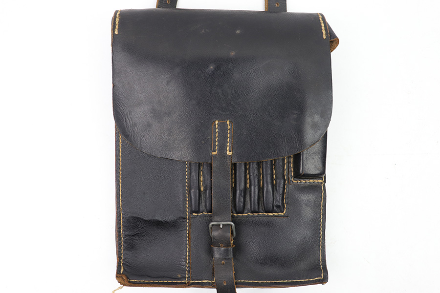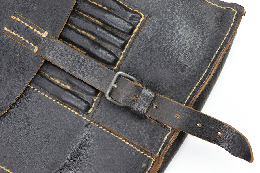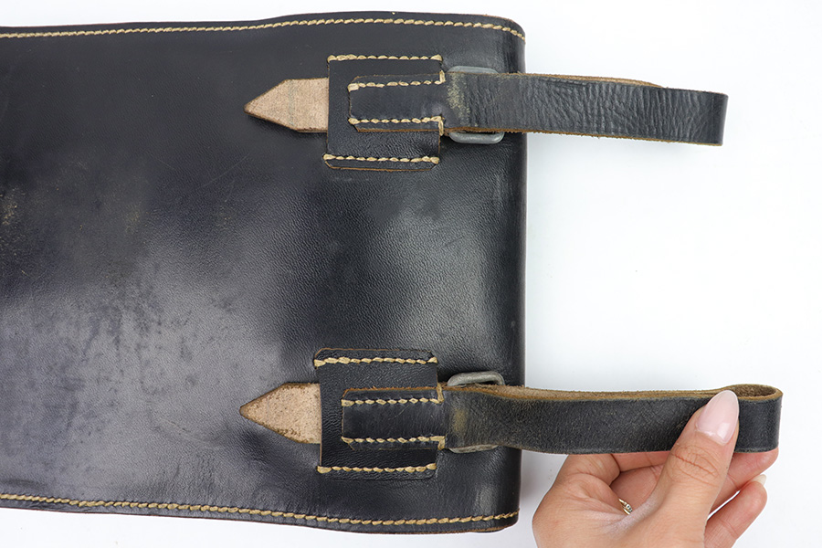 1/20/23 – This is an original WW2 German leather documents holder or map pouch. The leather is in great condition with soft, pliable leather that has a very clean interior. The exterior leather has some mild signs of aging such as surface wrinkling and some slight discoloration, but overall there are no major issues or notable flaws. The interior leather has some hand-writing and a RBNR. stamp, which is a distribution number implemented by the Germans during WW2. The stitching is all original and intact throughout.