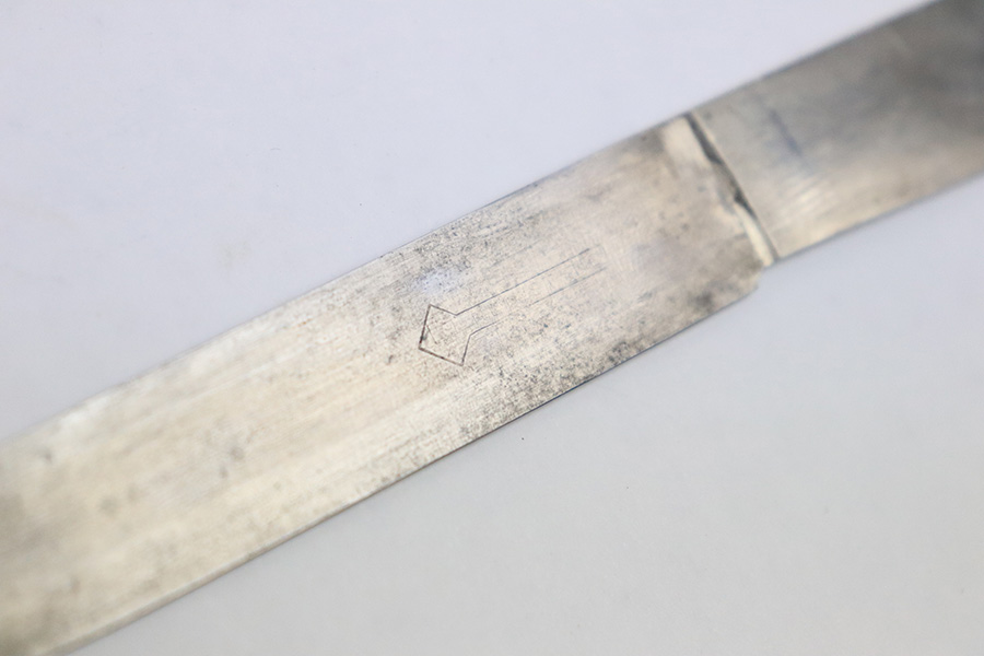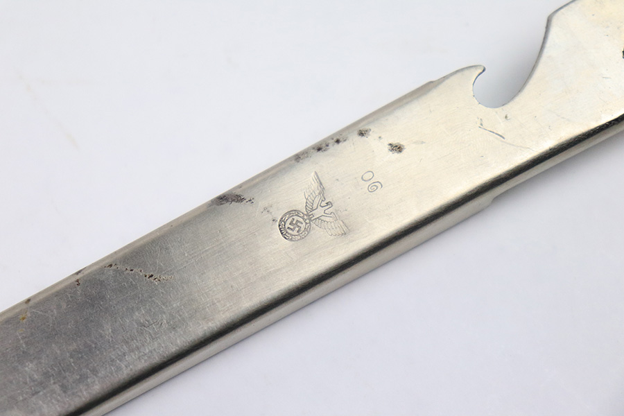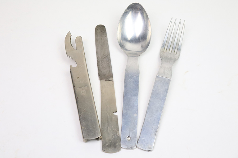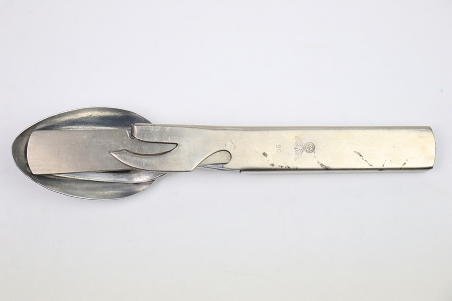 12/1/22 – This is an original WW2 German Field Utensil set. Very good overall condition with some mild surface patina / discoloration as shown. The fork and spoon are maker stamped “06”, but the knife has a different maker. The knife maker is faded and too hard to decipher, but is still correct for WW2 German Field Utensils.