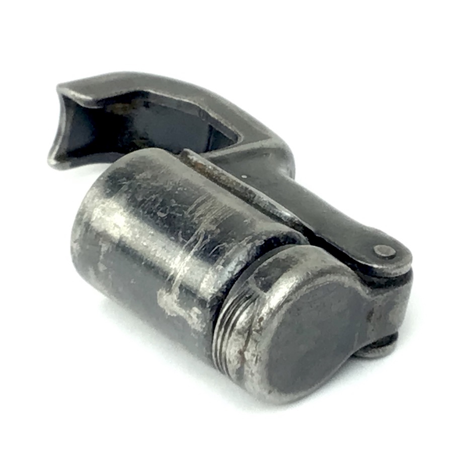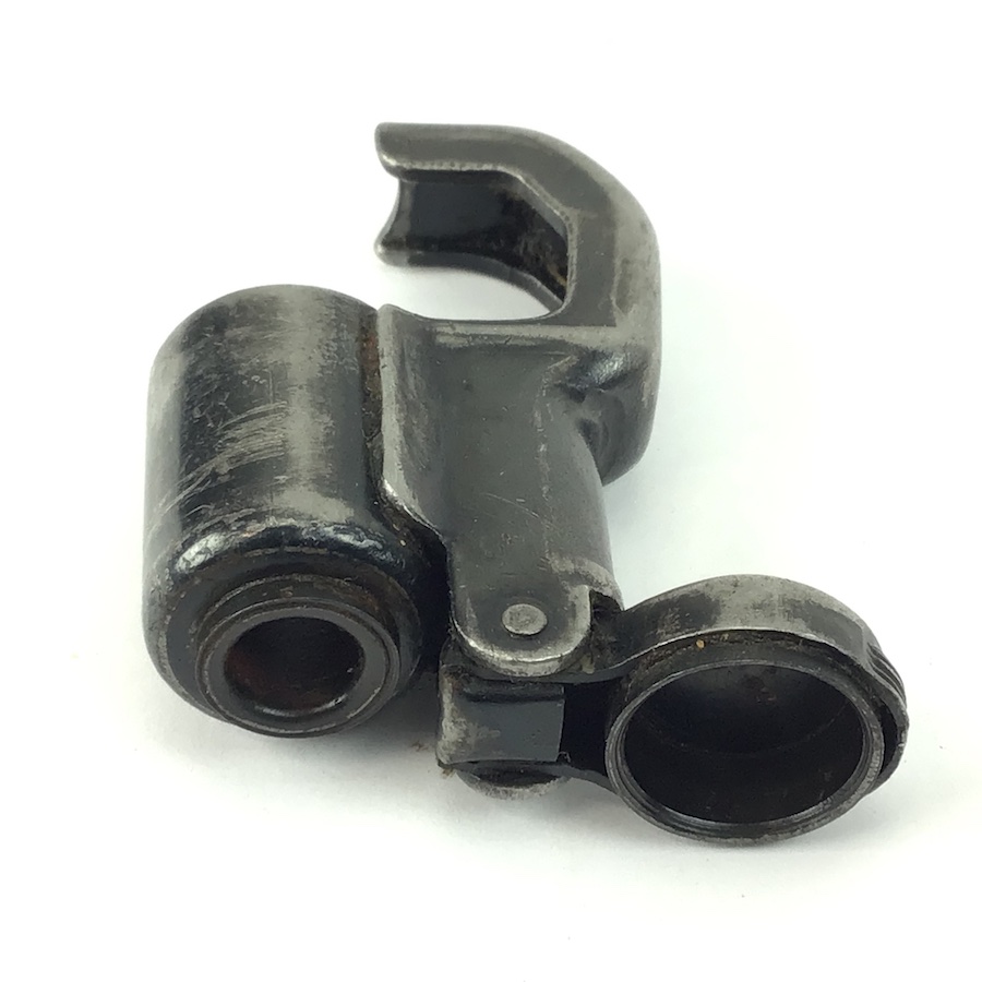 9/30/21 – Original K98, WWII era hinged muzzle cover for the Mauser K98. Waffen stamped on the lid, WaA655 and the letter “M” stamped internaly. Normal wear and bluing loss, but complete and functional.