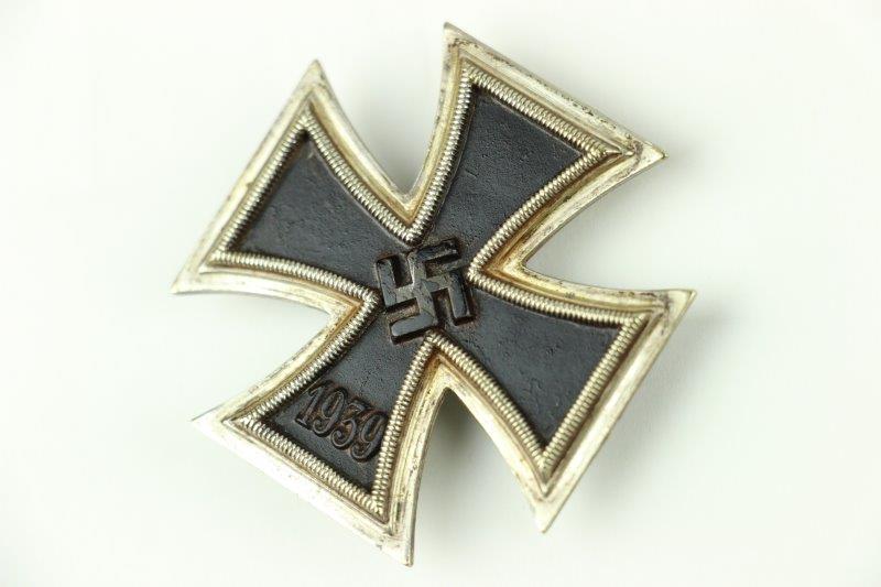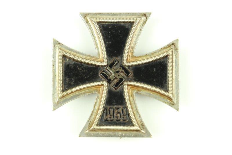 2/13/24 – This is a WW2 original German Iron Cross, 1st Class medal. Great overall condition with natural patina throughout the shiny silver colored edge. The swastika has some mild finish loss. The reverse is unmarked, but shows natural aging which leaves a shadow effect on the medal. Magnetic throughout and fully functional clasp.
