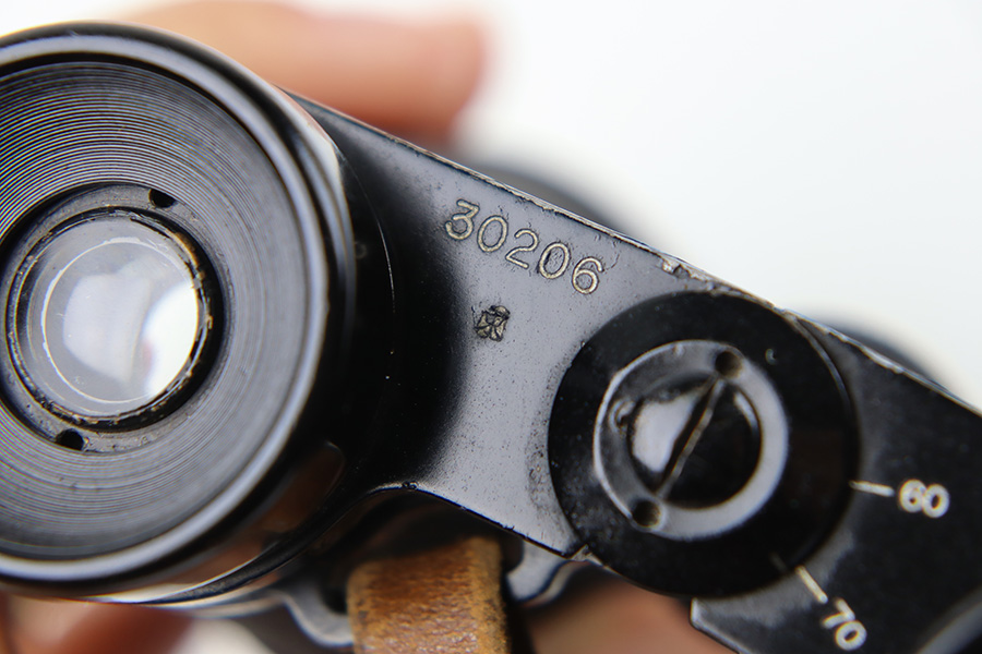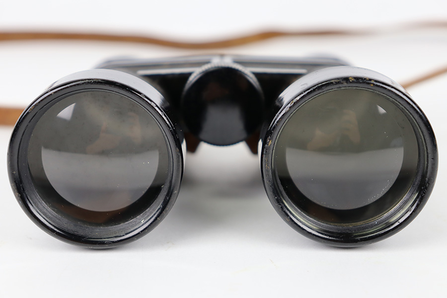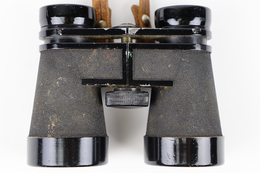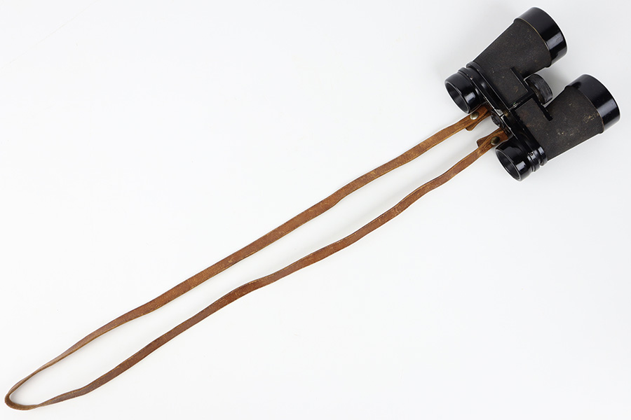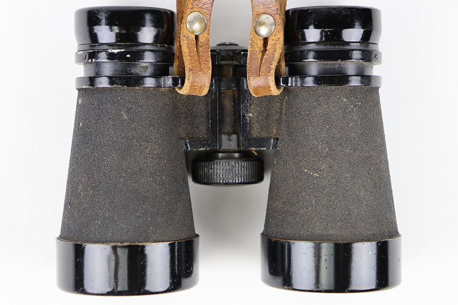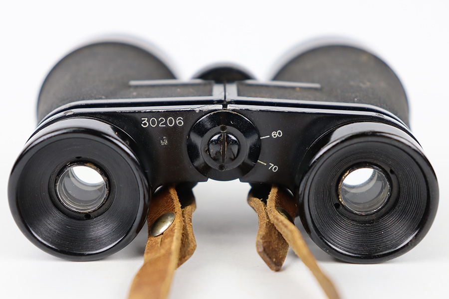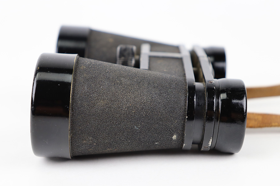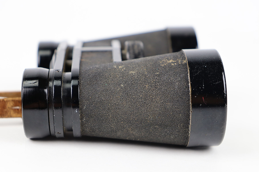 11/6/23 – This is a pair of WW2 Japanese Binoculars. The binoculars come with a leather shoulder strap, as shown. The binoculars are fully functional with excellent, crisp and clear optics. Functional adjustment knobs although they are a little tight from age. Relatively small size, measuring about 3.75 inches long, 4.5 inches wide, and about 2 inches tall.