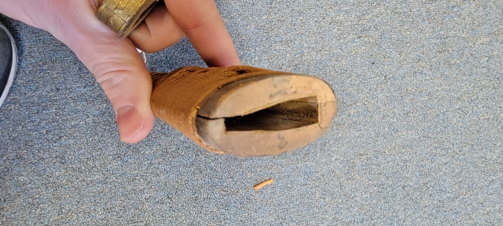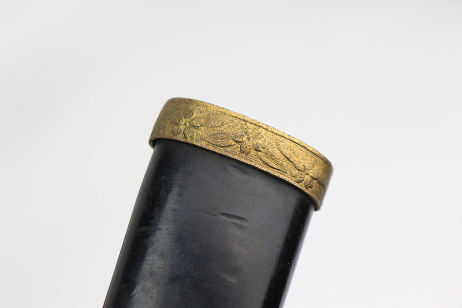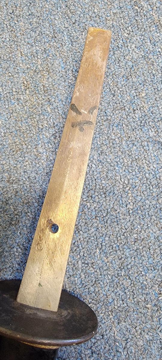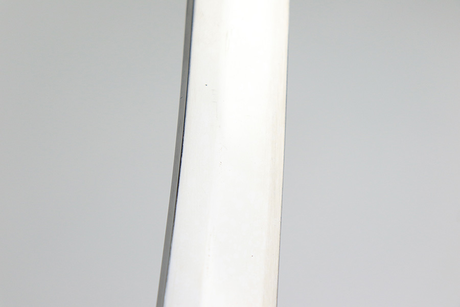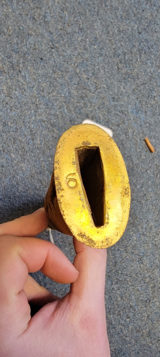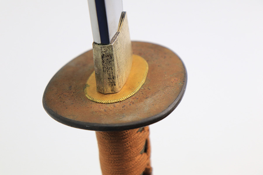 5/10/22 – This is an original WW2 Japanese Naval Officer’s Sword. The is shiny and unsharpened, in great overall condition. There are a few small blemishes and minor surface scratches but this is mostly normal scabbard wear. The blade edge is approximately 24 inches long with a 1 inch ricasso. Overall length is approx. 35 inches (without the scabbard). There is one very small nick in the blade edge, but the factory “replica” tempered finish is still visible throughout the edge line. The wrapped handle is in great condition as well with nice fittings that show mild patina. The fittings are matching numbered “6” as shown. The wood scabbard is in great condition with excellent black painted finish throughout, and some minor chipping and damage near the toe, but this isn’t severe. A very nice factory-made Japanese Navy Officer katana.