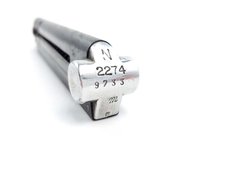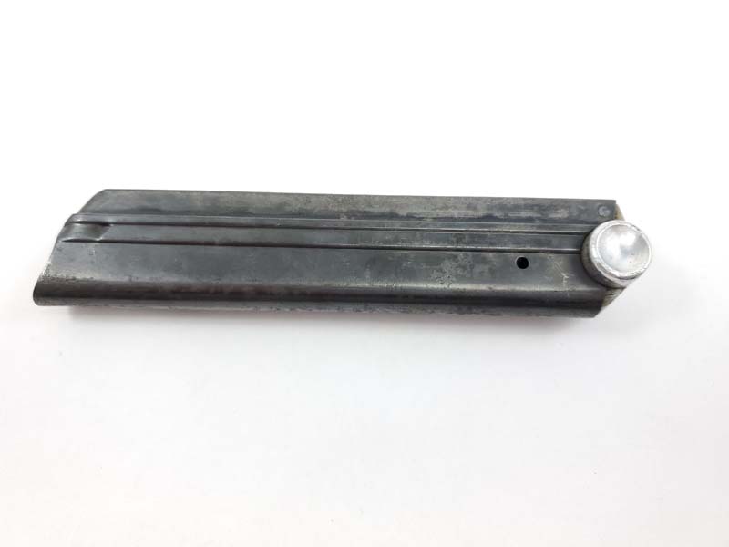 4/21/20 – This is an original WW2 era production Kriegsmarine Luger magazine. These are very scarce magazines, and this one is all original with a droop winged eagle/63 proof stamp. The base has been polished – giving it a shiny look. The tube also has some light rust / pitting throughout – as shown in photos. Priced accordingly. Strong, fully functional spring.