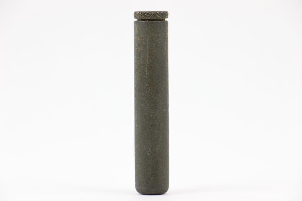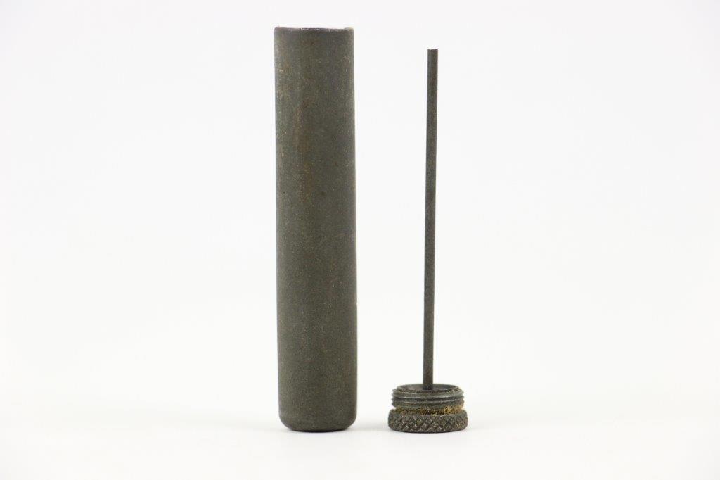 9/5/24 – This is an original WW2 production US M1 Carbine rifle sling with an original oiler. The canvas sling is in excellent overall condition with no markings or stamps. Nice light brown/green khaki color with proper C-shaped ends. The ends show mild spots of surface rust, but the snap-buckle is excellent with a shiny finish. There are no stains or structural issues on the canvas. The oiler is parkerized and in excellent condition with an Inland “II” maker stamp.