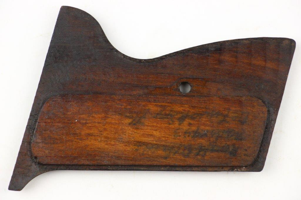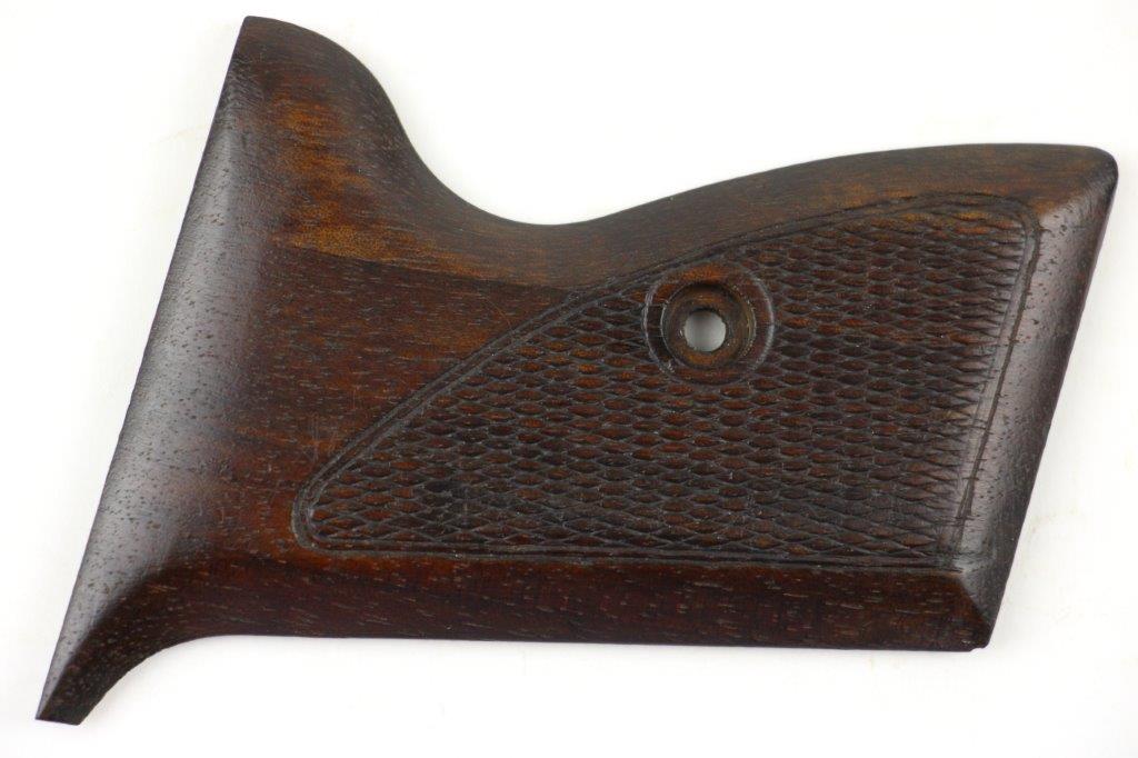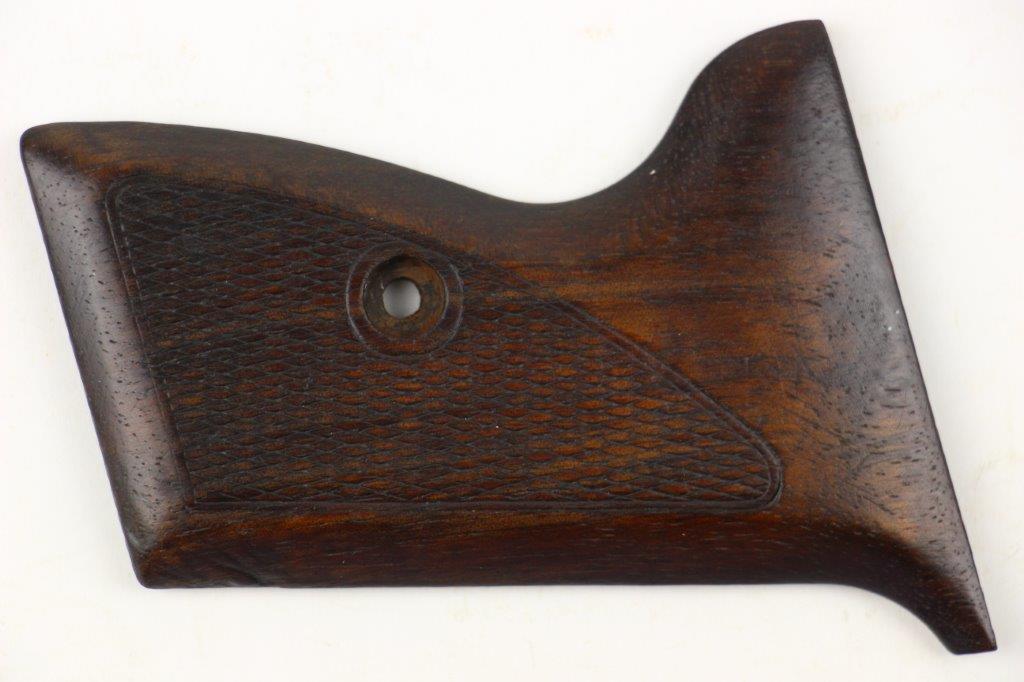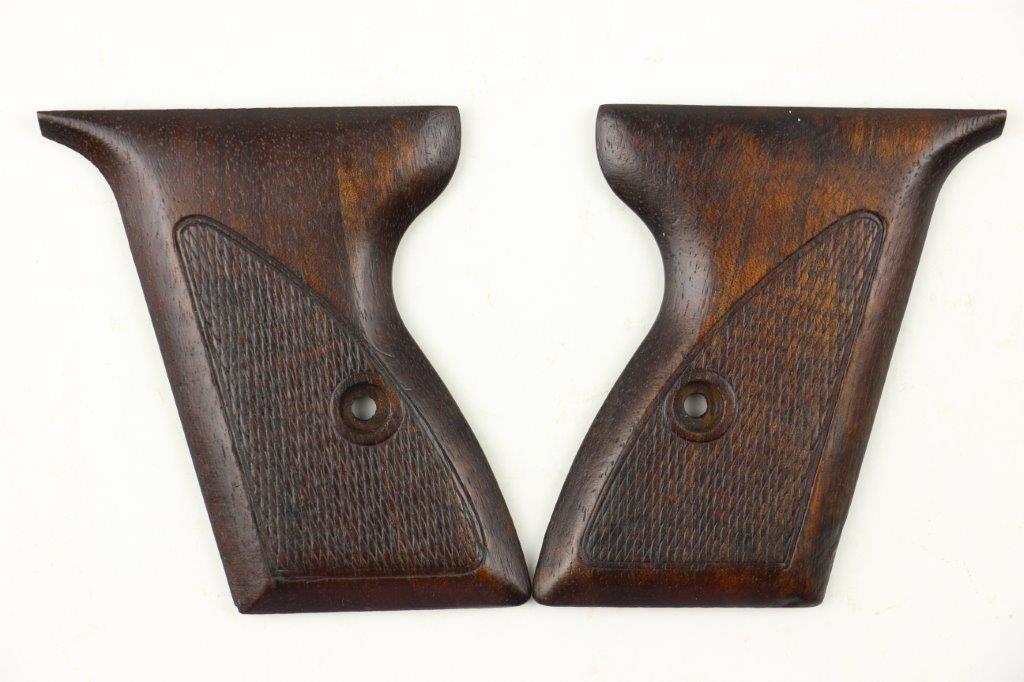9/5/24 – This is an original pair of WW2 Mauser HSC grips. The grips are in great overall condition despite the minor chips on the tip of each panel, which is the most common flaw found on these WW2 examples. There are no other notable chips or flaws, and no markings found on the interior. These fit any WW2 Mauser HSC nicely, and come as shown with no screws included.