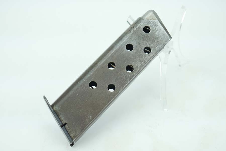 12/2/24 – This is an early war example of a Mauser Banner HSc Magazine. This example is in great overall condition with very little wear, the magazine does have patina throughout the body. The base has some pinpricking to the finish. The spring is strong and functional.