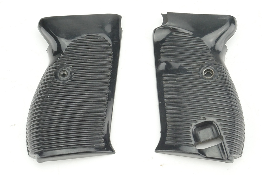 9/18/24 – These are a great example of original WW2 Mauser produced P.38 Grips. These grips are in overall great condition with only light scratches. The left grip panel does have an abrasion mark on it, and we believe that the left grip was lightly shaved on the top. We did test fit these grips on a P.38, there is the slightest gap between the grip panel and the slide that is barely noticeable.