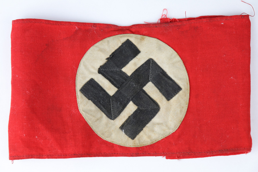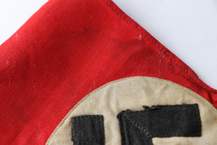 10/24/18 – This is an original WW2 production nazi armband. The interior has the original RZM tag. The exterior has normal wear and fading but no excessive stains or fraying of the linen. The style of swastika looks like an early WW2 style with the circle and swastika as sewn on top of each other in 3 layers. Guaranteed original and authentic.