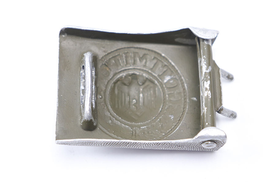 10/25/21 – This is a WW2 original aluminum belt buckle issued by the Nazi’s during WW2. The buckle has excellent detail on the exterior with minimal wear. The interior still shows the original olive paint. No maker markings or stamps.