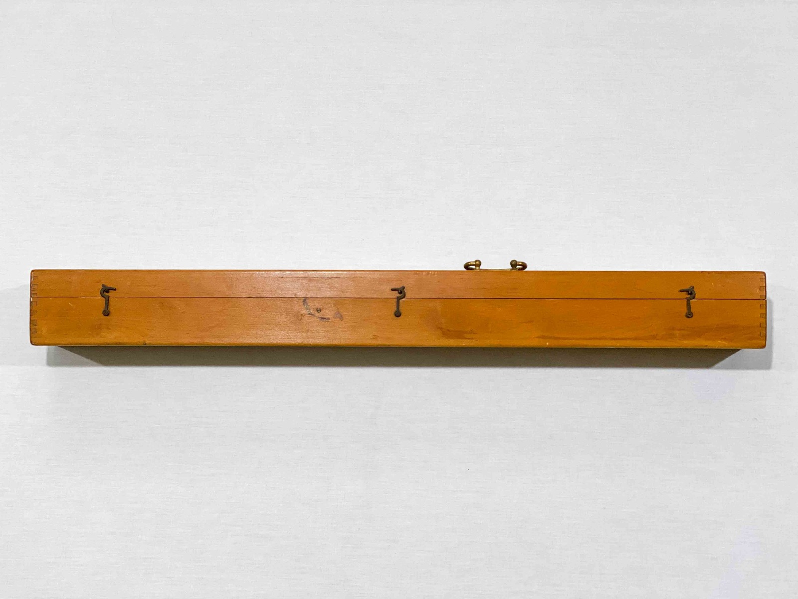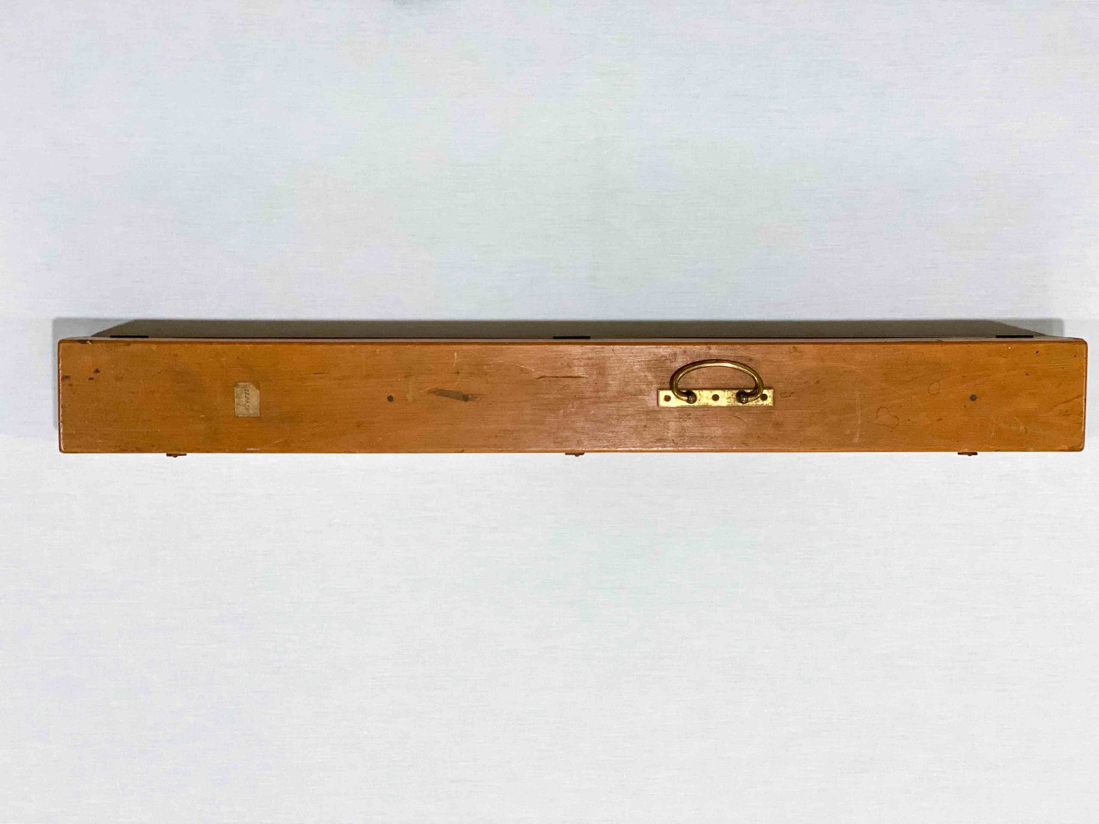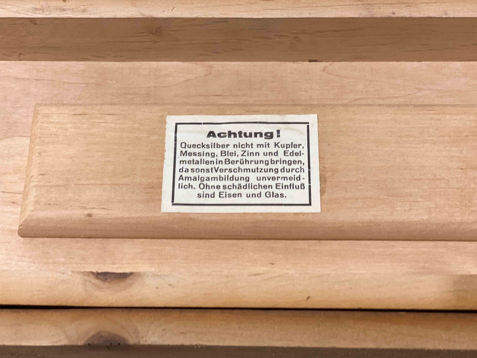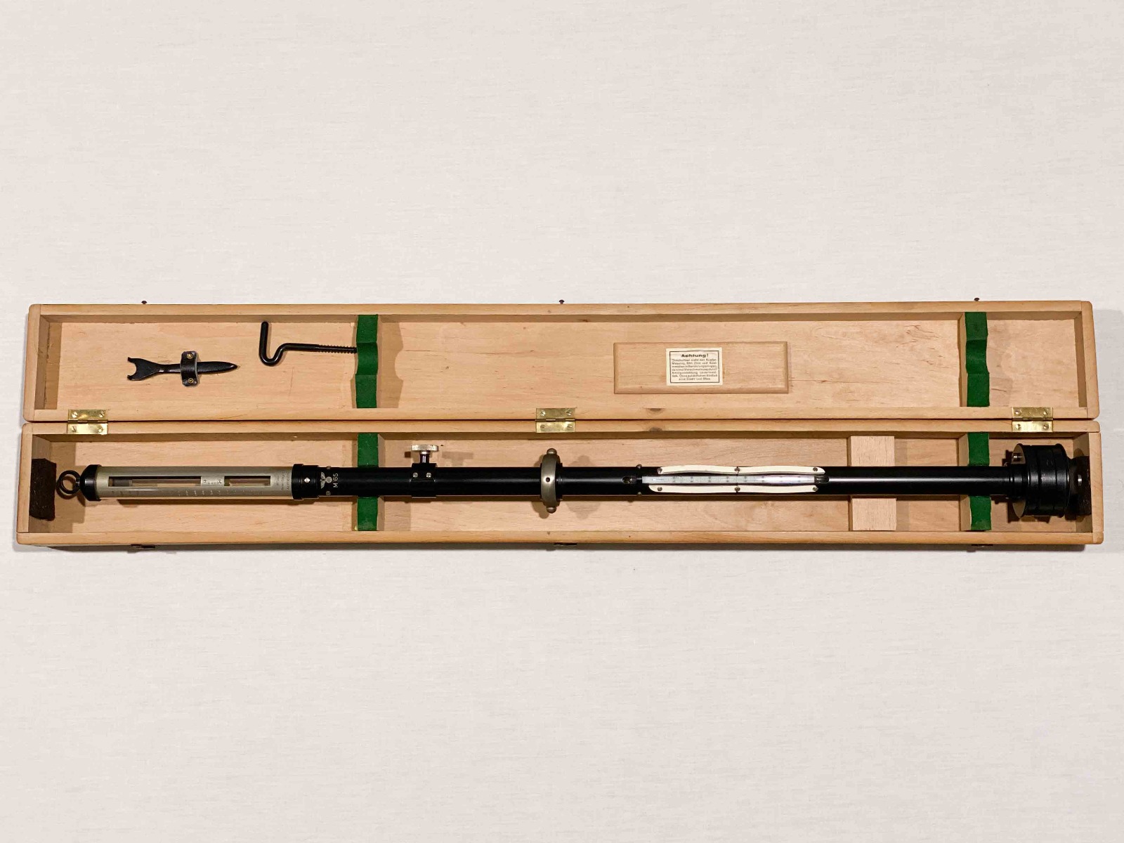9/15/20 – This is a unique offering; a very rare 36″ WW2 Kriegsmarine barometer with the original wood case. The entire length with the case is 40″. The barometer is well stamped and all original in excellent condition. it retains the original Celsius thermometer, but the internal glass and mercury were removed at some point – not included. A wonderful display piece and a very unique item for any collection.