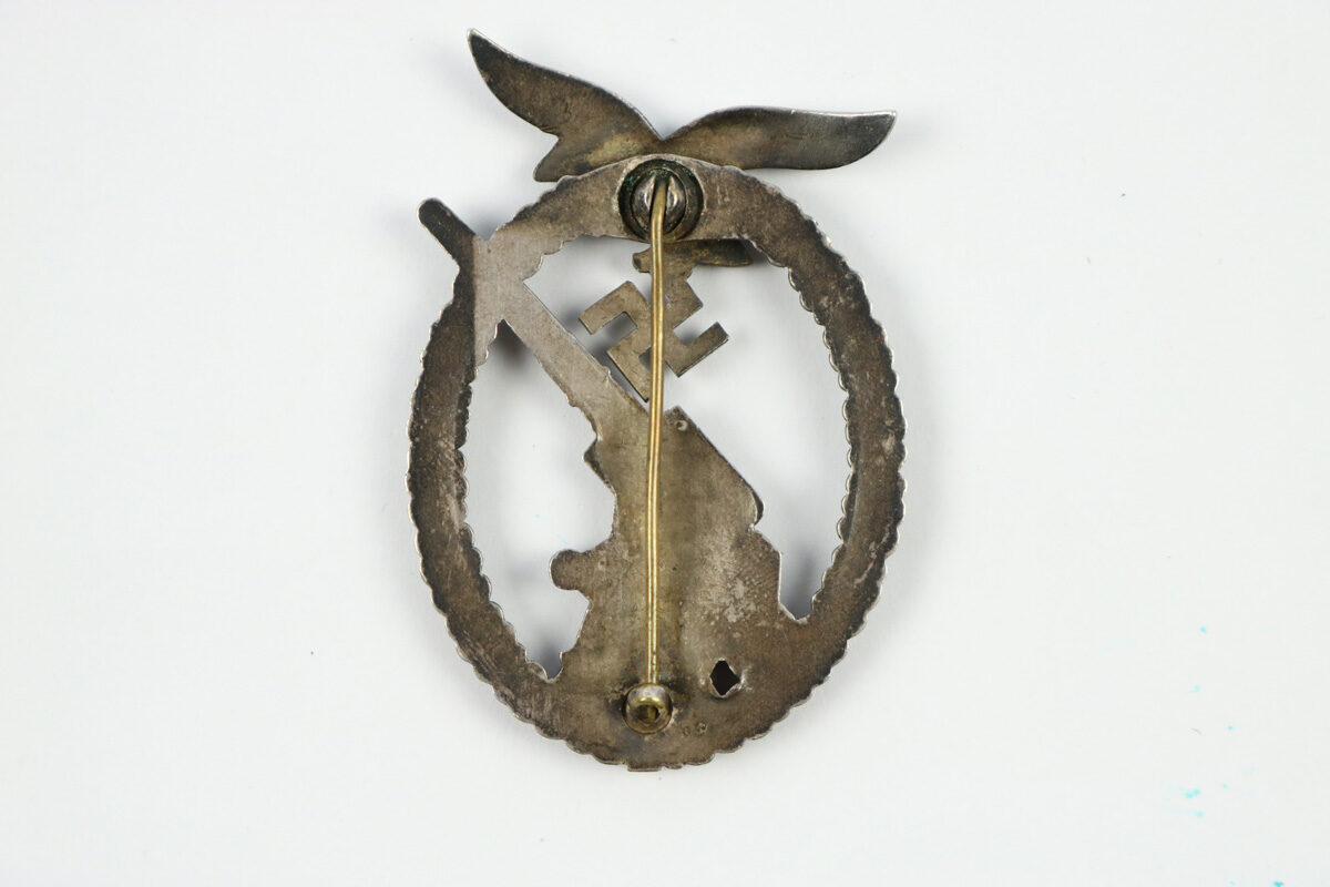 10/9/18 – This is a WW2 production Nazi Luftwaffe flak medal. The medal is one-piece construction with a brass closure pin and wartime variation closure hook. There’s some light patina, but overall in great condition with no major or notable flaws. Guaranteed original and authentic.
