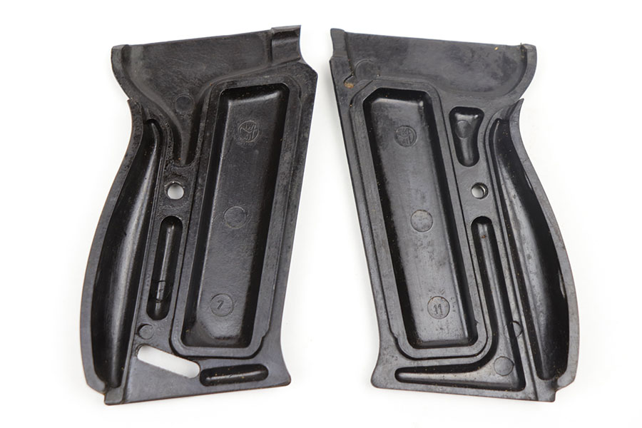 12/3/20 – This is an original pair of WW2 P.38 grips. Excellent bakelite with no cracks or chips.