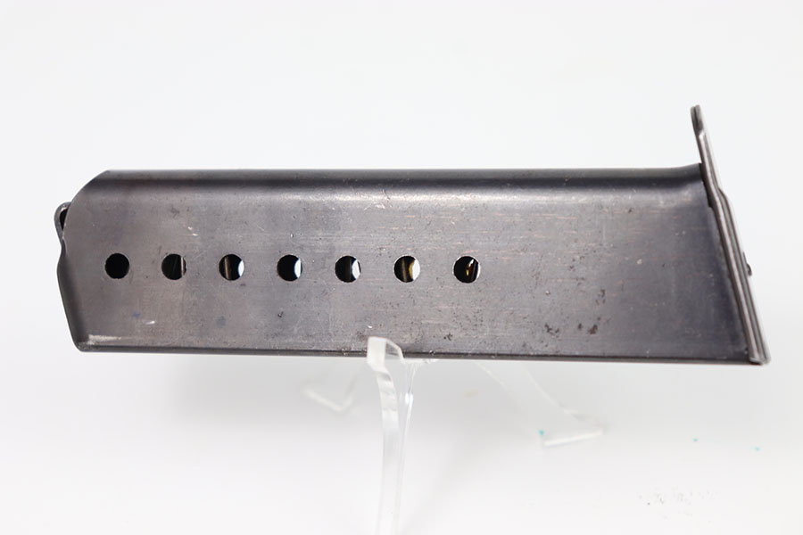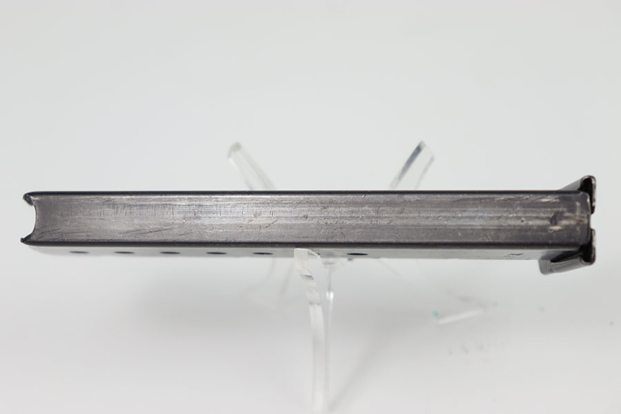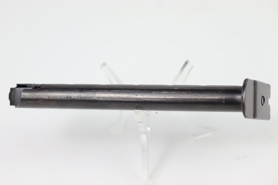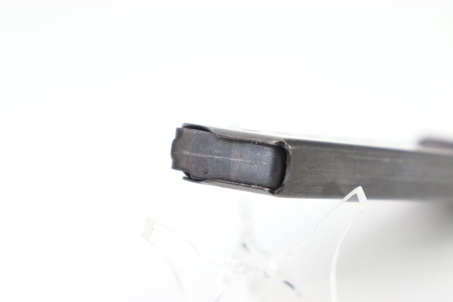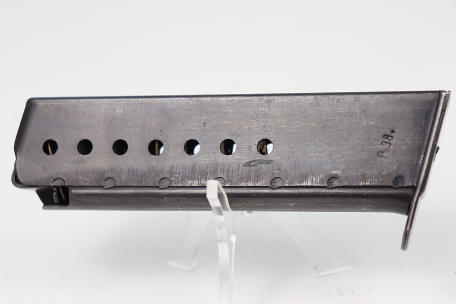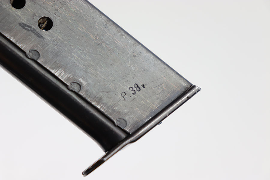 8/8/24 – This is an original WW2 wartime production P.38 magazine. The magazine is stamped on the left side of the tube “P.38v”. There’s no other markings or stamps. This is an interesting feature and is likely due to late-war rushed production. The magazine is in great overall condition with light spotty patina throughout, but no rust or pitting. Strong, functional spring.