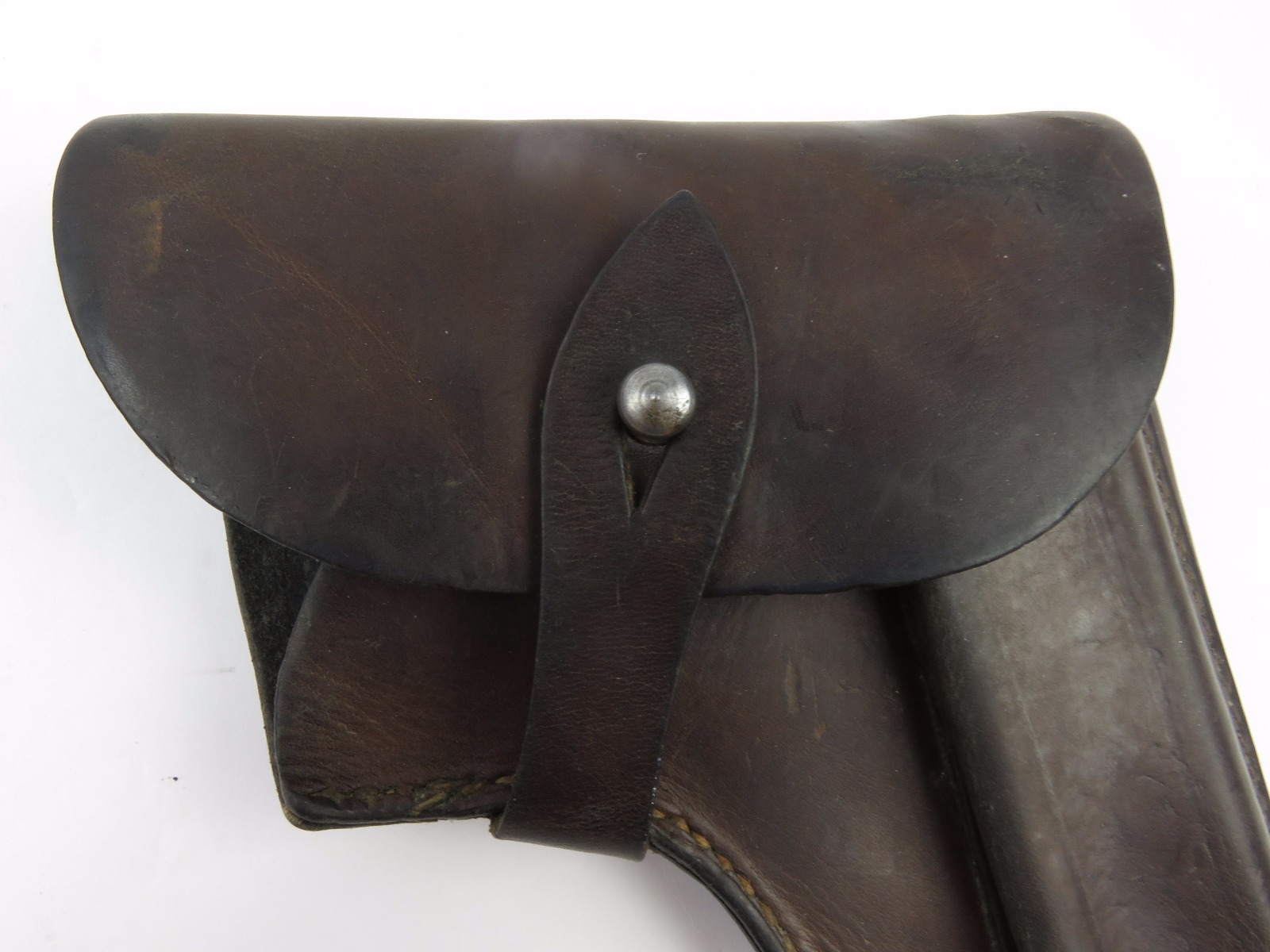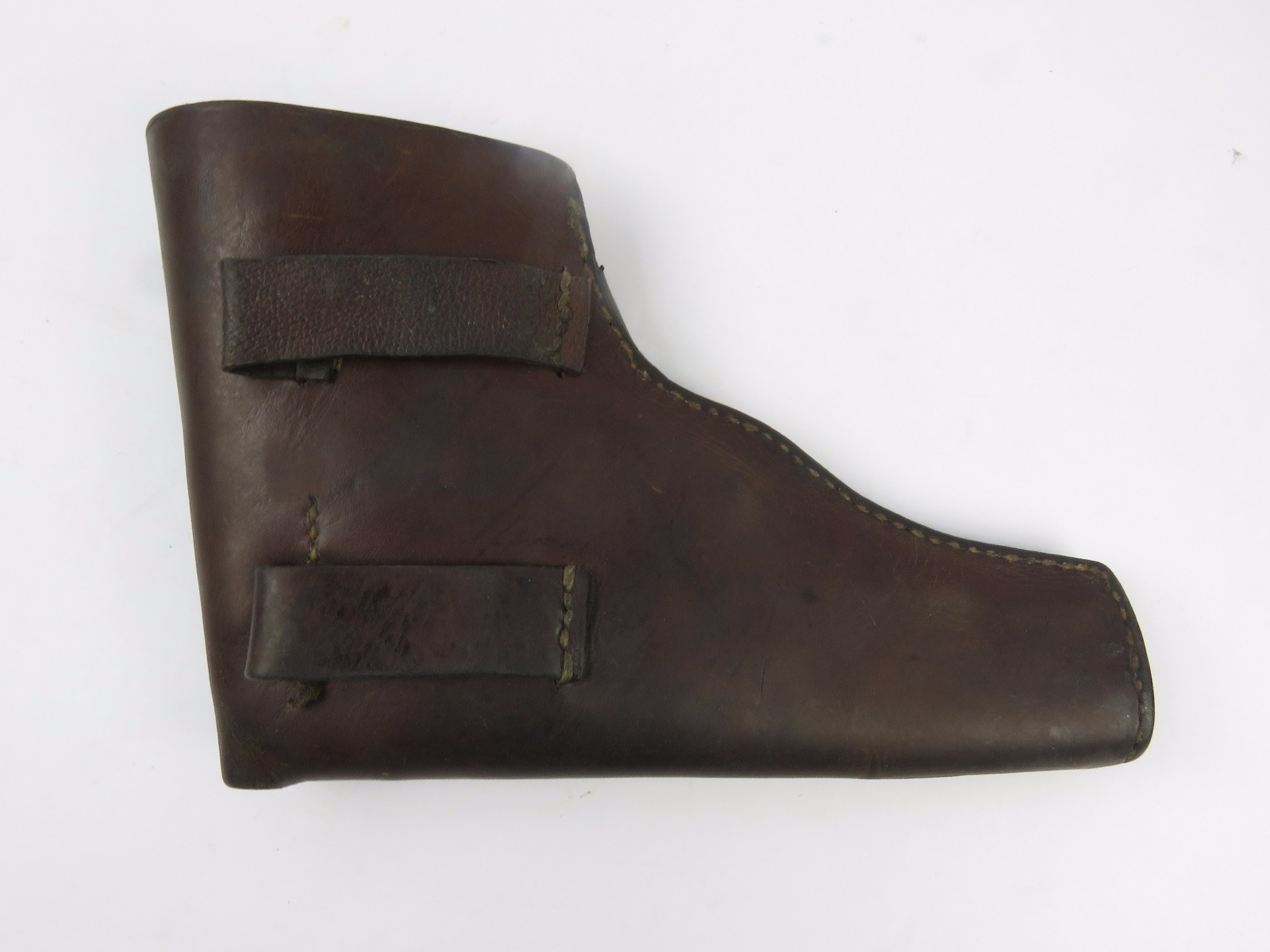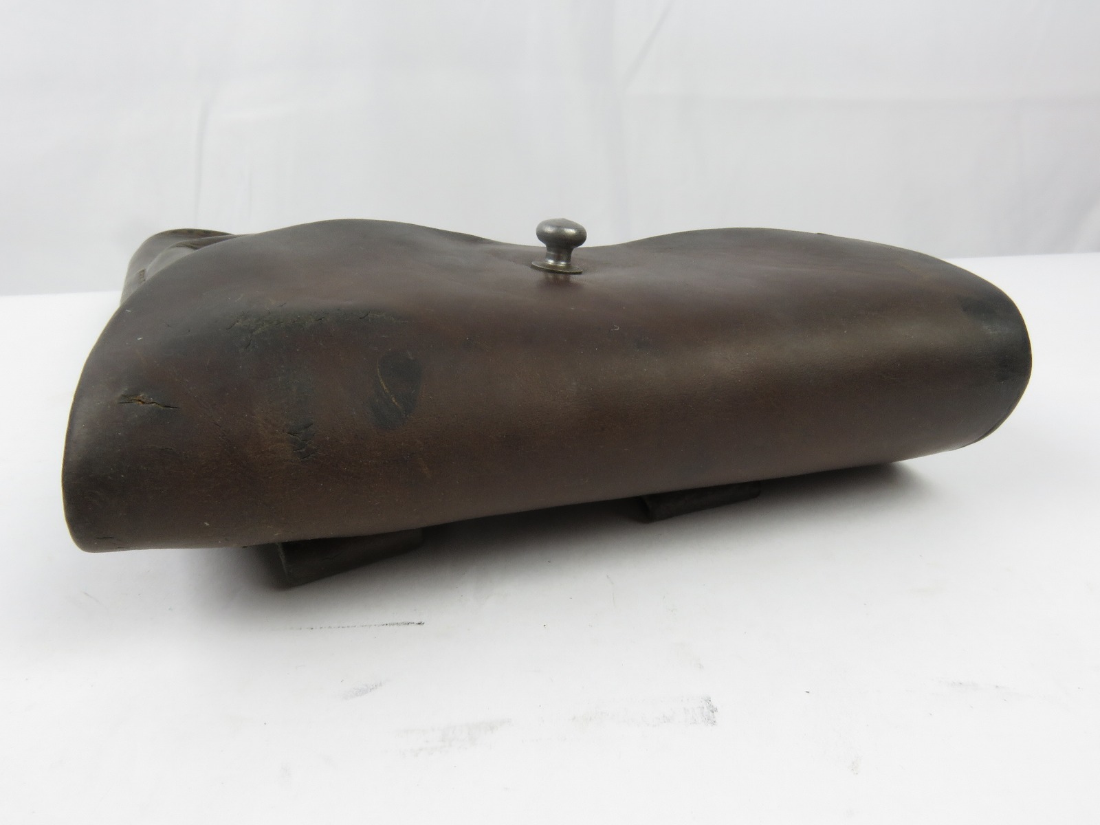7/25/17 – This is an original WW2 era production Radom holster. The holster is most likely late WW2 production after Nazi occupation. The dark brown leather has a black interior, and no notable or visible stamps/markings. The leather is somewhat pliable and is completely in tact. There is no cracking or issues on the leather. The stitching is all original and excellent.