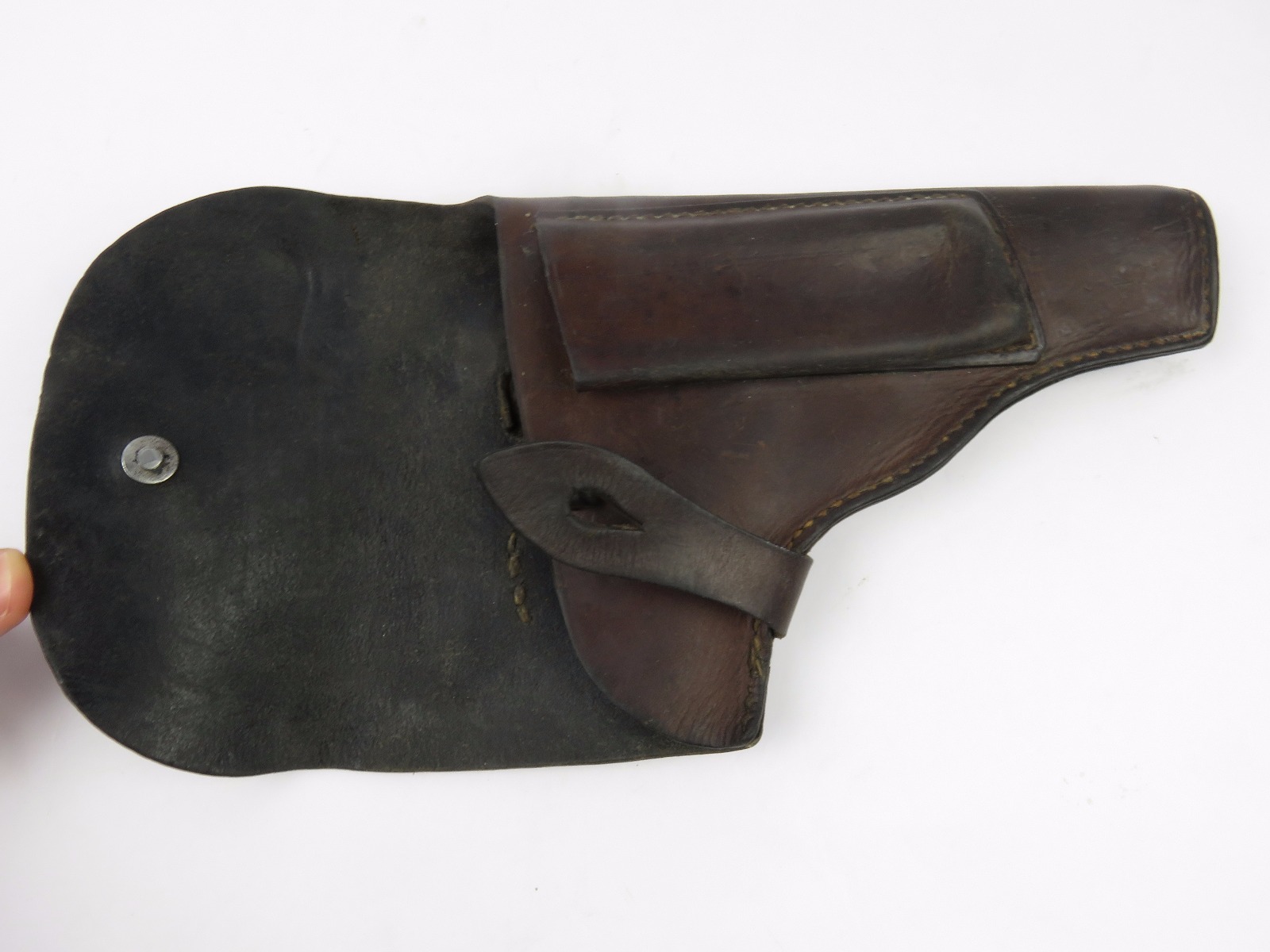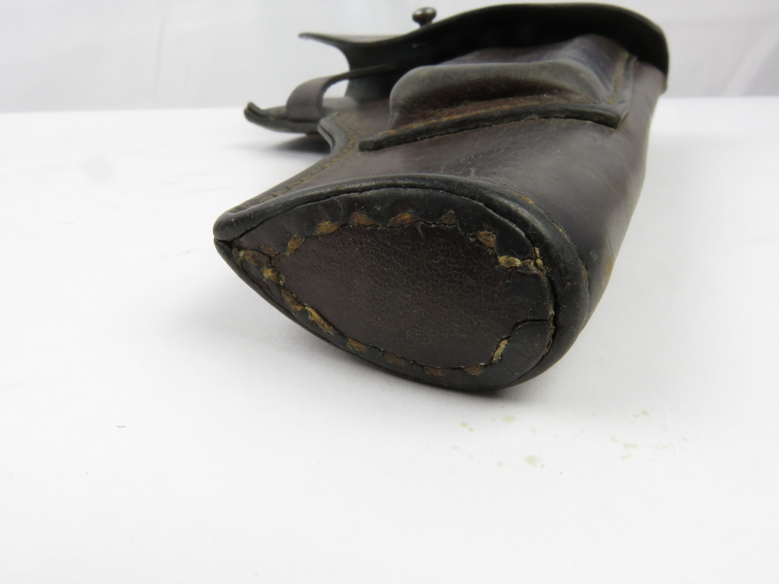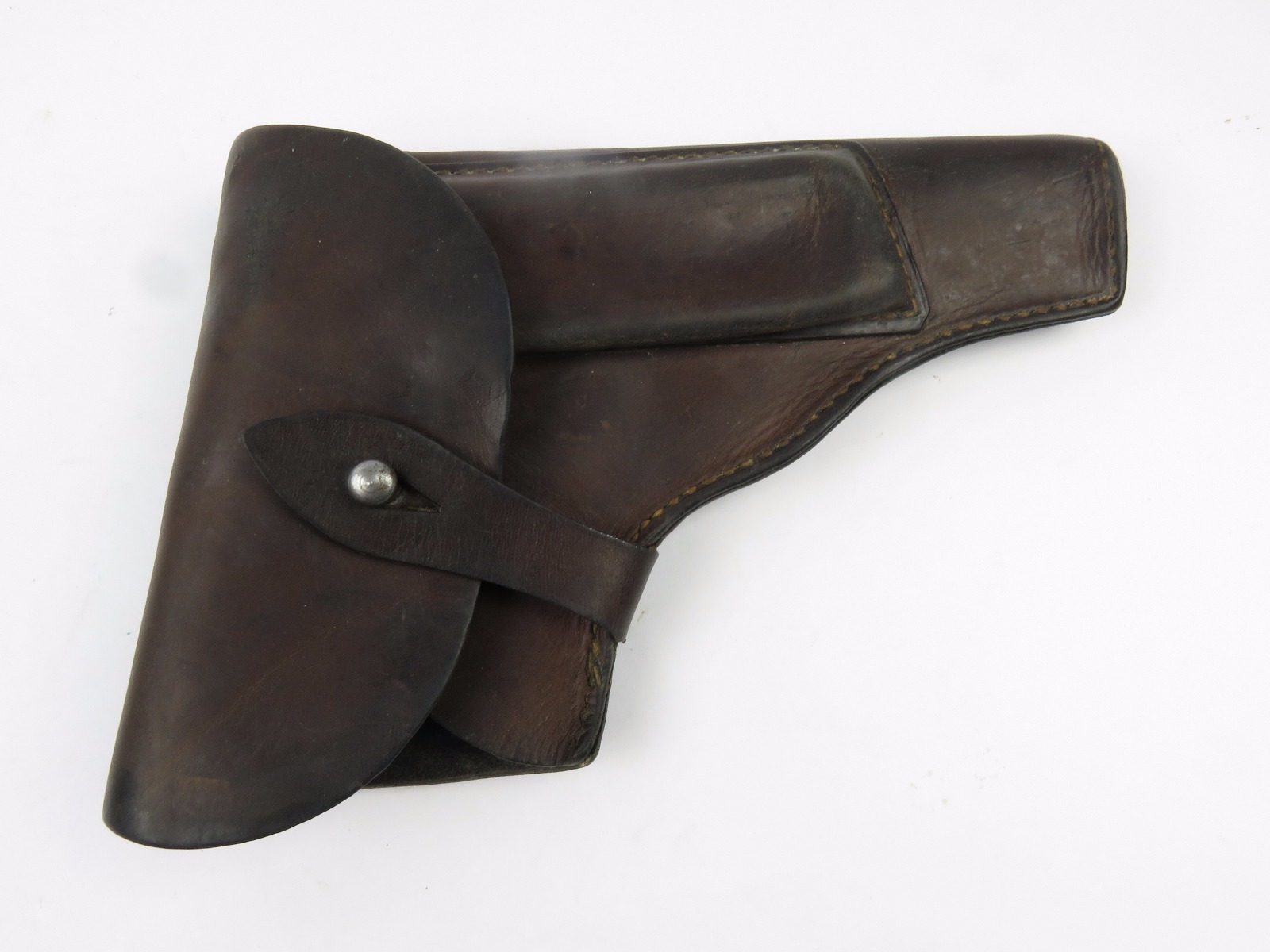 7/25/17 – This is an original WW2 era production Radom holster. The holster is most likely late WW2 production after Nazi occupation. The dark brown leather has a black interior, and no notable or visible stamps/markings. The leather is somewhat pliable and is completely in tact. There is no cracking or issues on the leather. The stitching is all original and excellent.
