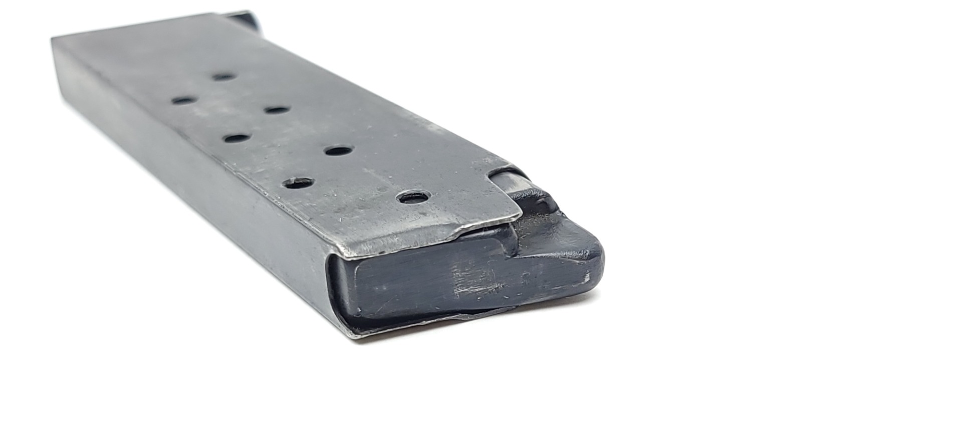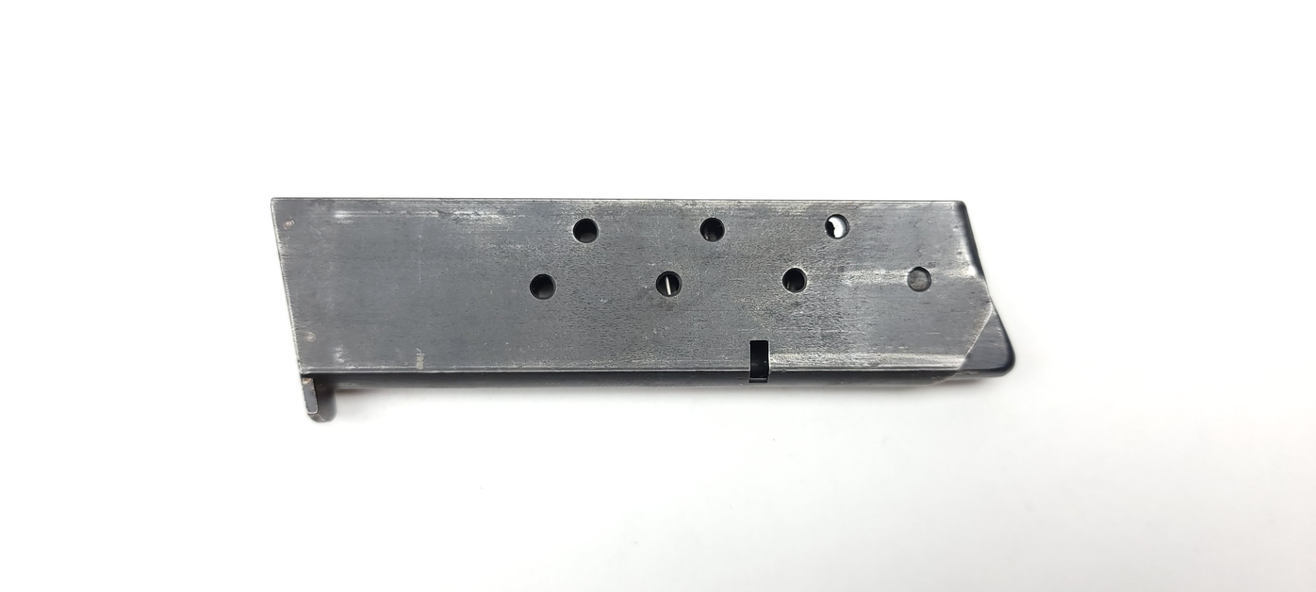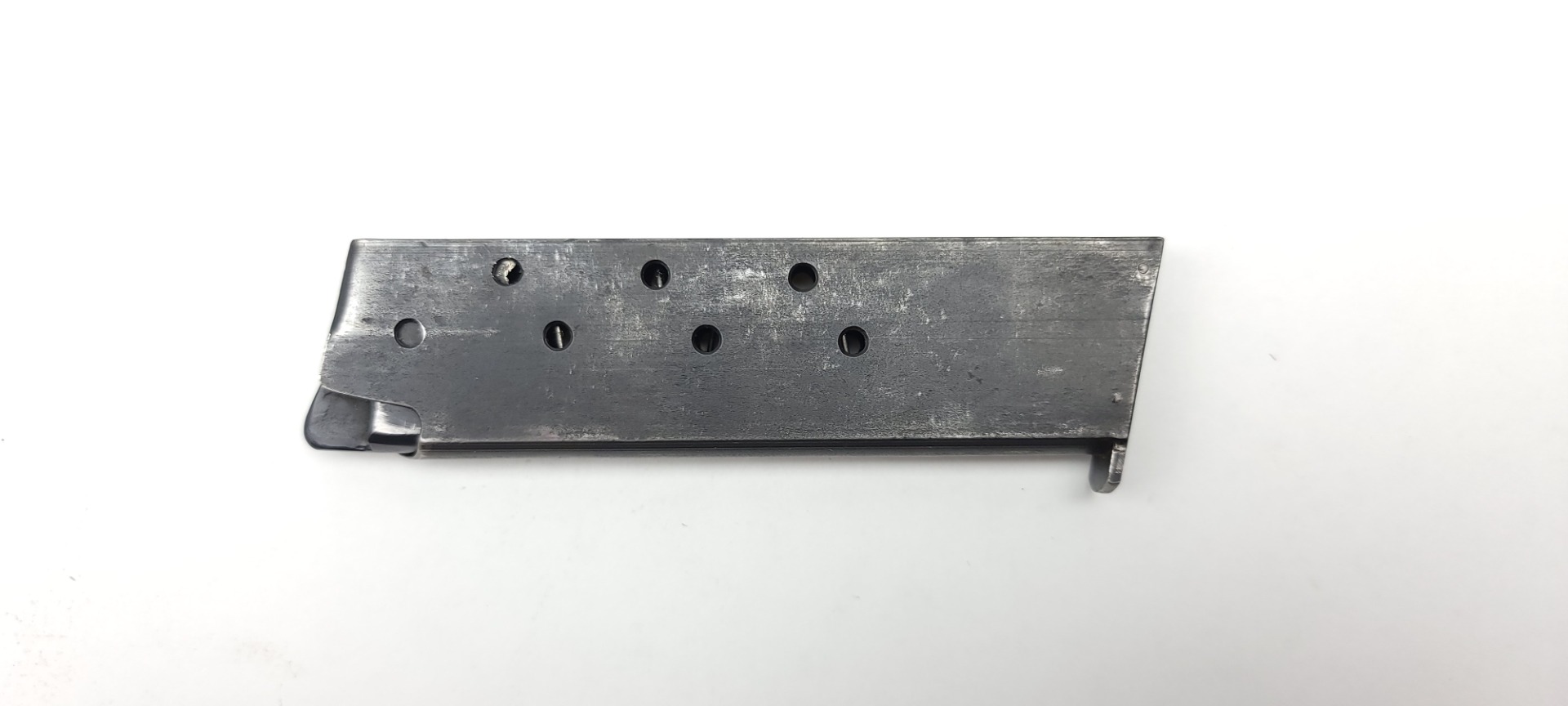 3/8/22 – This is an original WW2 era production Radom P.35 magazine. The magazine has a nice blued finish throughout despite some small areas of finish loss. There’s no rust or pitting and the spring is fully functional. No markings or stamps.