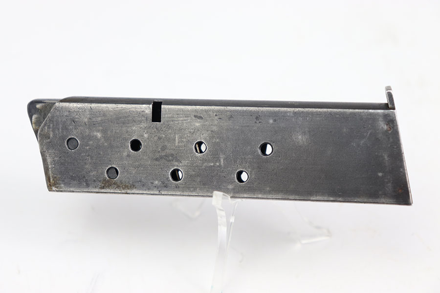 7/24/24 – This is an original WW2 era production Radom magazine. The magazine has a dull wartime blued finish and no markings. In great overall condition with only minor signs of wear throughout. Spring is strong and fully functional.